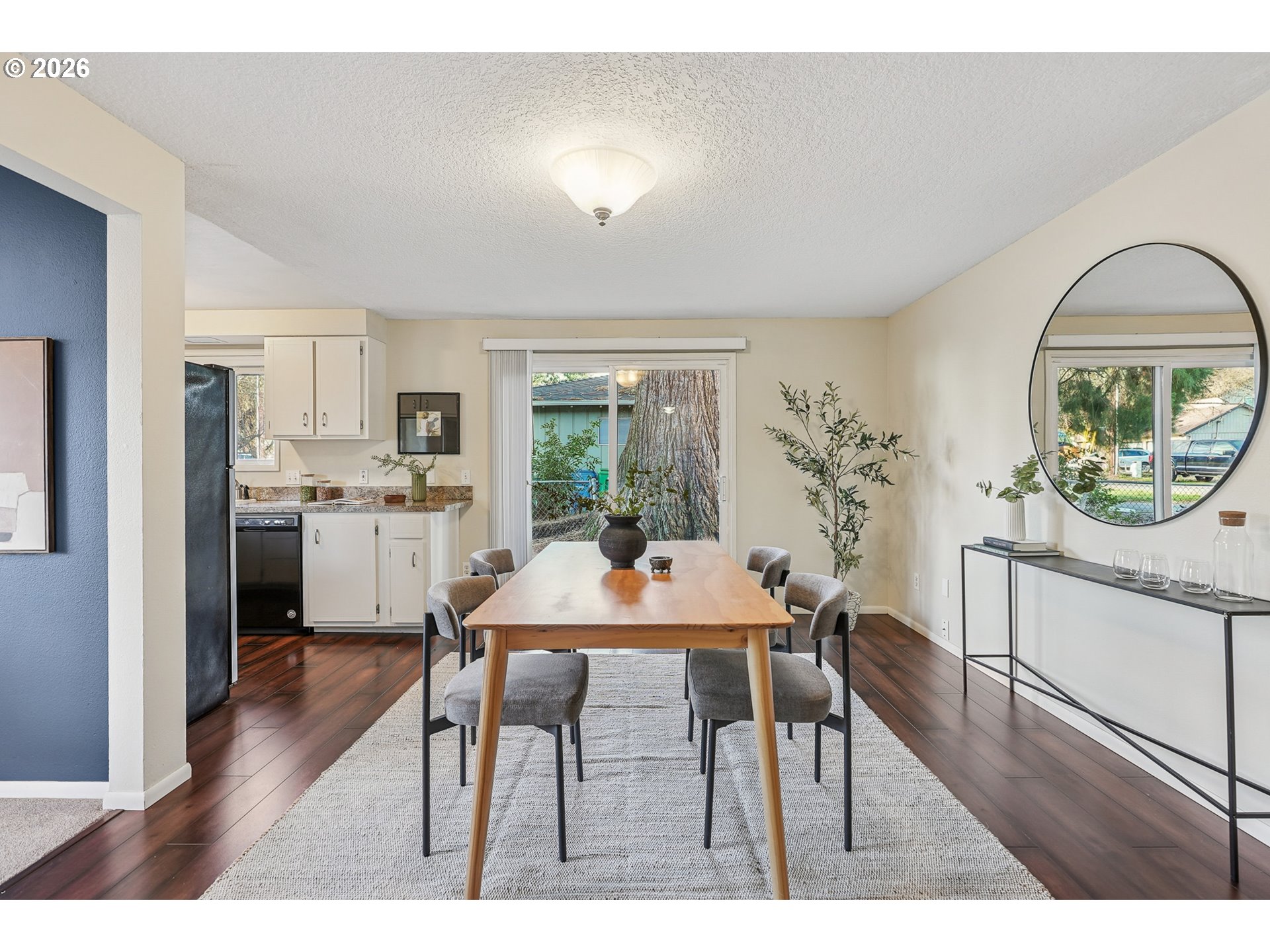 Situated on a quiet street in Milwaukie, this cozy 3-bedroom, 1.5-bath ranch home offers the ease and efficiency of one-level living with a layout designed for everyday comfort. Thoughtfully connected living spaces create a natural flow, making the home both practical and inviting.The kitchen is a true delight, featuring stainless steel appliances and a seamless connection to the dining and living areas—ideal for both casual meals and entertaining. The living room is filled with natural light from large windows and anchored by a wood-burning fireplace, creating a warm and welcoming space to unwind.Storage is abundant throughout the home, with built-ins, a large utility/laundry room with cabinetry, and a spacious two-car garage complete with additional storage cabinets—perfect for staying organized without sacrificing living space.Step outside to a fully fenced backyard with a paver patio located just off the kitchen, offering an easy transition for outdoor dining, relaxing, or entertaining. Efficient, comfortable, and conveniently laid out, this home is a wonderful opportunity to enjoy easy living in a desirable Milwaukie location.