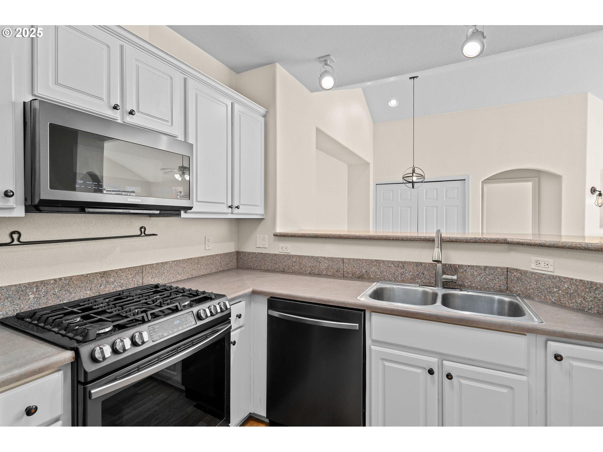 Welcome to this inviting townhome-style condo in the heart of West Linn, just moments from downtown Willamette’s shops, restaurants, coffee spots, and riverfront park. The open floor plan features vaulted ceilings, a gas fireplace, and built-ins in the dining area. Enjoy cooking and entertaining in the open kitchen with eating bar and high-end Tuscan stainless steel appliances. The primary suite offers a beautifully upgraded bathroom with a newer soaking tub. Both bedrooms include walk-in closets, and the freshly painted interior opens to a newly replaced balcony off the living room and primary bedroom—perfect for plants and plenty of natural light. Stay comfortable year-round with a mini-split system for heating and cooling. This home features an attached single car garage with a private driveway space, providing two designated parking areas. Directly behind the building you will find a lovely community koi pond featuring a waterfall, footbridge and benches for relaxing. You'll often find some ducks and an occasional heron enjoying the pond. Come and tour today!