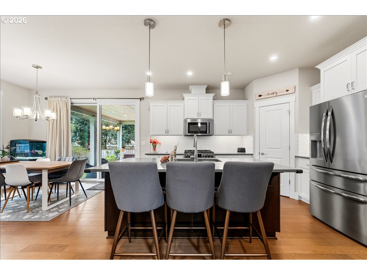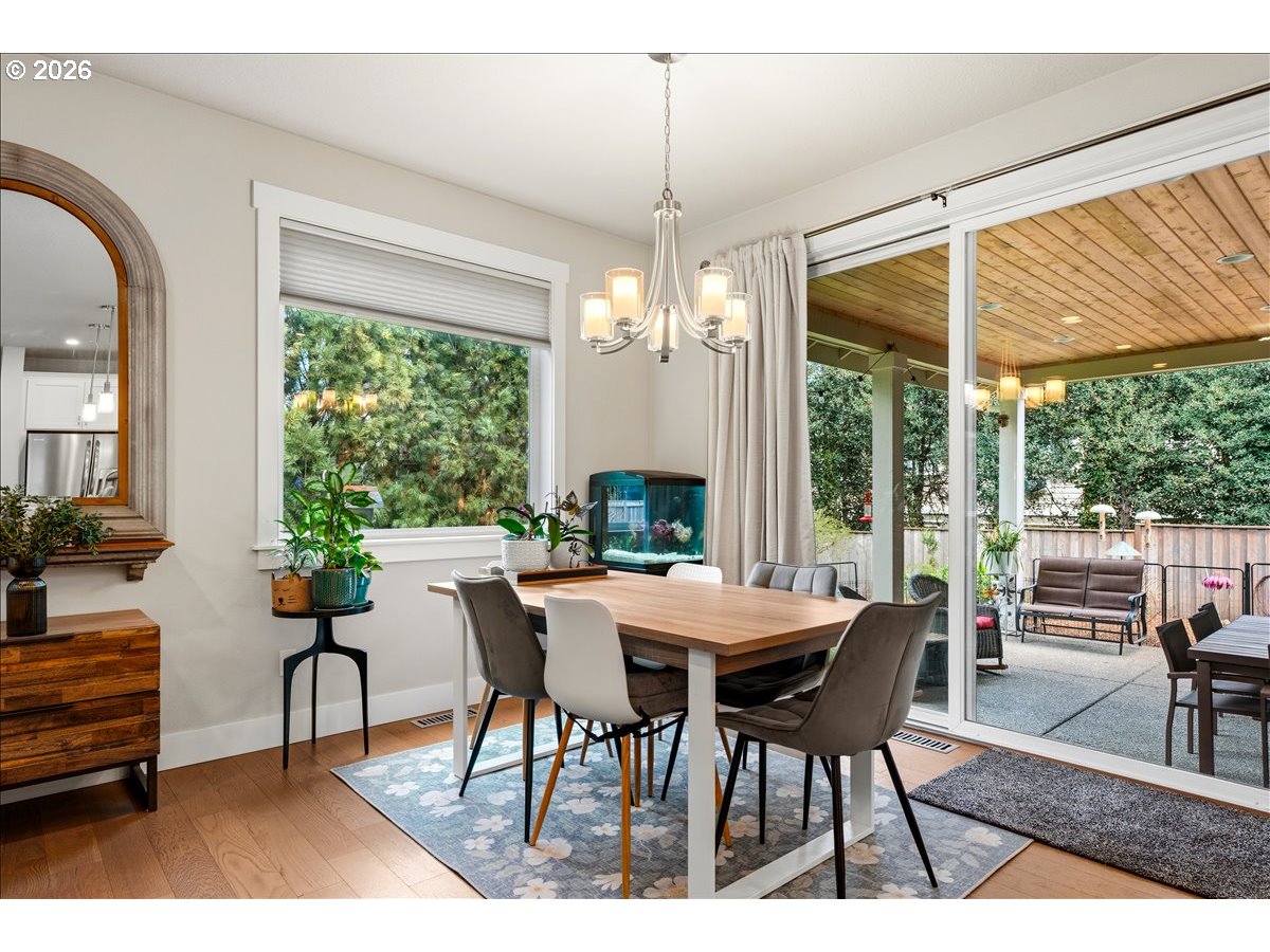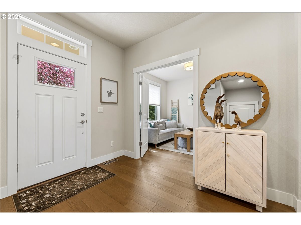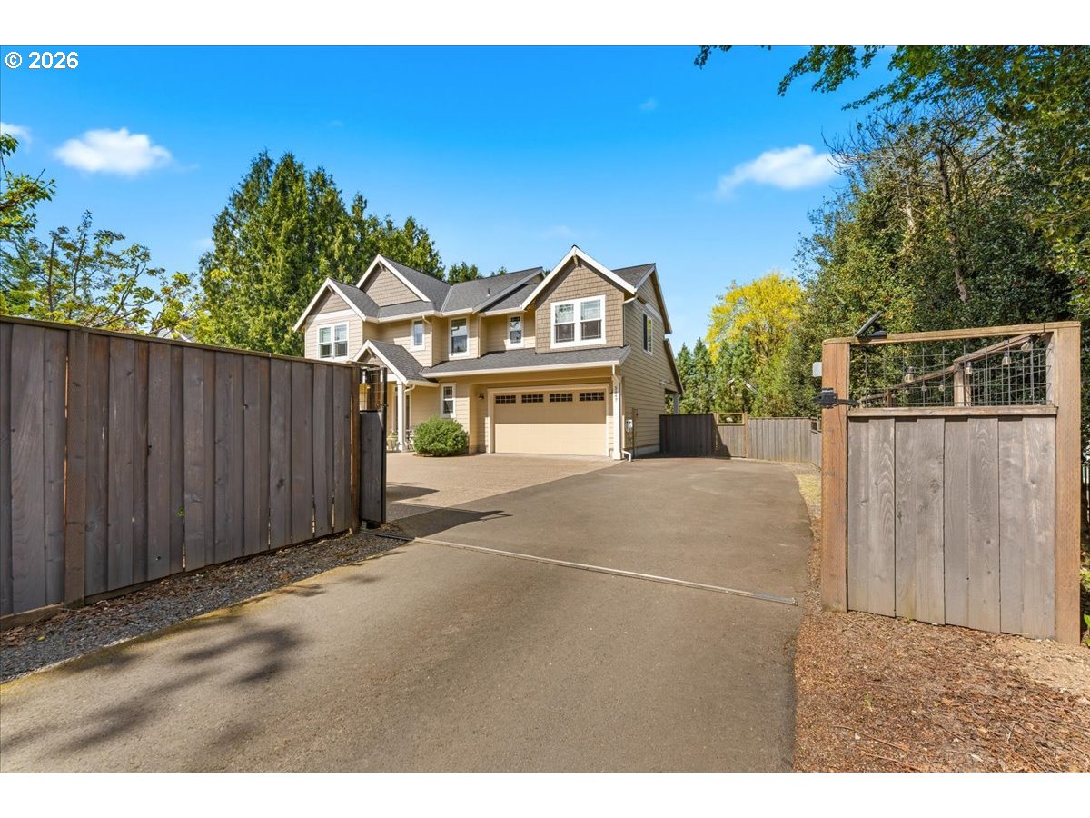 Set back over 200 feet from King road on a long private driveway so you can live like royalty in your own private oasis! This 2019 built superior craftsman from local builder provides maximum privacy and comfort on a third of an acre. The functional design features an open concept layout with engineered hardwood floors throughout. Quartz countertops with massive island in kitchen and a pair of 8 foot sliding doors creates a seamless transition to the large covered outdoor living area which is already plumbed with a natural gas hookup for a grill or fire. Office or bedroom on main floor. The upper level contains four bedrooms including a primary suite with vaulted ceilings and a soaking tub. Flooring upstairs was upgraded two years ago with high end double backed carpet. Key inclusions feature dual zone heating and cooling for precise temperature control on both levels, all stainless steel appliances included, gas range and fireplace. Other furniture available. Low maintenance beautifully manicured yard with a fully integrated sprinkler system. Lots of space on sides of home, with room for RV. Private gate and wrap around yard make it ideal for kids or pets. You live in the middle of the best of Milwaukie while being away from it all! This home offers a rare combination of modern construction and genuine solace tucked away from the main road while maintaining easy access to places like Safeway, Downtown Milwaukie, new pFriem, Ledding Library, New Seasons, Milwaukie Bay Park and more!