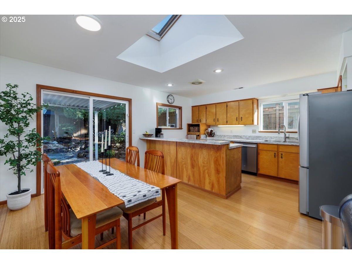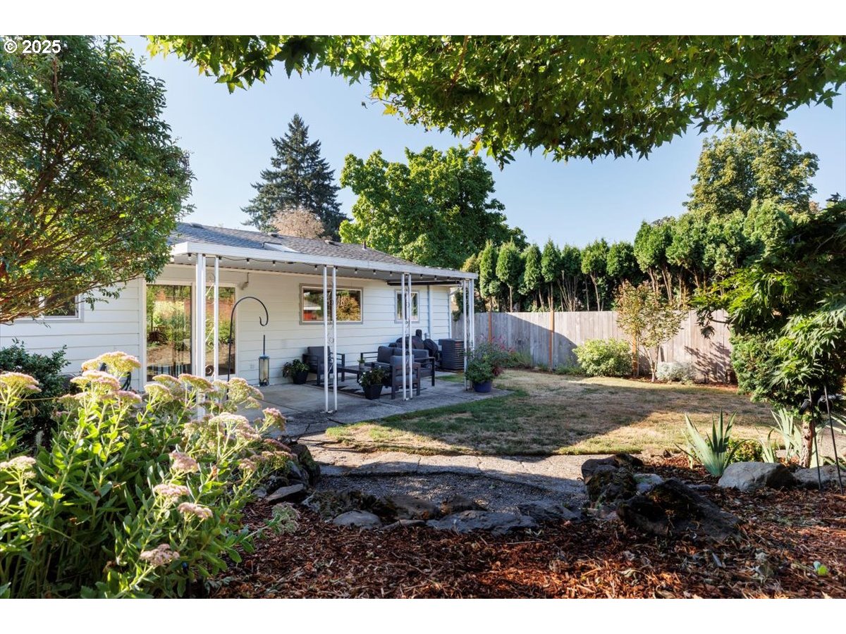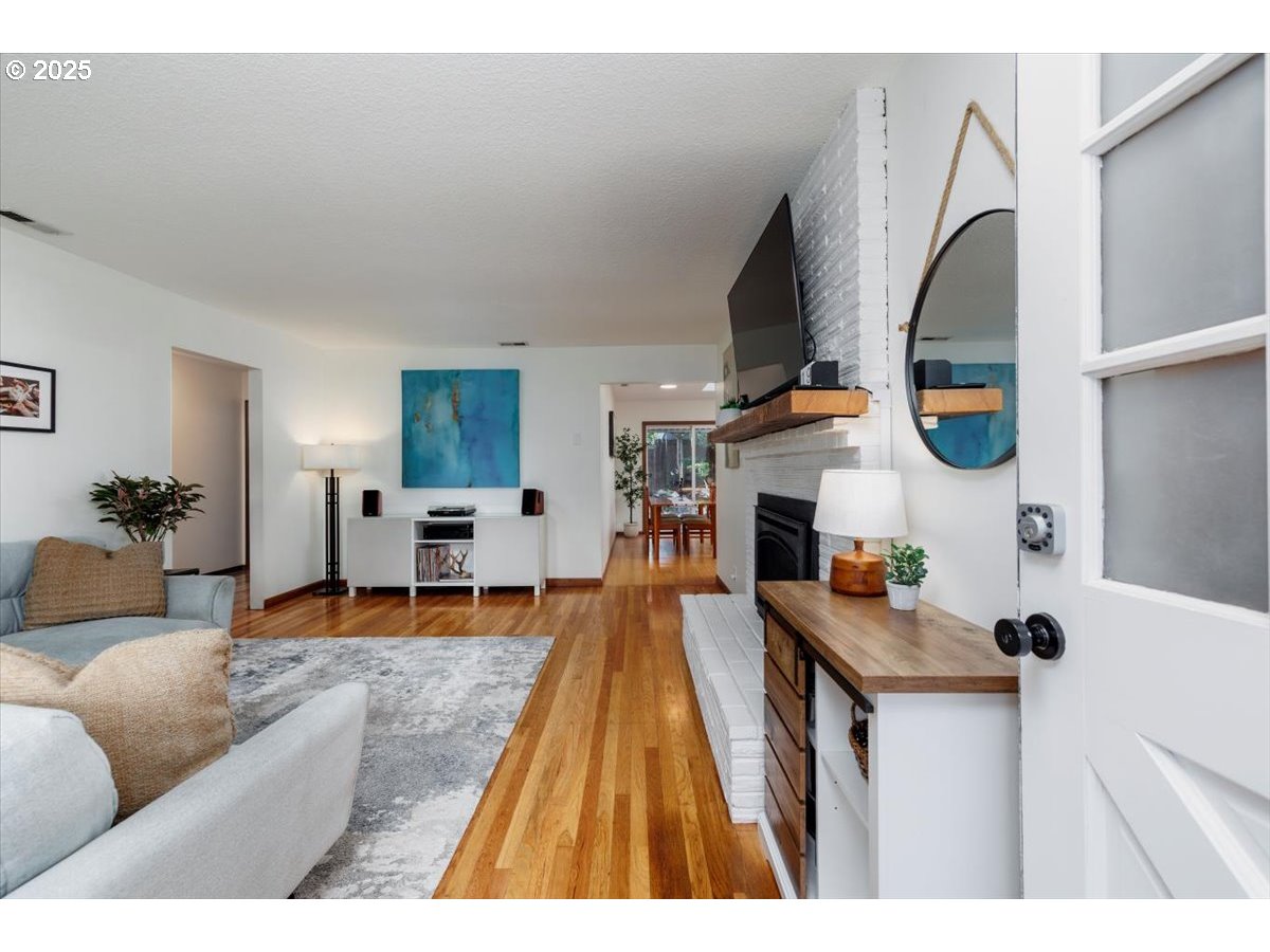 Adorable one-level home where comfort meets convenience! The spacious living room features hardwood floors and a cozy gas fireplace. The updated kitchen offers an eat-at bar, dishwasher, and bamboo laminate floors, opening to the dining area with a slider to the backyard. Three bedrooms with hardwoods and a refreshed bath with tub/shower. Outside, enjoy a fully fenced yard with a 20x14 covered patio, flower beds, rock garden, and shed. Vinyl windows, clean garage utility area, electric furnace, and efficient heat pump. Location is amazing--less than a block from Max Patterson Memorial City Park. Move-in ready and full of charm!