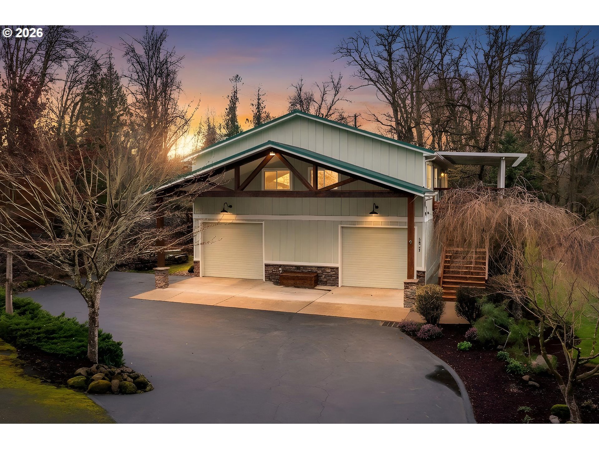 Nestled on 9+ pristine acres with direct Pudding River frontage, this 4-bed, 3-bath home, built in 2006, offers refined country living with multigenerational potential thanks to a generous lower-level living space and guest-friendly layout. An oversized attached 2-car garage, tucked beneath the home, provides ample storage and secure parking. RV/boat parking alongside the home as well. The property’s tranquil river views, mature landscaping, and expansive outdoor living spaces invite seamless indoor-outdoor entertaining, while a back-up generator delivers peace of mind for all seasons. Inside, a thoughtful floor plan affords flexible living arrangements—ideal for guests, in-law or au pair accommodations, or a home office—complemented by bright interiors, high-quality finishes, and timeless architectural details. The setting unfolds beside farmlands, wine country, and antique shops, delivering an authentic Northwest lifestyle just moments from easy routes to Wilsonville, Portland, and Salem. Revel in meandering river views, abundant nature, and room to enjoy outdoor recreation or small-scale farming, all within a serene, private landscape. The town of Aurora blends historic charm with regional access, and the surrounding pastoral, wine-country ambience makes this property a sanctuary for those seeking elegance, privacy, and a connection to rural Northwest heritage.