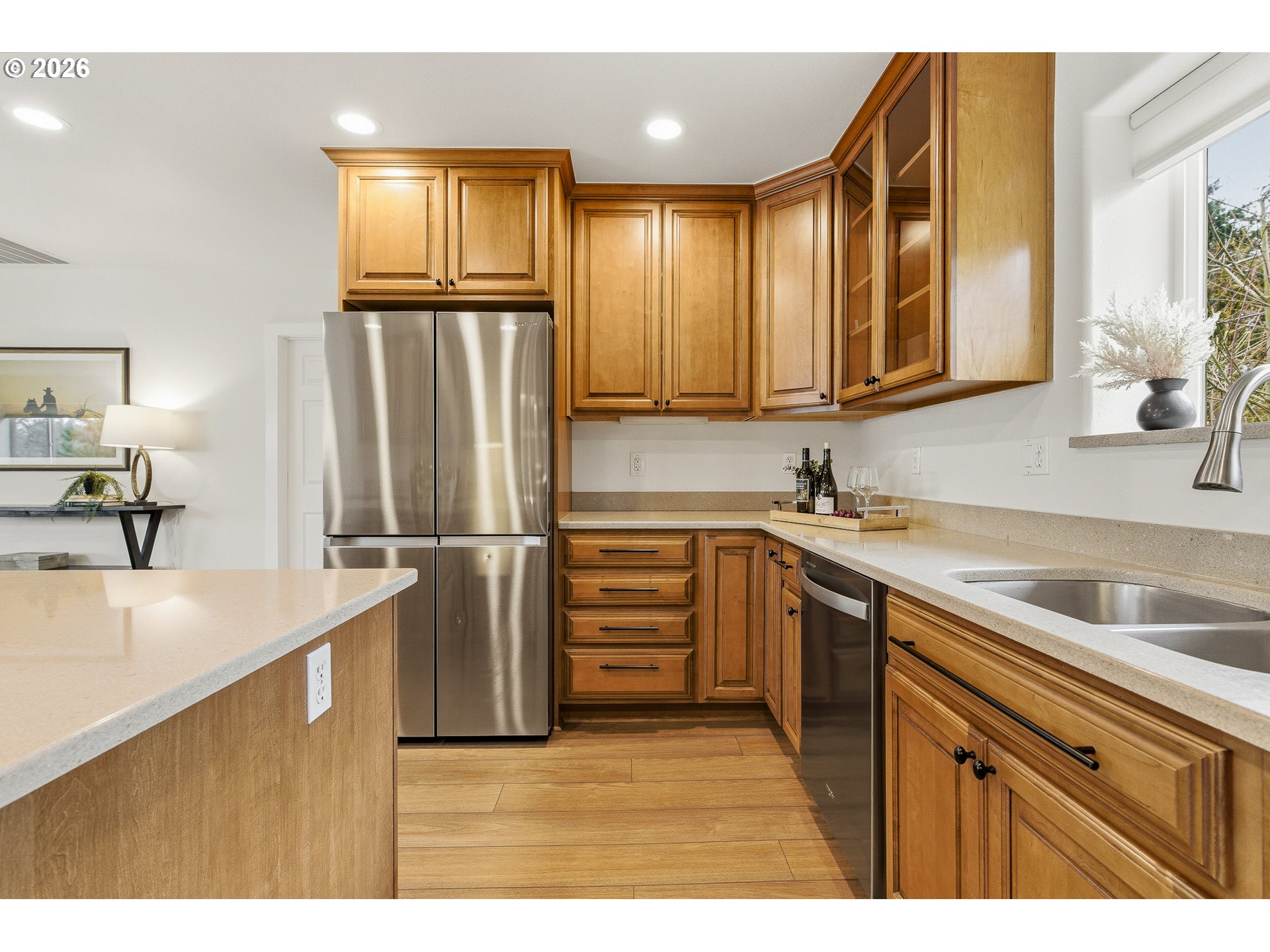Dishwasher, FreeStandingRange, FreeStandingRefrigerator, Island, Microwave, Pantry, SolidSurfaceCountertop