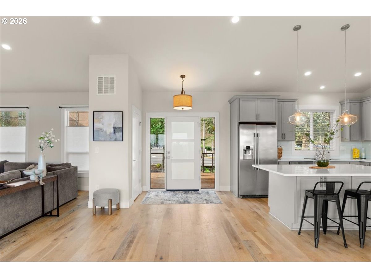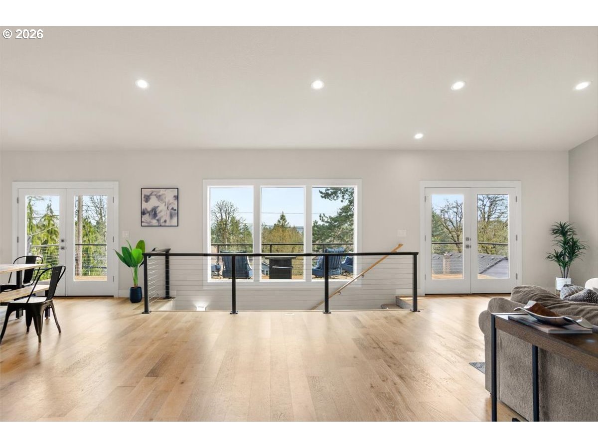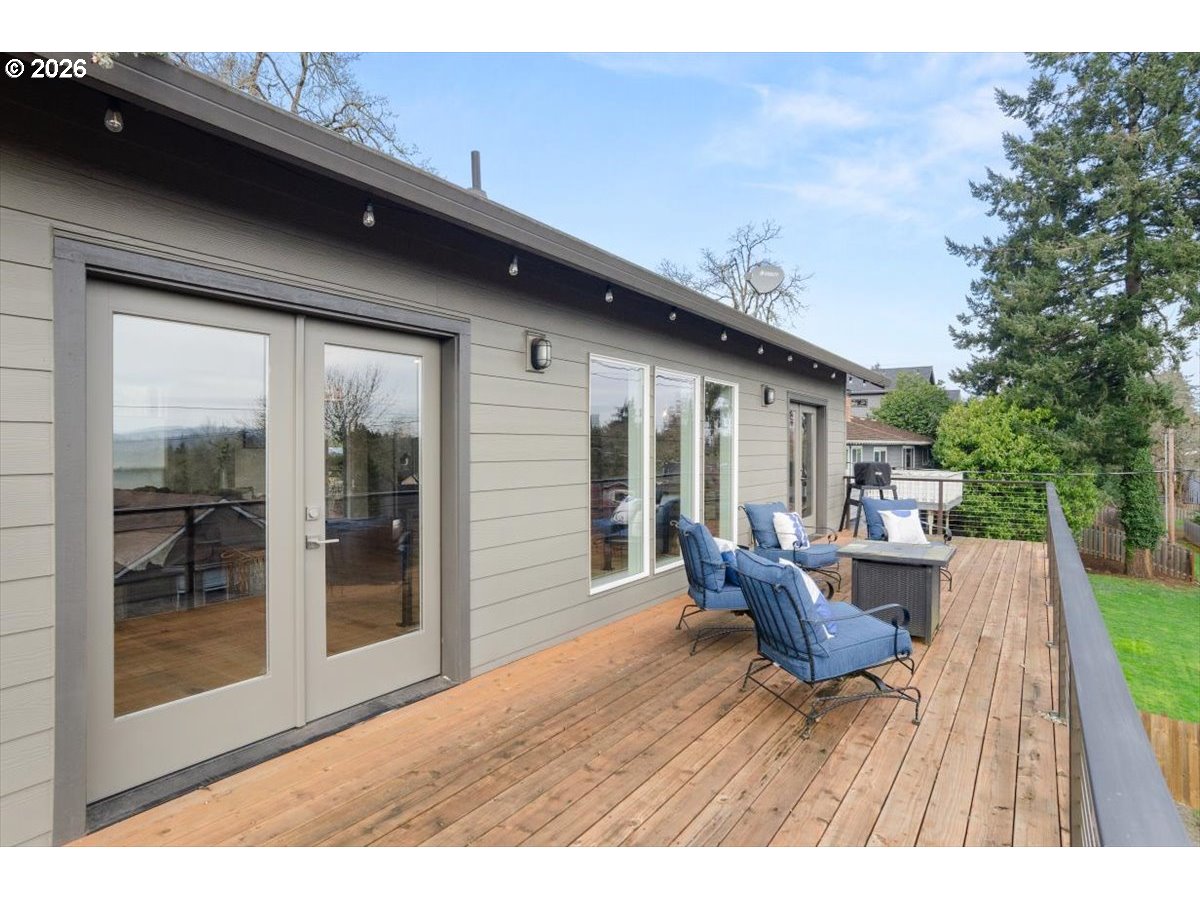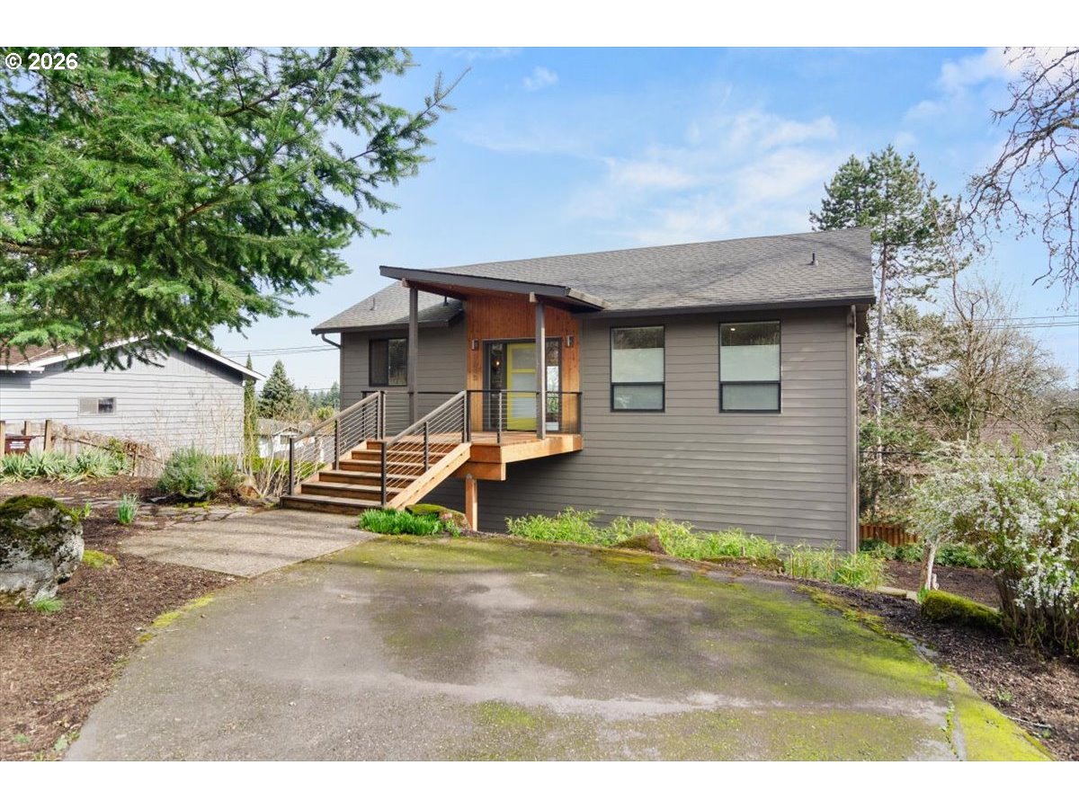 Modernized Northwest Contemporary offering turnkey living and flexible space in a convenient West Linn location. Extensively renovated down to the studs in 2017 and thoughtfully improved since, the home blends contemporary updates with comfortable, functional design.The light-filled main level features open living and dining areas anchored by a striking gas fireplace with limestone surround and color-changing ambiance. The refreshed kitchen is designed for gathering, with quartz countertops, a large island, and newer appliances including a five-burner gas range, drawer microwave, and dishwasher. A 40-foot deck spanning the length of the home extends the living space outdoors and creates an inviting setting for entertaining or relaxing. One level down, the primary suite provides a comfortable retreat with ensuite bath, along with two additional bedrooms, a full bathroom, and convenient laundry. The lower level offers a spacious media or flex living area, an additional bedroom, and full bath—ideal for guests, work-from-home needs, or multi-generational living. Recent upgrades include an energy-efficient Mitsubishi hyper-heating heat pump providing both heating and cooling. Set on a generous .24-acre lot with mature trees and a dedicated dog run, the property offers both indoor comfort and outdoor space. Ideally located across from West Linn High School and just minutes to parks, schools, and shopping and dining in both West Linn and Oregon City.