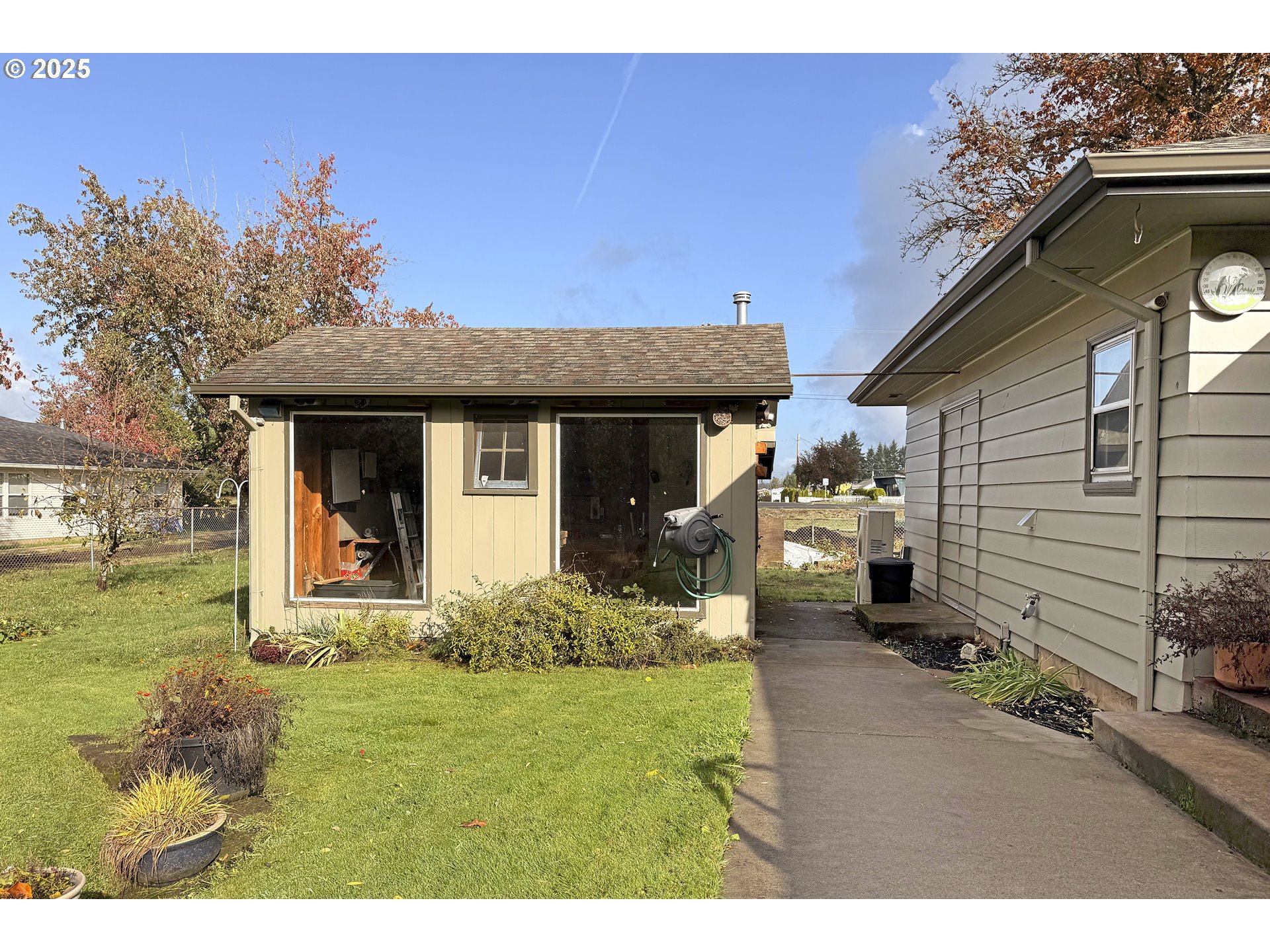 (503) 893-8874PRICE REDUCED! Don't let this one pass you by. Rare opportunity to live & work in the same location with this 2516 sf commercial shop with 504sf second story office mezzanine built in 2011 with so many extras need to see for yourself. 20ft wide entrance door in front, 8ft side door along with 22ft ceilings, heating & AC, large exhaust fan. Owner spared no expense, really need to check out all the extras the shop has to offer. Lots of possibilities for its use. Then step out of the shop into this beautifully restored 1956sf 3bdrm 2 bath home with attached garage. Home has had many upgrades including roof, windows, plumbing, well, well components, newer exterior paint also restored oak hardwood flooring throughout. Gorgeous landscaping, lots of trees, shrubs, flowers & fruit trees. Property includes tool shed, green house/hobby room, RV hookup along with a completely fenced in back yard. Before scheduling a showing, potential buyers must be prequalified. Shown by appointment only. Owner may consider partial carry with large down.
