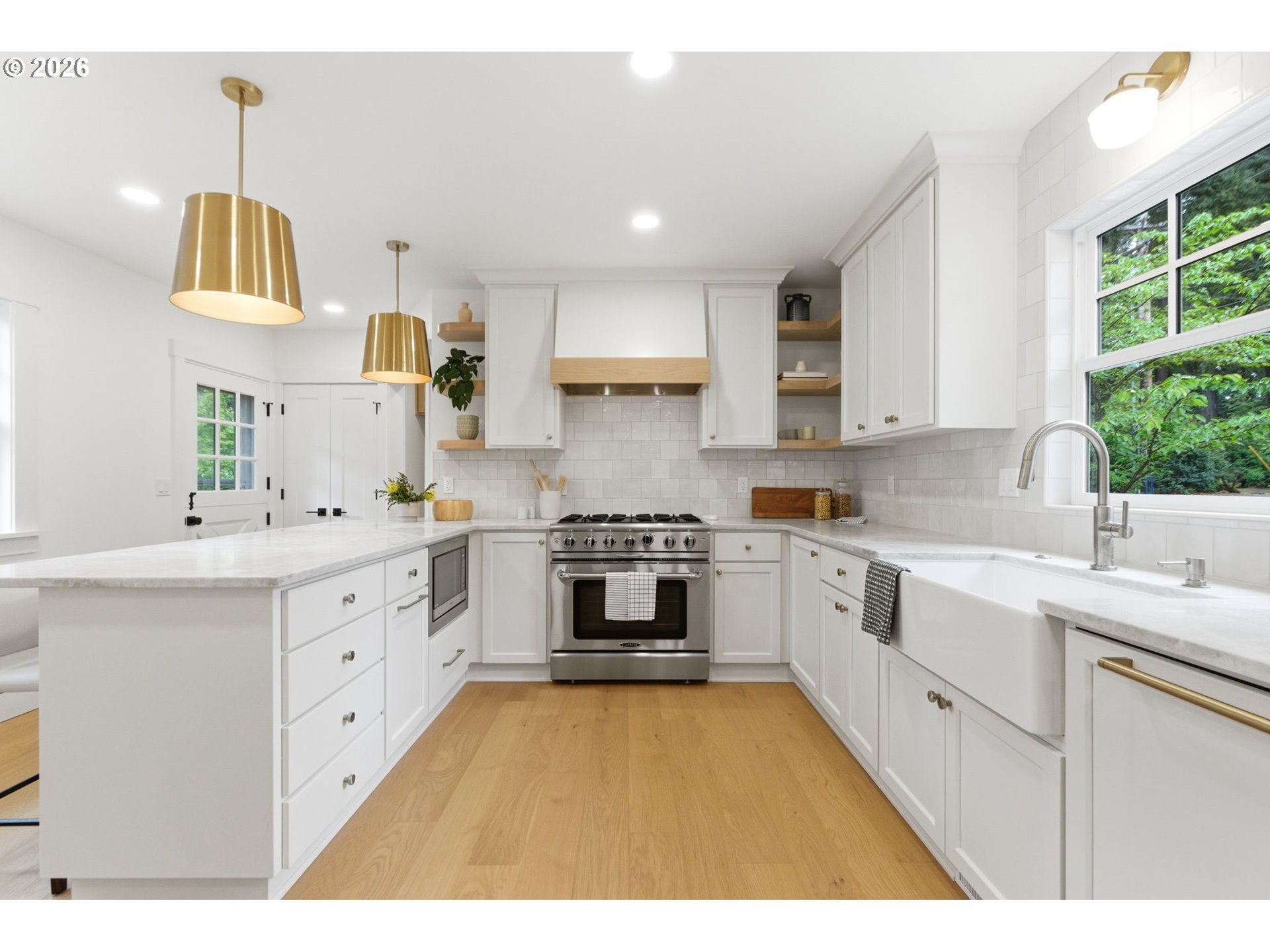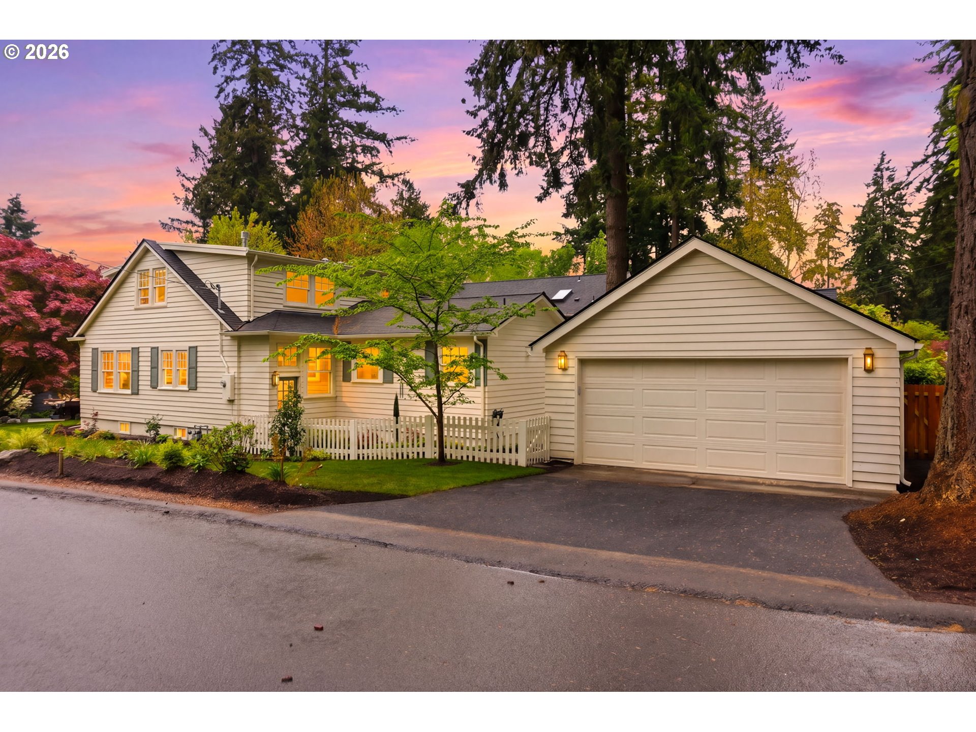 Beautifully restored 1930s Cape Cod blending timeless classic charm with modern luxury in the heart of Lake Oswego's First Addition neighborhood. This home has been meticulously updated in a stunning neutral color palette while preserving its original architectural integrity. New windows flood the home with natural light, highlighting engineered hardwoods and a seamless flow perfect for everyday living and entertaining. The designer kitchen is a true centerpiece, showcasing quartzite countertops, custom cabinetry, handcrafted tile and premium built-in appliances. The bright family room centers around a gas fireplace with a marble tile surround.The main-level primary suite features Phillip Jeffries grass cloth wallpaper and a spacious walk-in closet. A beautiful primary bathroom features a striking 9-foot quartzite and white oak vanity, private toilet room and luxurious walk-in shower with dual shower heads.Upstairs includes three bedrooms with new carpet and windows and a light filled flex space. Spacious full bath with dual sinks, tub/shower, and private toilet room. The lower level features a generous family room, storage space, additional bedroom, and full bathroom—ideal for guests, multi-generational living, or flexible use. Outside, fully reimagined landscaping sets this property apart, featuring lush new sod, sprinkler system and fully fenced backyard—perfect for relaxing or entertaining. The detached two-car garage is wired for EV charging, adding modern convenience to this classic home. A rare blend of character, quality, and modern comfort in a prime location.