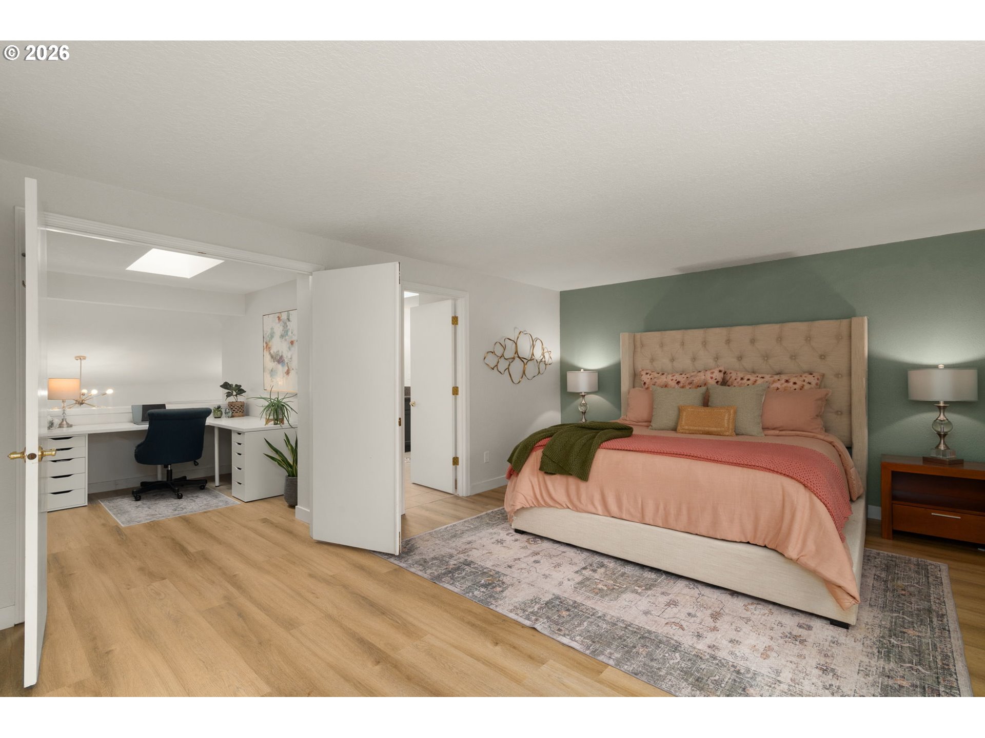 Thoughtfully updated 3-bedroom + loft, 2-bath NW Contemporary with NO HOA, ideally located across from Wilderness Park’s 55 acres of wooded trails, and near Camassia Park, known for its seasonal wildflowers. Also close to the highly rated West Linn high school. Front door opens to reveal a spacious living and dining area with vaulted ceilings, skylights, and a cozy wood-burning fireplace—ideal for gatherings. The kitchen includes a gas range, stainless steel appliances, pantry, eating area, and laundry/storage closet. All appliances are included. Lower level offers flexible living space with two guest rooms, bathroom and second family room. Upstairs, the loft offers the perfect space for a home office or cozy reading nook, while the primary suite features dual closets and bathroom with large walk-in shower, updated sink & lighting fixtures, cabinet hardware, and refreshed paint for cabinetry, walls and ceiling. Extensive updates since 2022 include: roof and skylights, interior paint throughout including cabinetry and fireplaces; luxury vinyl plank flooring (except primary bathroom) and carpet; lighting and sink fixtures; toilets; kitchen appliances including gas range and vented hood; refrigerator, washer and dryer, thermostat; keyless entry; and GFCI outlet at deck, electrical panel (2022); gas furnace and A/C (2023); dishwasher, electric water heater, and garage door (2025).