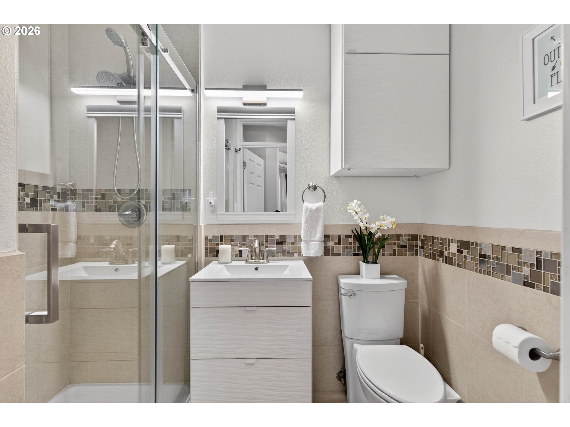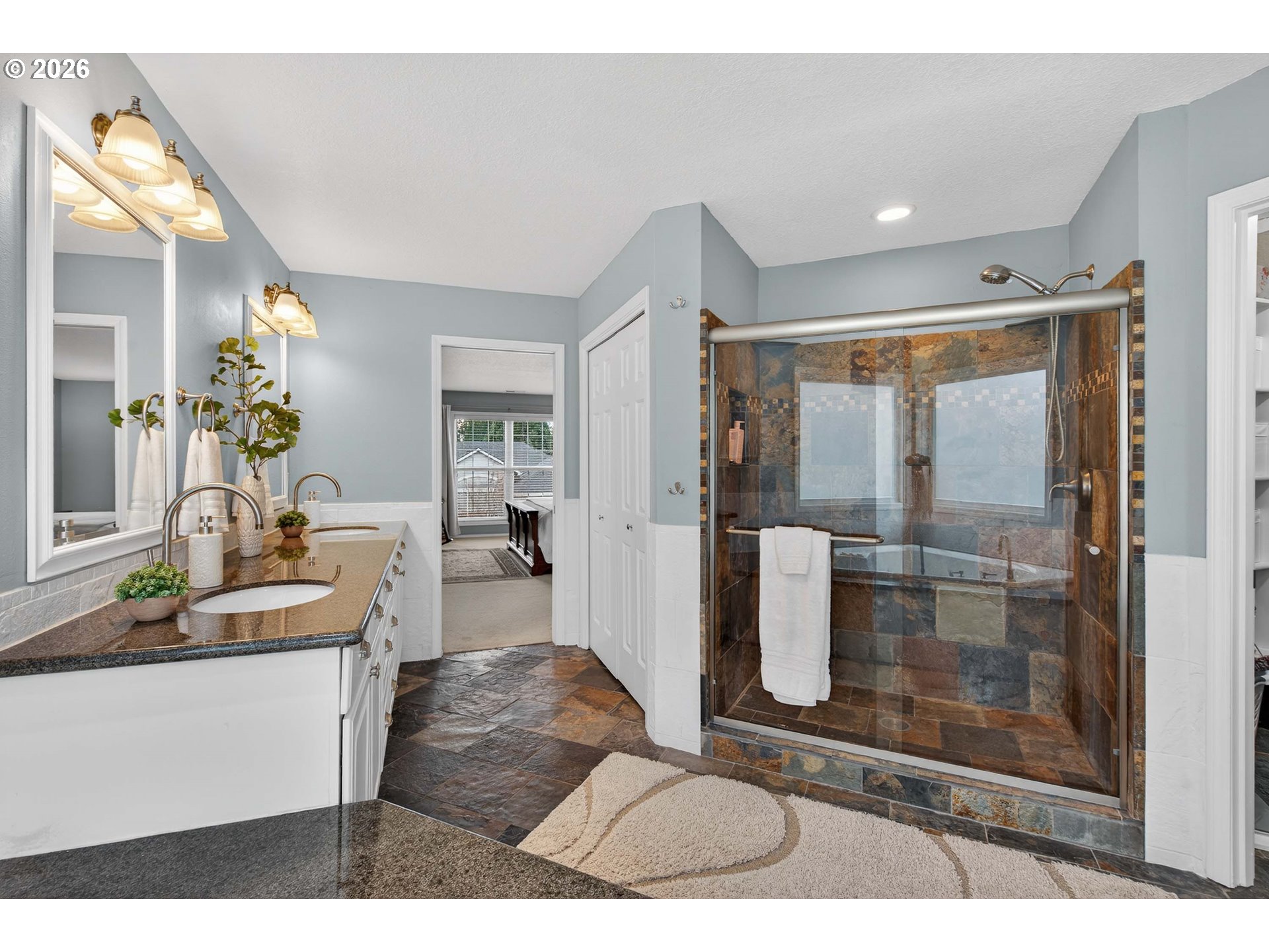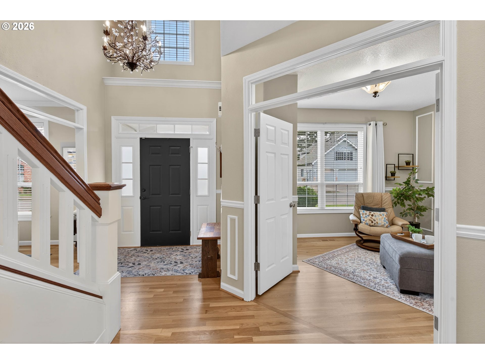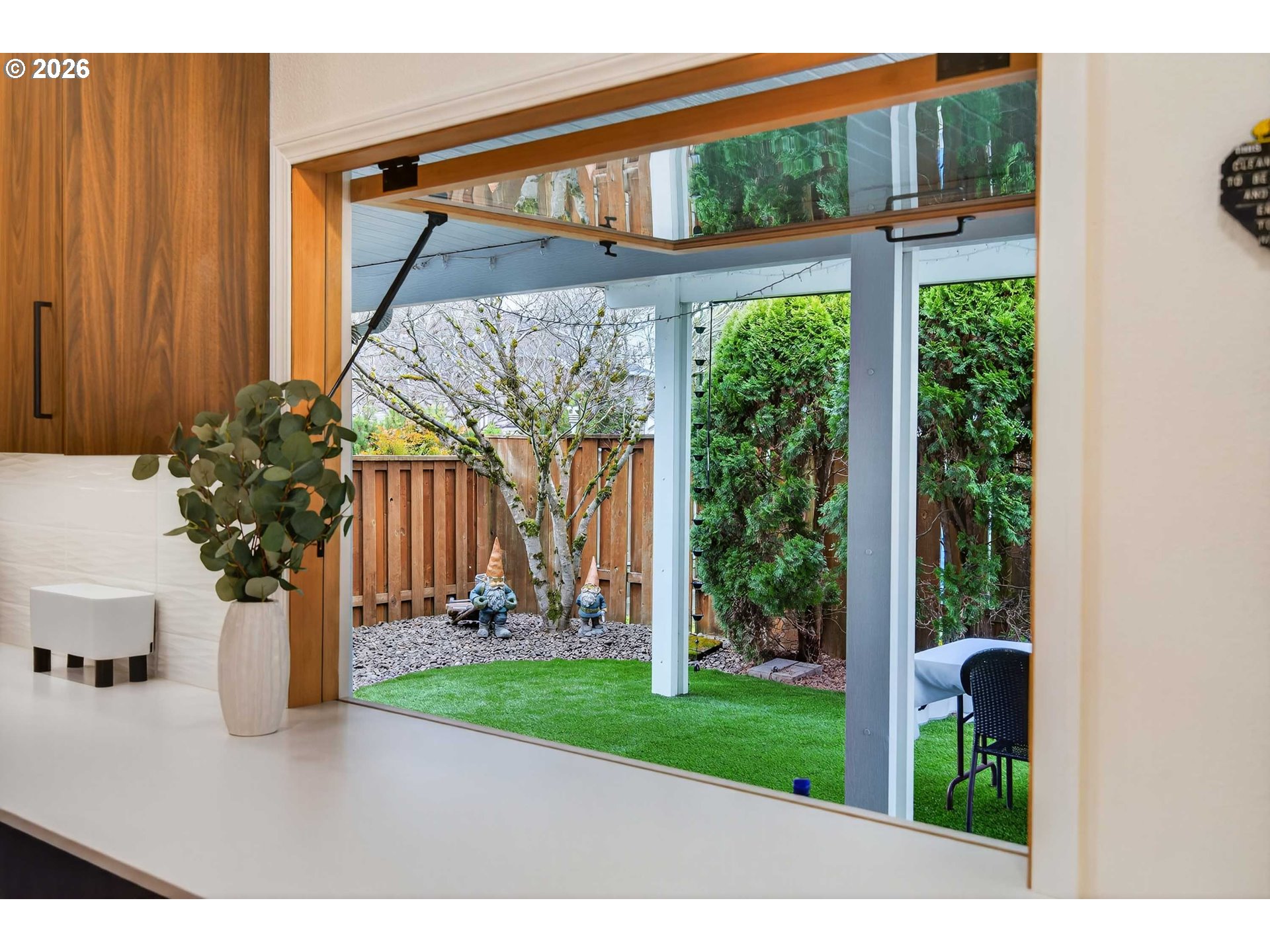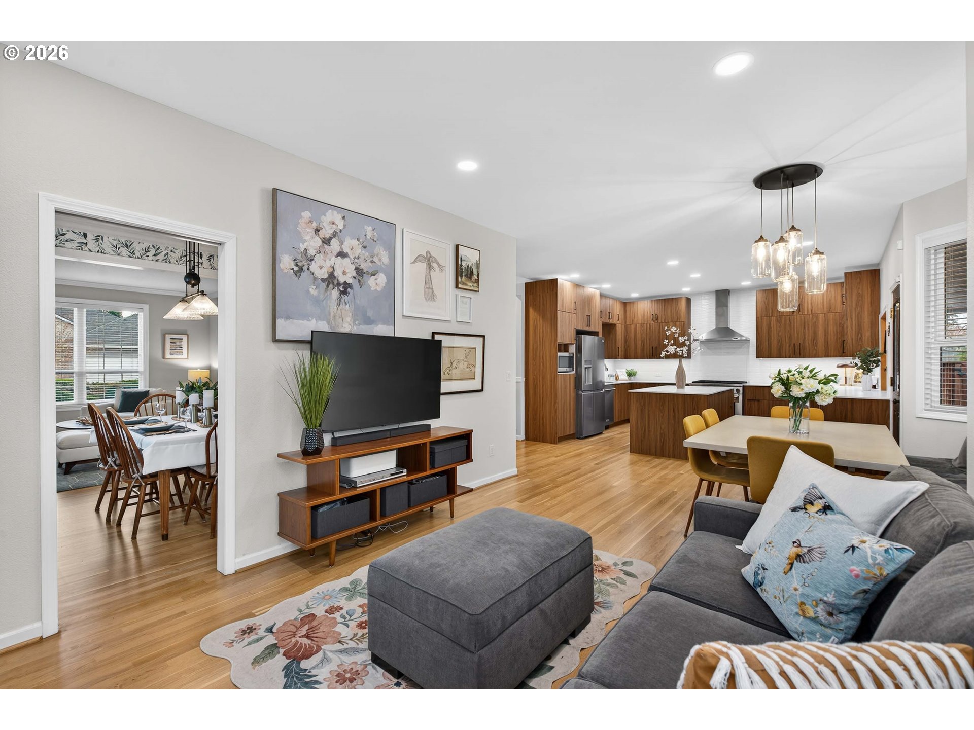 This colonial traditional in Milwaukie sits on a quiet cul-de-sac corner lot with a heated pool, diving board, hot tub, and covered patio. Heated pools are not common in the Portland metro. This one gets used.The 2024 kitchen renovation touched everything: floor-to-ceiling walnut-toned cabinetry with pull-out drawers, quartz countertops, a GE Cafe 6-burner professional range with wok burner, beverage and wine cooler, pop-up mixer cabinet, island, and a 40x57 atrium window that lifts open to the covered patio. Main floor oak hardwoods were refinished the same year with millwork added throughout. The family room anchors the back of the main floor with a gas fireplace and stone surround.The layout works for different households. A main floor flex room with closet sits next to a full bathroom, practical as an office, guest room, or multi-generational setup. Upstairs the primary suite is 13'4 x 19'1 with a walk-in closet and ensuite with jacuzzi tub, walk-in shower, double sinks, and granite countertops. Two additional bedrooms share a full hall bath. A fourth room at 21x22 with angled ceilings works as a bedroom, studio, or bonus space.The three-car garage is finished with LVP flooring, built-in cabinetry with butcher block counters, stacked laundry, and natural light. Additional updates include Milgard double pane vinyl windows and exterior paint last year, and two-zone high efficiency heating and cooling. No HOA.