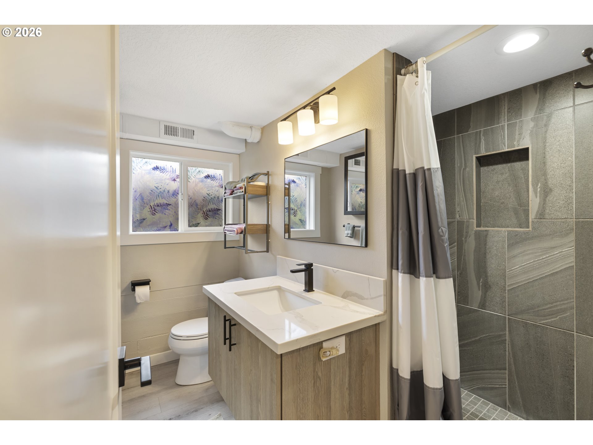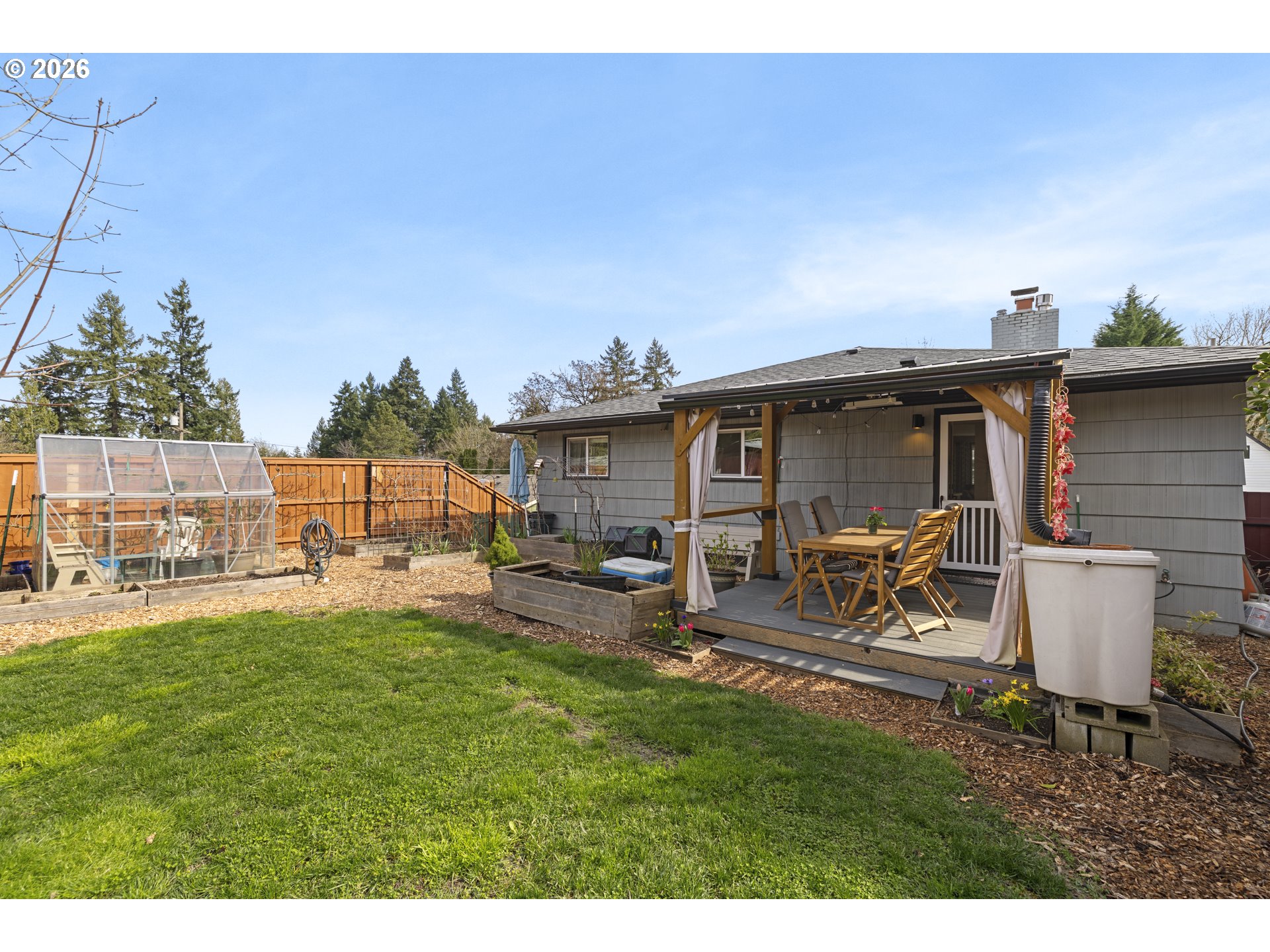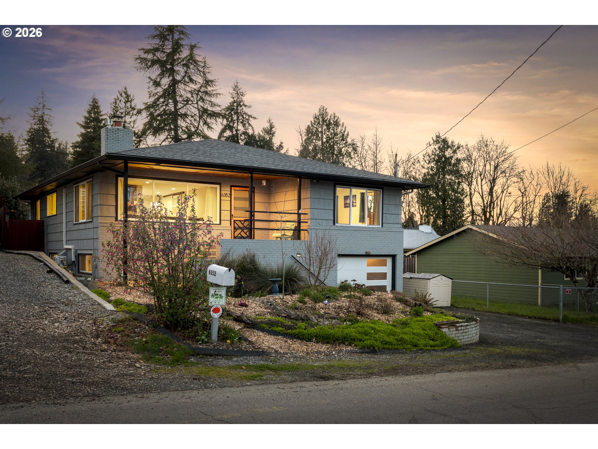 Extensively renovated mid-century daylight ranch in West Linn’s beloved Bolton neighborhood! This home offers a bright, functional layout with 4 bedrooms, 3 bathrooms, and living space across two levels. The main floor welcomes you with abundant natural light, a classic wood-burning fireplace, and a layout that flows comfortably between the living, dining, and kitchen spaces. The kitchen features quartz countertops and stainless steel appliances, connecting seamlessly to the main living areas and three bedrooms down the hallway. The primary bedroom includes an ensuite bathroom with double sinks and a walk-in shower. With its own exterior entrance, the lower level functions as a separate living space—ideal for multigenerational living or extended stays. Enter into a cozy dining area that connects to a kitchenette, bedroom, and living room anchored by a recently installed gas fireplace. A full bathroom and laundry/storage room complete the space. Recent updates include a mini-split on the main level for efficient year-round comfort, new gas fireplace in the lower level, a new dishwasher, and much more. Outside, the meticulously landscaped yard includes dwarf fruit trees, raised garden beds, a greenhouse, a peaceful water feature, and thoughtfully designed spaces for relaxing or entertaining. Much of the yard features native plantings, and the property is currently certified Gold in the Backyard Habitat Certification Program. Conveniently located just a short distance from Mary S Young Park, Cedaroak Boat Ramp, Hammerlee Park, and local shops and restaurants, this home offers a rare opportunity to enjoy a renovated mid-century property in the heart of West Linn.