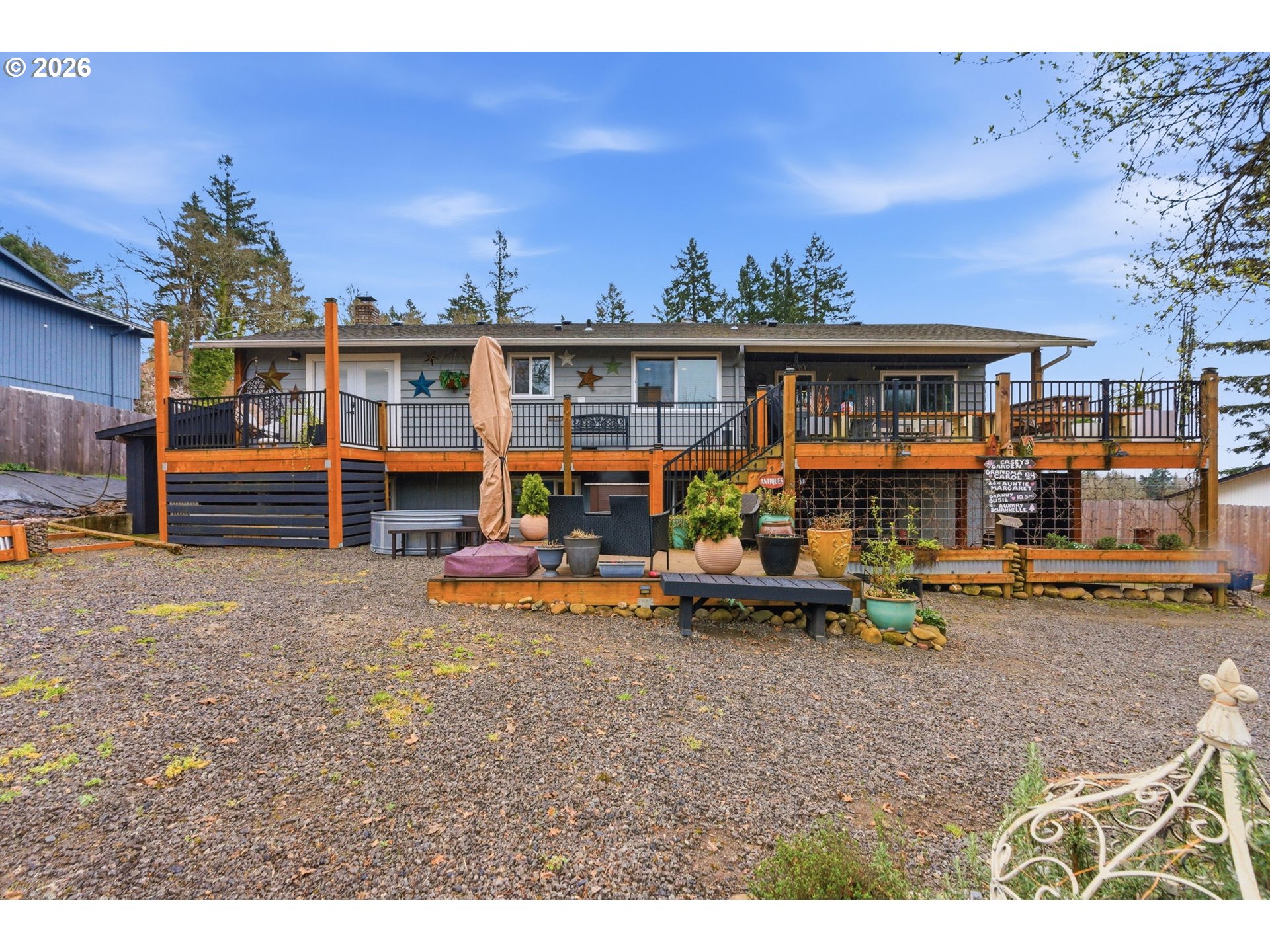 Welcome to this beautifully updated and versatile Gladstone home, designed for both comfort and flexibility. The light-filled upper level serves as the heart of the home, featuring a spacious living room that flows effortlessly into the dining area and a stylishly updated kitchen with modern finishes, gas stove, walk in pantry and generous counter space perfect for everyday living and entertaining. Three well-sized bedrooms complete the upper level, offering comfortable and functional spaces for family, guests, or a home office.Step outside to a backyard built for gathering and relaxation. A large deck overlooks the expansive yard, shed for storage, chicken coup, and raised garden beds creating the perfect setting for summer dinners, morning coffee, or quiet evenings outdoors. The generous lot also offers convenient RV parking for added flexibility.The lower level offers exceptional potential with a fully equipped ADU featuring its own private entrance, full kitchen, bathroom, laundry, and living space with a Murphy bed. With a covered patio and private outdoor area, it’s ideal for multigenerational living, hosting guests, or generating rental income.Conveniently located just minutes from parks, schools, shopping, and easy freeway access, this home combines comfort, versatility, and opportunity in one exceptional property.