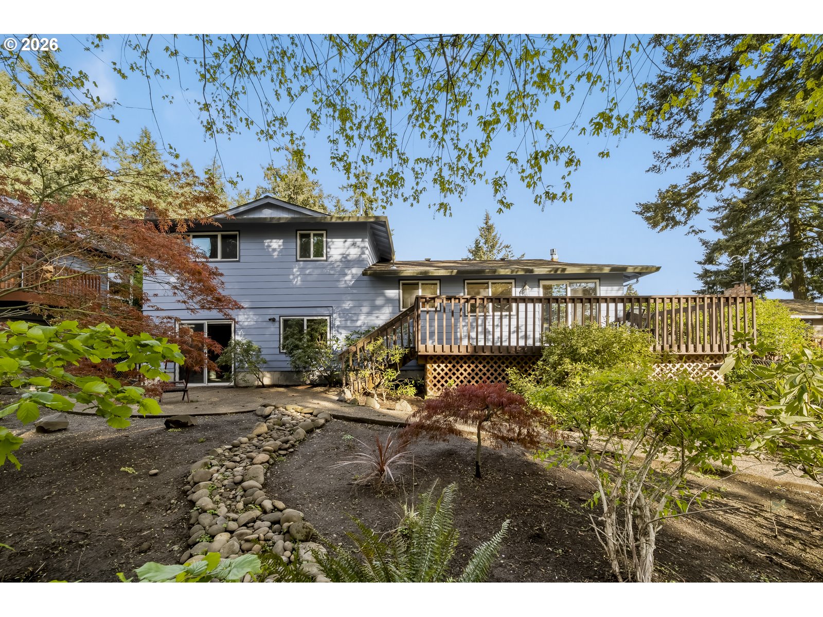 This hilltop 70s retreat has been lovingly cared for by one owner and is on the market for the first time since it was constructed. Feel like you're on vacation in the city with its peaceful territorial views! Step into the sunken living room, where a cozy fireplace anchors the space and invites you to relax. The updated cook's kitchen shines with granite countertops and stainless steel appliances, flowing seamlessly into the dining area with views out to the large deck and beautifully landscaped .21-acre lot. There are four comfortable bedrooms, including a primary with dual closets, an ensuite bath, and views of the trees out its windows. A spacious family room opens directly to the backyard, creating easy indoor-outdoor living. Updates include a newer roof, fresh paint, and recent crawlspace overhaul. Complete with a two-car garage and located in a sought-after neighborhood with a community park and pool, this is a rare opportunity to own a truly special home.