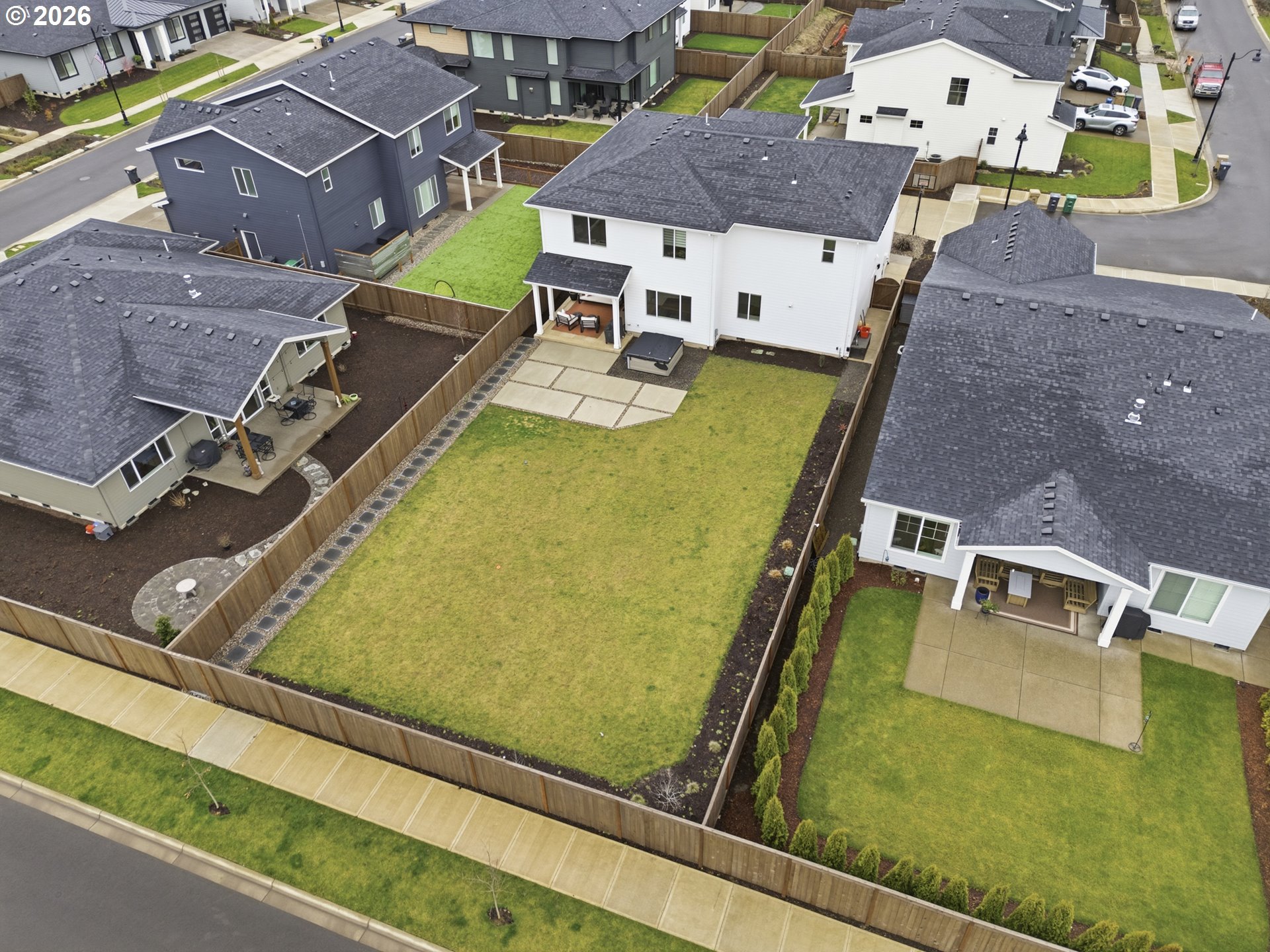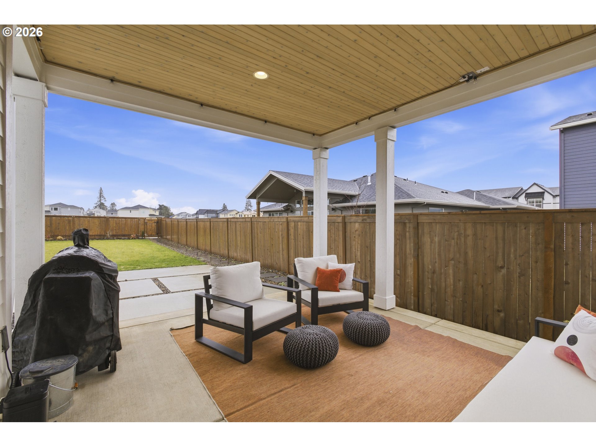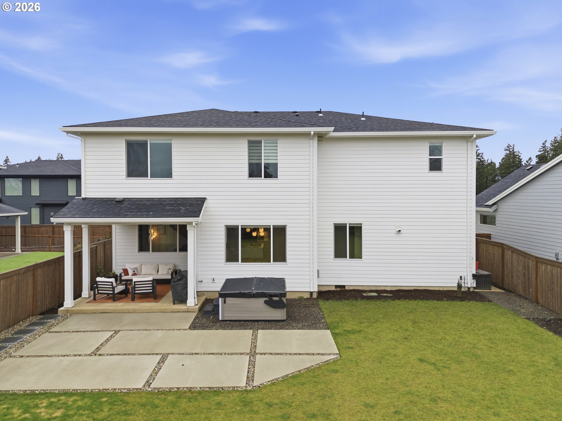 Located in the desirable Frog Pond neighborhood, built in 2024 by Stonebridge Homes NW, this like-new home delivers the best of new construction without the wait. Set on one of the largest lots in the community—nearly ¼ acre, it offers a rare combination of space, elevated upgrades, and refined outdoor living.The home features 3,335 sq ft that include 5 bedrooms, 2.5 baths, and a generous bonus room, offering ideal flex space for media, work, or play. The main level is designed for connection, function and entertaining, anchored by a well-appointed kitchen with a quartz waterfall island, gas range, generous storage, butler's pantry, and seamless flow into the living and dining areas. Owners’ entry with built-in storage and desk space provides a functional transition from garage to home. Upstairs upgraded 9’ ceilings and convenient laundry enhance everyday comfort and functionality.Outdoor living is a true highlight with an expansive backyard patio ideal for entertaining and dining, a BBQ gas line, and a large yard rarely found in newer construction. A welcoming front seating area, ample driveway, and 2.5-car garage complete the home’s thoughtful design.Enjoy a connected lifestyle with easy highway access, neighborhood paths and parks, and close proximity to Memorial Park, Willamette River recreation, and the new Frog Pond Primary School—blending outdoor living, community, and convenience in one of Wilsonville’s most sought-after areas. Buyer to do due diligence on school boundaries. An exceptional, turnkey offering.