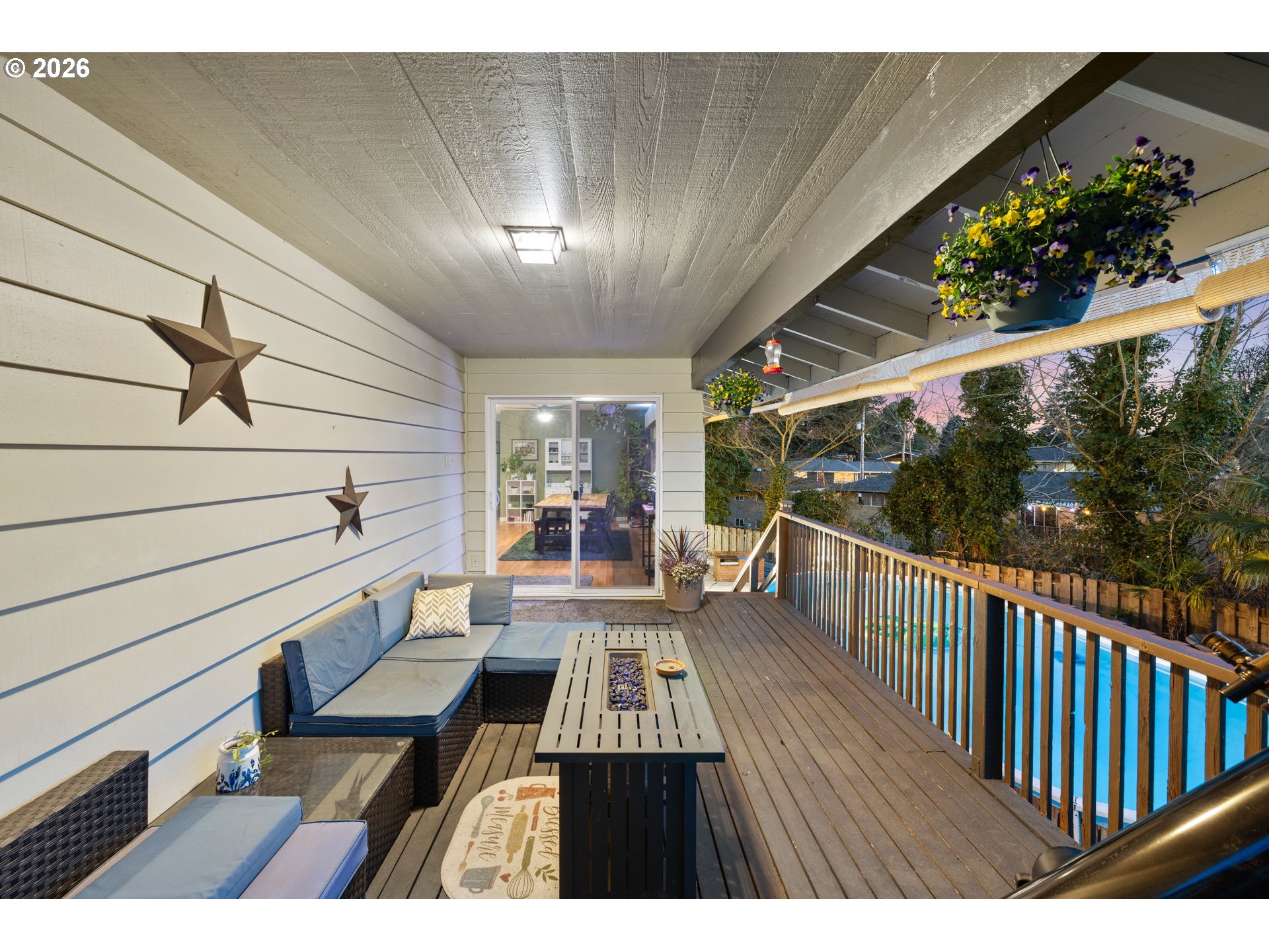 Welcome to this beautifully appointed daylight ranch, situated on a quiet cul-de-sac and thoughtfully designed for both comfort and function. This home features 3 bedrooms and 3 full bathrooms, including a generous main-level primary suite complete with an ensuite bathroom and a private balcony overlooking the pool—your own peaceful retreat. An additional bedroom and full bathroom are also on the main floor for added convenience. The daylight basement expands the living space with a third bedroom, a full bathroom, a spacious family room with a fireplace, a versatile bonus room, and a utility room—ideal for guests, hobbies, or multi-generational living. The light-filled main level showcases a spacious living room anchored by a cozy fireplace and an expansive, south-facing picture window, creating a warm and inviting atmosphere for everyday living and plant enthusiasts. Enjoy seamless indoor-outdoor flow with access to the covered deck offering breathtaking sunset views. Convenient stairs lead from the deck down to the fully fenced backyard, pool, ducks, strawberry garden and lower level. Step outside to experience true indoor-outdoor living. The private, southwest-facing backyard invites relaxation with a 16x32 above-ground pool—ideal for summer entertaining. The kitchen features elegant granite countertops, a designer backsplash, and included appliances, making it perfect for both casual meals and elevated gatherings. Car enthusiasts, hobbyists, or those needing extra space will appreciate the rare combination of a 2-car attached garage and an impressive 20x20 detached shop, complete with 110 power and an air compressor. Set on a large lot with newer flooring and a brand-new roof installed in 2024, this home offers the perfect balance of function, space, and convenience. It is ideally located near parks, schools, shopping, and offers easy access to Highway 213.