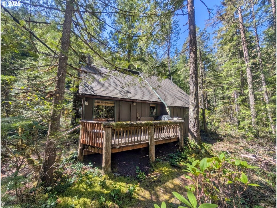 Here’s your mountain getaway on a quiet road with a tucked away location in the Mt. Hood National Forest. The lot is sunnier than most in the forest and it has a quick path to the Zig Zag River for your riverfront enjoyment. The cabin has a newly replaced roof and three sleeping areas! The primary is on the main level complete with it’s own slider and private deck. Upstairs are two bedrooms and sitting area. Relax in front of the fireplace with a cozy wood stove insert to warm your toes after a day of hiking or hitting the slopes. If you have a need to work while up at your cabin, there’s internet for your convenience. The stone fireplace and pine walls set the tone for a rustic cabin feel. Upstairs has all pine ceilings. There’s a country style kitchen to get the chili on. A dining table shares the main living area, perfect for card games too. If you like to watch salmon spawning this fall, Still Creek is a short walk away. Bonus hiking Trail is on this same road for a great work out! Easy access to Rhododendron for coffee and food. Mountain bikers will enjoy the back way to Trillium Lake or the ride down from Govy straight to your cabin. Sit back on your deck and enjoy the sounds of the Zig Zag River. Time to destress from city life. It’s only an hour away. Located on leased land in the Mt. Hood National Forest.