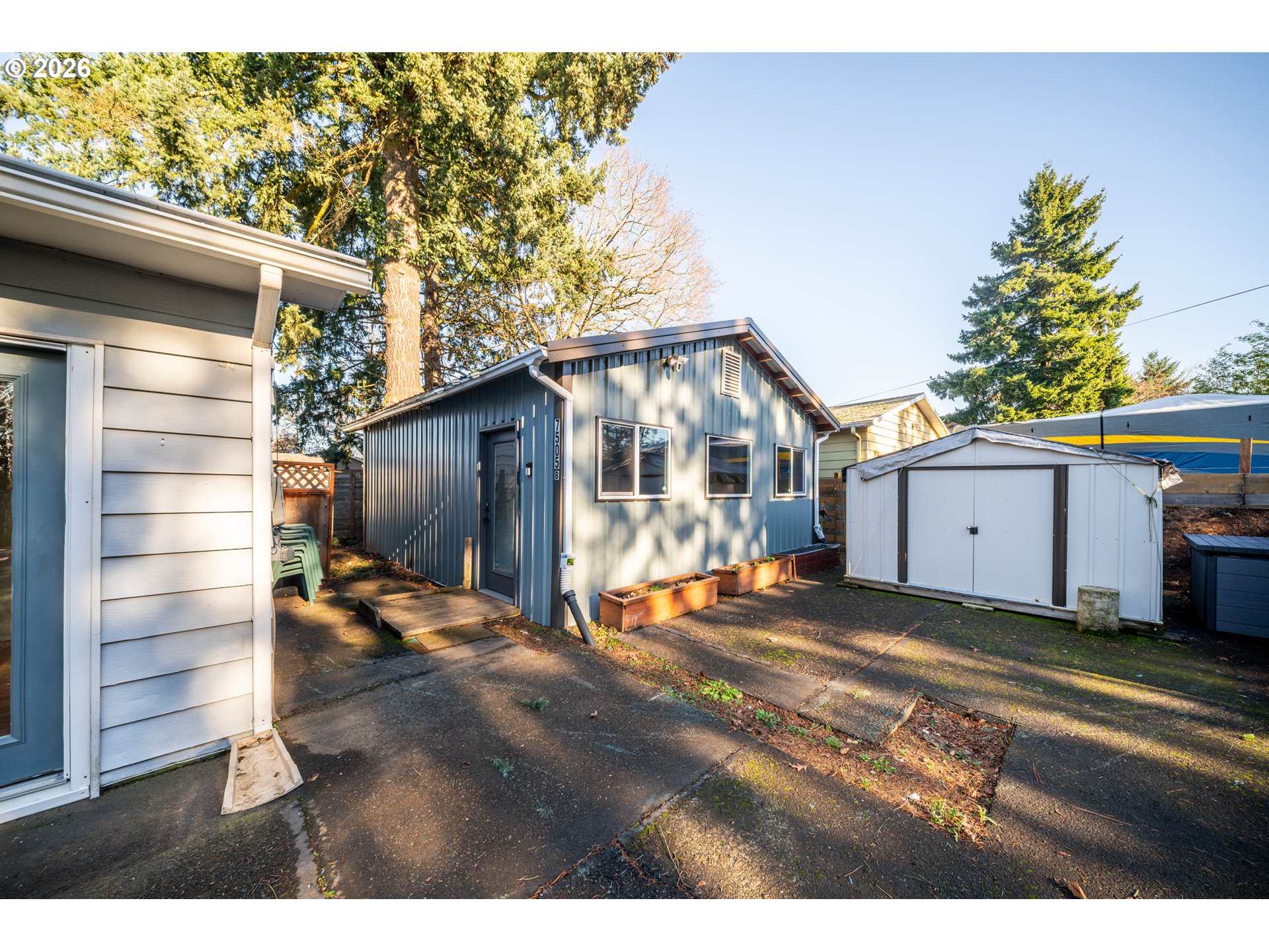 One-level living with a newer detached shop! This well cared for ranch-style home offers a hard to find separate shop built in 2022. This home has a nice flowing floor plan. Updated kitchen offering, stainless steel appliances, gas range, lots of storage and lots of counter space. Updated bathrooms! Engineered wood floors! Light and Bright w/ vinyl windows, a sliding glass door, and new light fixtures throughout. The fourth bedroom works well as an office, den, or hobby space with French doors to the exterior. Recent updates include a newer hot water heater (2022), roof (2016), and updated HVAC and AC (2018). The gated corner lot includes two sheds and a beautiful garden with mature fruit trees including cherry, pear, apple and more. Private covered patio perfect for entertaining or quiet evenings, with a gas hookup for a BBQ and electrical ready for a hot tub. Insulated shop features high ceilings, concrete floors, and electrical. Ideal for a workshop, hobby space, family room or private workspace. Many uses! And the property offers ample parking and storage with room for an RV, boat, and more. This home is conveniently located near freeway access, shopping, restaurants, Clackamas Mall, Trader Joe’s, and more! This a highly flexible property for hobbyists, work-from-home setups, or small businesses. Lots to see here!