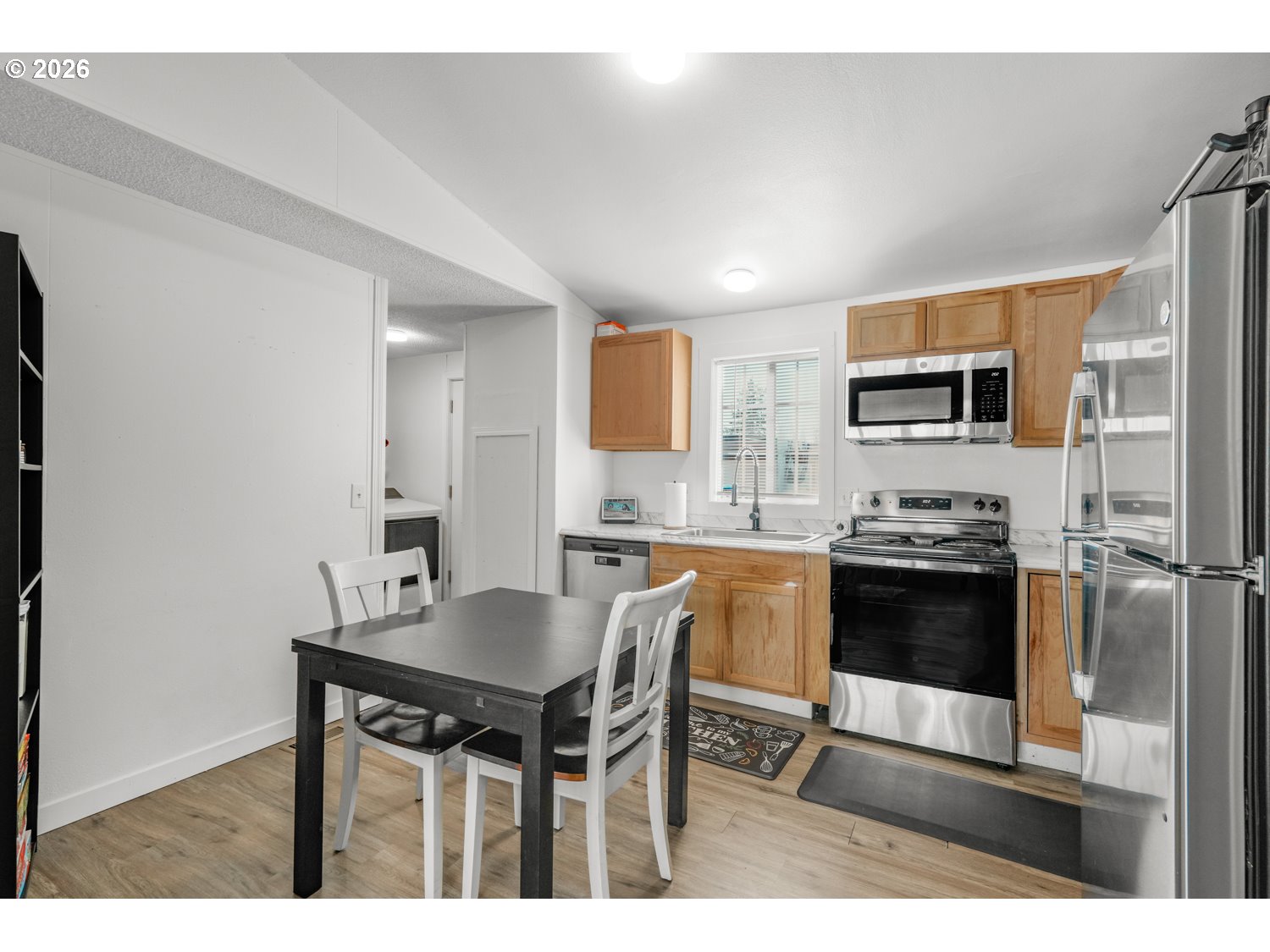 Move-in ready and beautifully maintained, this 3-bedroom, 2-bath manufactured home is tucked away on a quiet cul-de-sac in Lanterns Landing. Bright and airy throughout, the home features an open floor plan with a spacious living room highlighted by vaulted ceilings. The kitchen and dining area also offer vaulted ceilings, stainless steel appliances, and great flow for everyday living and entertaining. The large primary suite includes a walk-in closet and a private bath, while two additional bedrooms and a full guest bath provide flexibility for guests, office space, or hobbies. A convenient laundry area adds to the home’s functionality. Outside, enjoy low-maintenance outdoor space, perfect for a busy lifestyle. Ideally located just minutes from restaurants, shopping, Lewis & Clark College, and nearby nature parks with scenic hiking trails. Enjoy excellent walk and bike accessibility in this fantastic location. ***Space rent is $875/Mo. Utilities not included. All ages park.