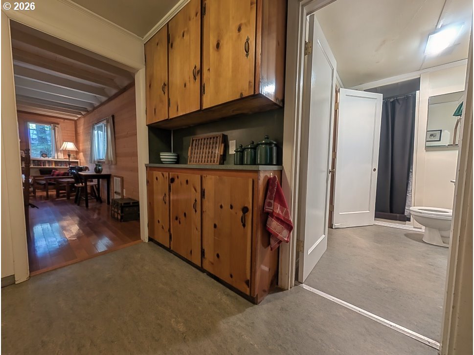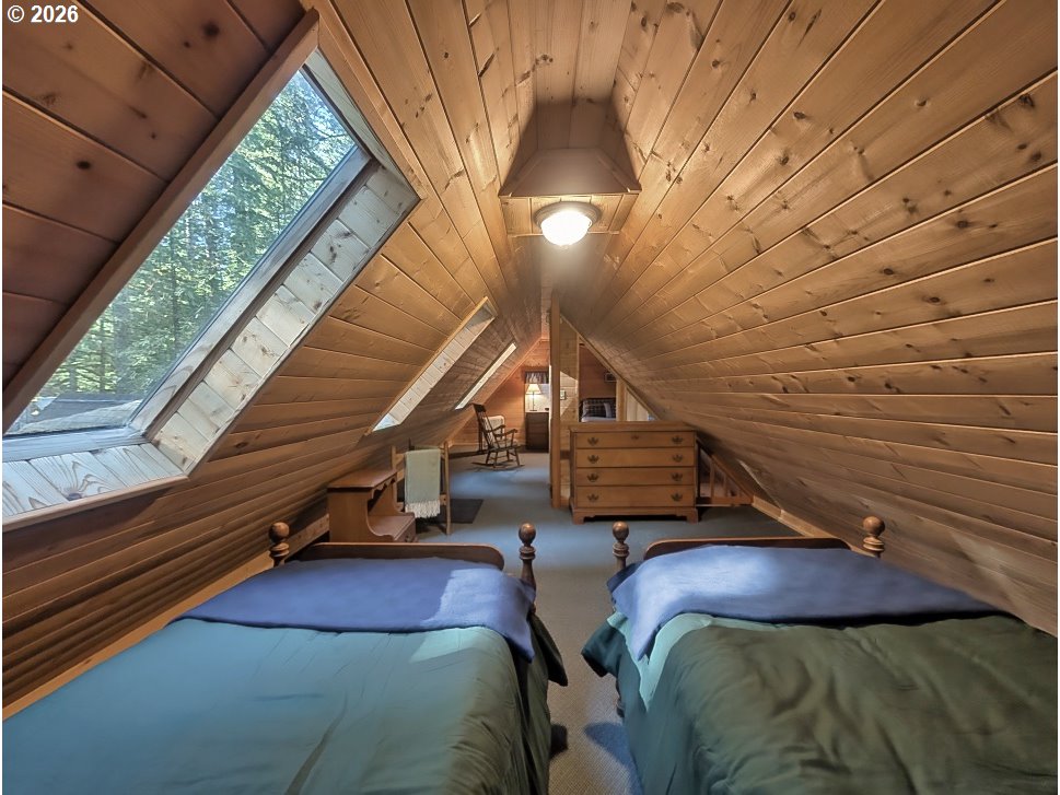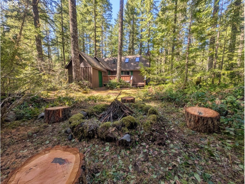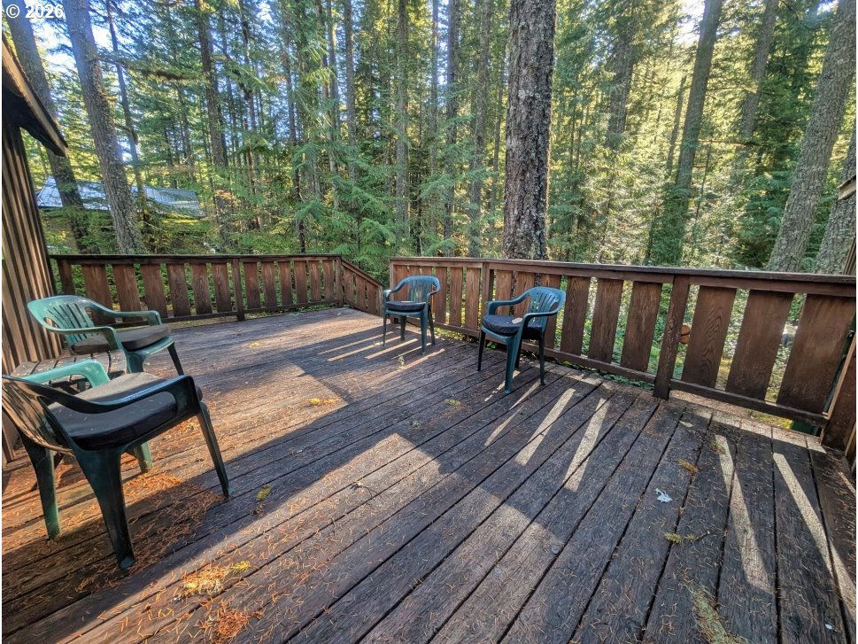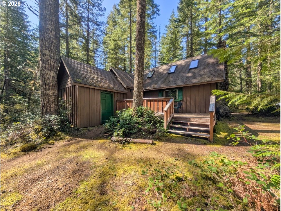Charming three bedroom cabin near Camp Creek and only six minutes to Government Camp! Get ready for summer time with this affordable mountain basecamp for fun.The main level features a cozy beamed knotty pine living room with a wood stove insert to warm up after a day on the slopes. Wood floors have been updated in the living room, with durable Marmoleum flooring in the kitchen and bath. One bedroom is on the main level, and upstairs you’ll find two vaulted sleeping areas with skylights for natural light. Sleeps eight! A convenient mudroom and attached storage shed add extra functionality, and the gated access provides privacy and security with plenty of parking. Located in the Mt. Hood National Forest on leased land, the cabin offers a pristine peaceful setting where you can hear Camp Creek from the back deck. Enjoy the forested surroundings and relax or barbecue in the summer months. Hiking and mountain biking are right out your front door, and coffee, groceries, and restaurants are just minutes away. A great bonus—road plowing in winter is coordinated by local cabin owners at an affordable cost. Owned by the same family for many years, this cozy retreat is ready for new memories. The perfect Mt. Hood getaway and just an hour from Portland!