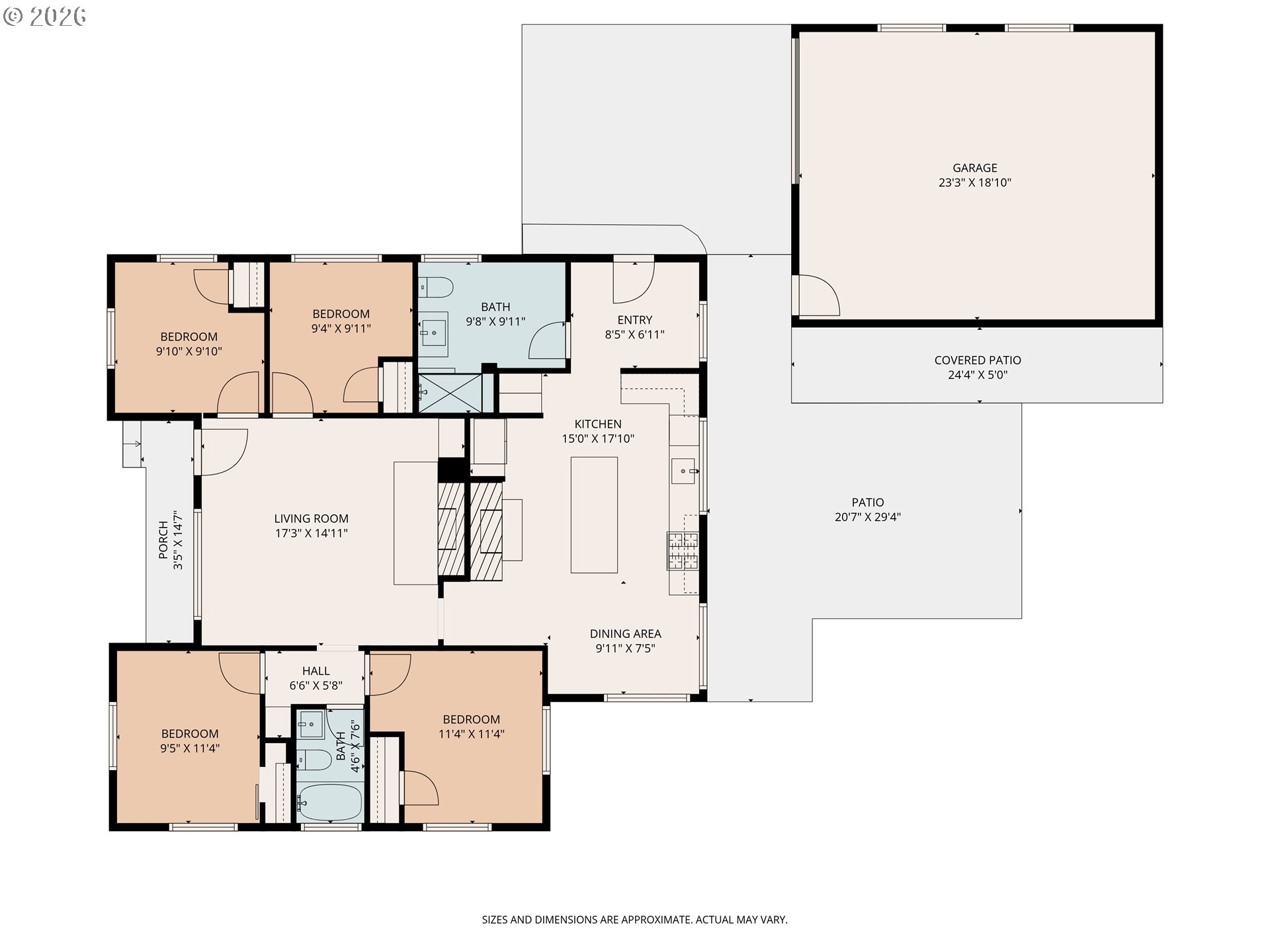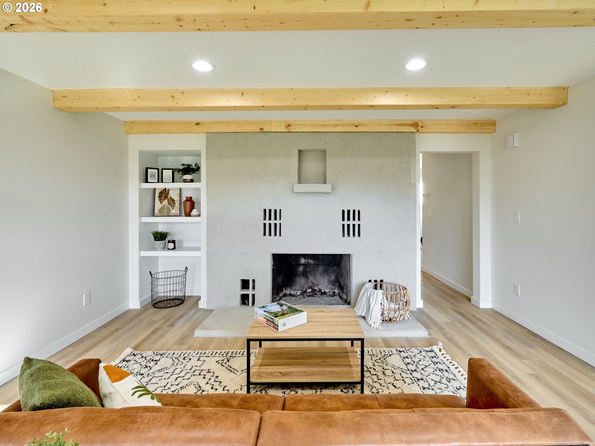 (503) 893-8874This exceptionally remodeled 4 bedroom single-level has so many features and upgrades that it's hard to keep track! Nearly everything inside has been redone. NEW: Electrical, plumbing, 96% efficiency forced-air furnace, tankless water heater, Milgard windows, brushed stainless steel kitchen appliances, luxury vinyl plank flooring throughout, large & vaulted island kitchen with quartz counters & tile backsplashes. Two fireplaces with stucco surrounds; full size in the living room and a smaller decorative fireplace in the kitchen. Open-beam ceiling and glass-paneled solid wood entry door in living room. One bathroom has an oversized tub with shower; the other has a large tiled shower. Both bathrooms have engineered stone counters on their sink vanities. Brand new 30-year composition roof, huge lot (.4 acre), with both front & back yards fenced. Oversized single garage measures 23' x 19' inside, with new doors & a new opener.