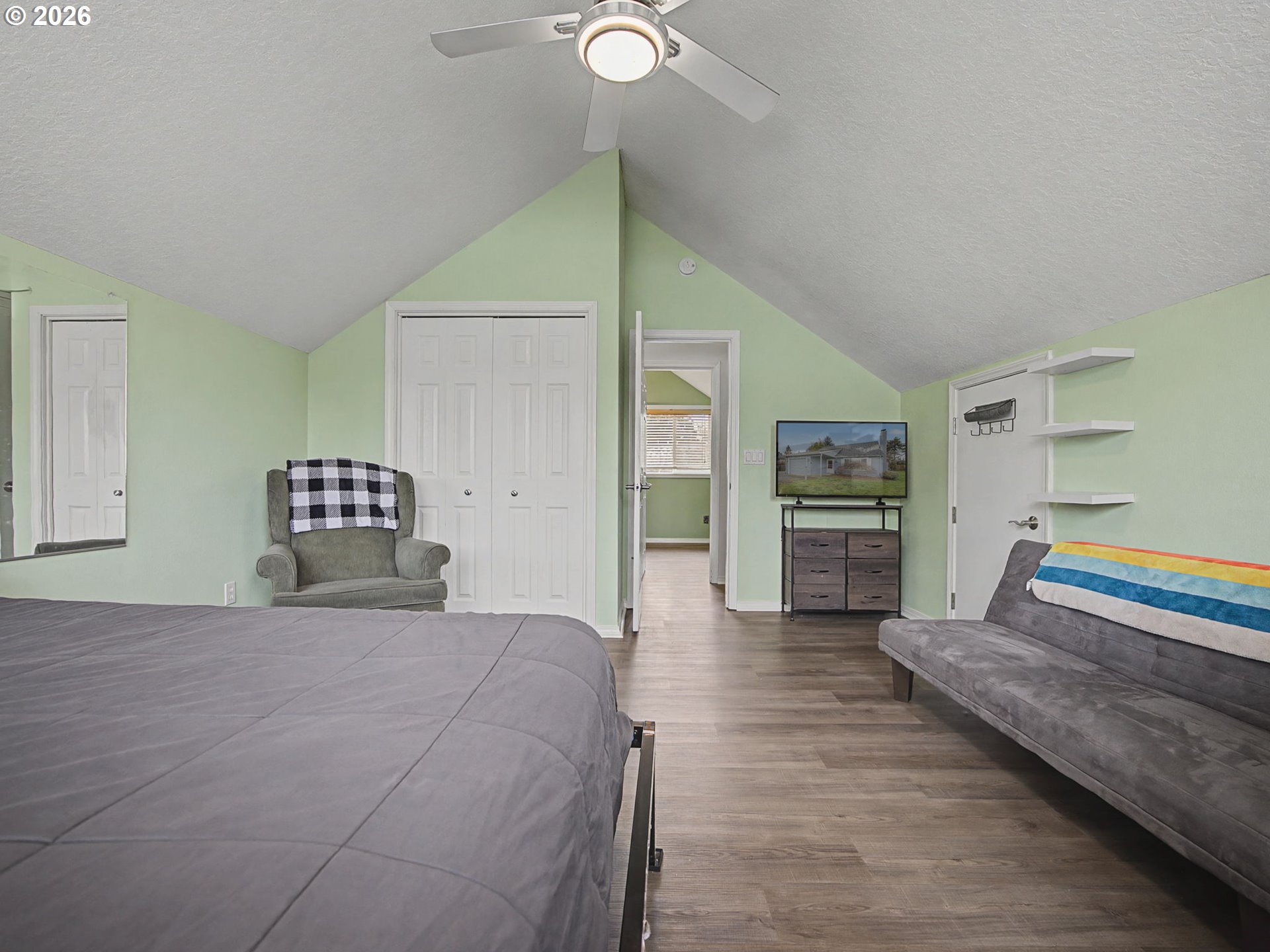 Tucked away down a quiet driveway on a generous lot, this light-filled home offers both privacy and comfort in a fantastic location. The inviting living room has vaulted ceilings, a cozy fireplace, and abundant natural light that creates a warm, welcoming atmosphere. The main-level primary bedroom features a spacious walk-in closet for easy living, while upstairs you’ll find two large bedrooms with vaulted ceilings and a full bath, perfect for guests, work-from-home space, or hobbies. Step outside and you’ll find a beautifully landscaped yard designed for relaxation, morning coffee in the fresh air, summer dinners under the covered patio, nights around the fire pit, and space to garden, play, or unwind. Also included are 10 different types of fruit and berry plants and trees that have already been established! A craftsman tool shed keeps everything organized so the outdoor space can continue to shine. Recent updates are interior paint, new LVP flooring, new kitchen quartz counter tops, and new dishwasher. New roof installed in 2021. Conveniently located near freeway access, parks, schools, shopping, and dining. This home truly combines comfort, updates, and location. A must see!