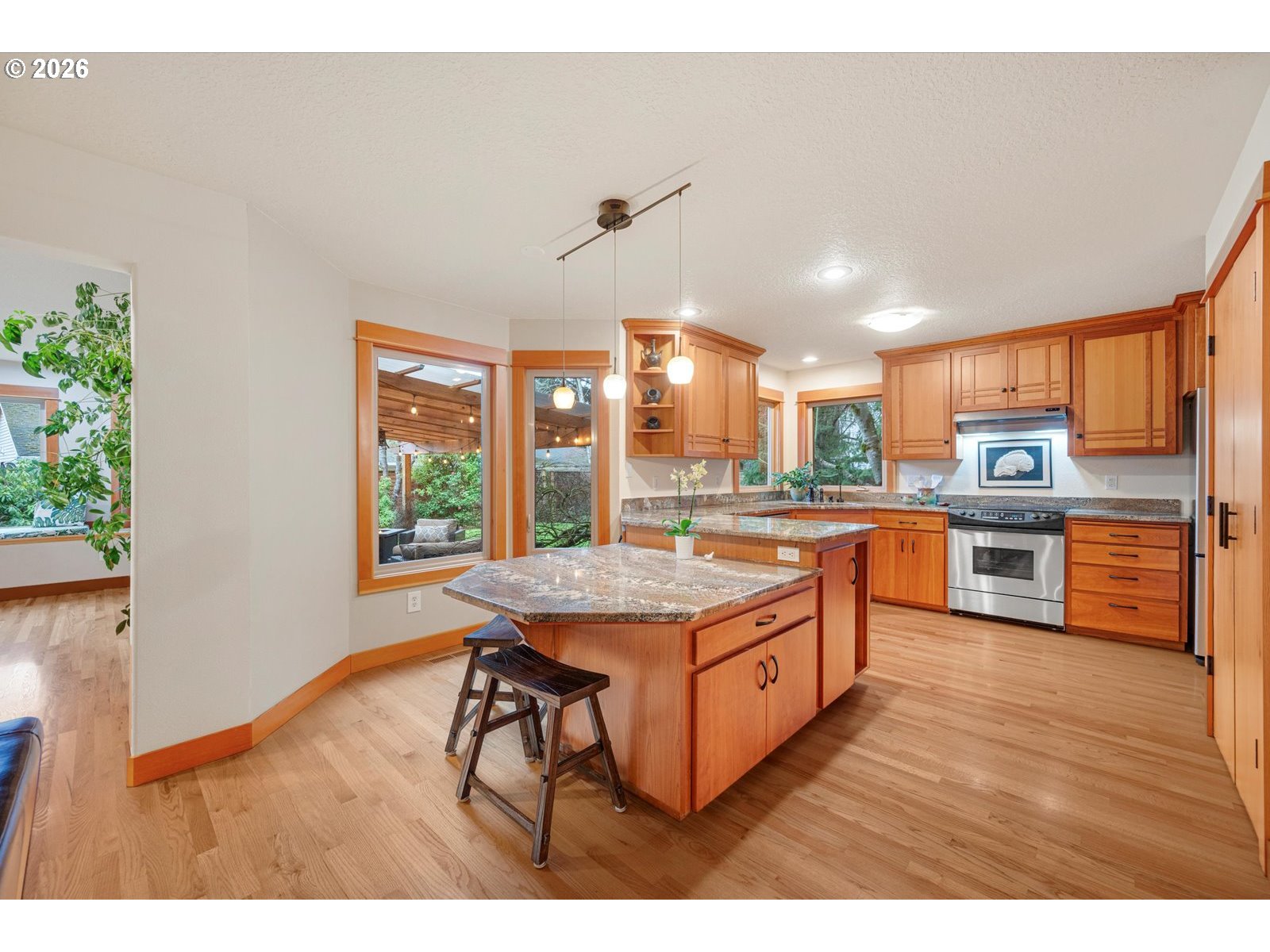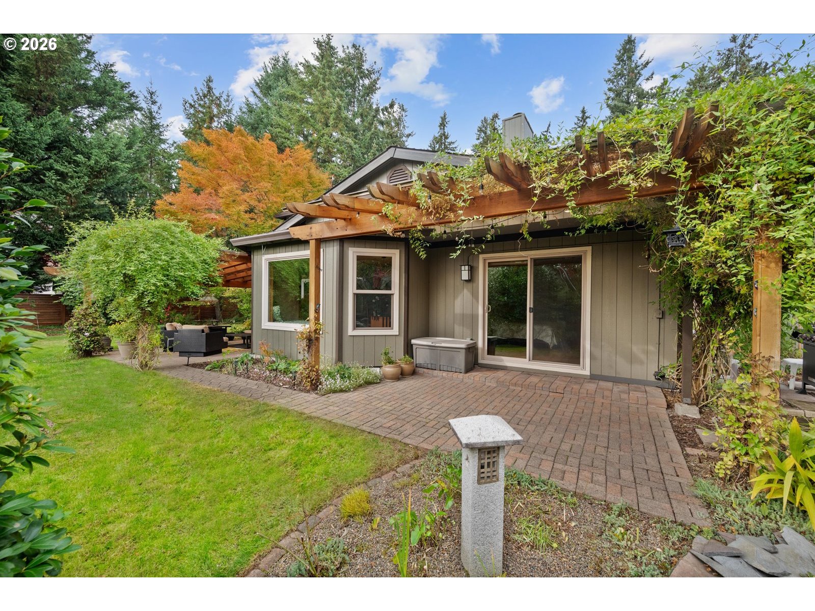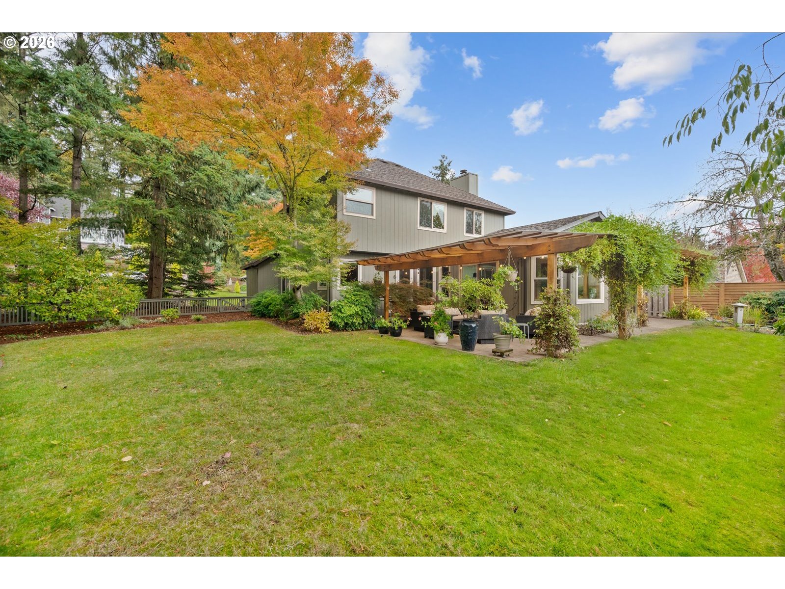 This expansive two-story residence offers a refined lifestyle with a primary suite on the main level and an additional ensuite upstairs. A significant renovation enhanced the interior with 1,700 square feet of rich hardwood flooring and exquisite custom woodwork, including solid Simpson doors and granite surfaces throughout. Flexible living spaces easily adapt into a home office or gym to suit your needs. Outside, two covered patios and pergolas overlook a private, 10,000-square-foot fenced lot featuring mature landscaping and a pond. Just seconds from the Willamette River trails and Memorial Park, this home perfectly balances luxury with immediate access to outdoor adventure.