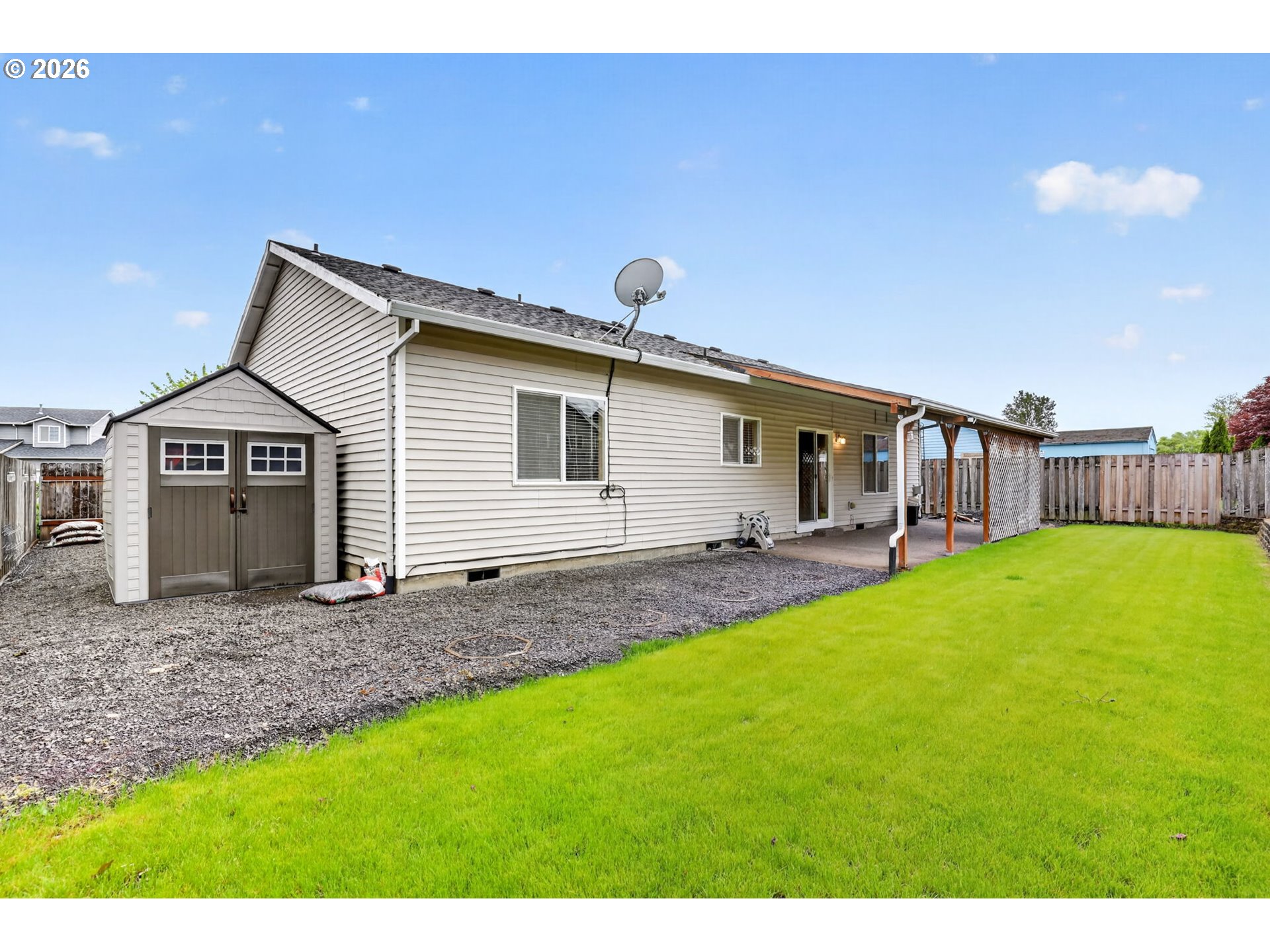 Welcome home to easy, one-level living—perfect for first-time buyers looking for a smart start or those ready to simplify and enjoy a more comfortable lifestyle. With no stairs and a thoughtful layout, this home is designed to make everyday living feel effortless from the moment you walk in.The open-concept living, dining, and kitchen area creates a warm, connected space that’s ideal for everything from quiet nights at home to hosting friends and family. There’s plenty of room to spread out without feeling disconnected, making it easy to live, relax, and entertain all in one place.The bedrooms are generously sized and thoughtfully placed to offer privacy and flexibility—whether you need space for a growing family, visiting guests, or a dedicated home office. Wide hallways and step-free access throughout the home add an extra layer of comfort and convenience, making it a great fit for any stage of life.Natural light fills the home, creating a bright and welcoming atmosphere you’ll love coming back to every day. Step outside to a covered outdoor space that’s perfect for relaxing, letting kids or pets play, or enjoying low-maintenance outdoor living without the hassle. RV or boat parking all in a quiet cul-de-sac. Whether you’re buying your first home or looking to downsize without sacrificing comfort, this home offers the perfect balance of simplicity, functionality, and ease—so you can focus on what matters most.This is the lowest priced 3 bedroom, 2 full bath home with a 2 car garage in Molalla. Don't miss your chance to see it so come to the open house on Saturday April 25th from 11:00-1:00pm