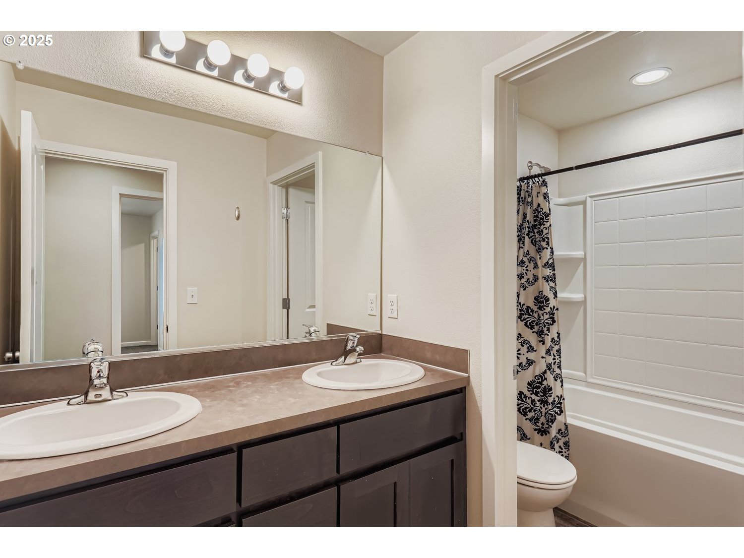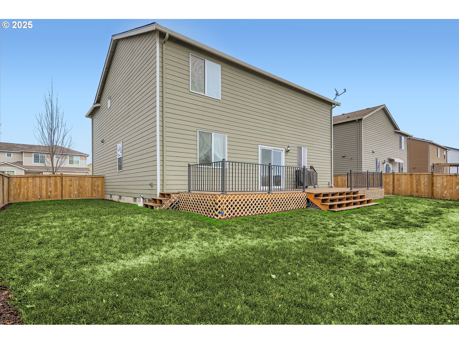This beautiful home is exceptionally well-maintained and up-to-date. The open kitchen features spacious countertops and an island that seamlessly connects to the dining and living room areas, creating an inviting space for entertaining. A large walk-in pantry is conveniently located between the attached garage and the kitchen. A guest bedroom and full bathroom are situated on the first floor. The upstairs primary suite boasts dual sinks, a separate tub and shower, and a walk-in closet. Some of the other bedrooms also have walk-in closets, providing additional storage space. An upstairs bonus room offers even more room for play, exercise, or entertaining. The landscaped backyard features a spacious deck, perfect for relaxation and outdoor activities.