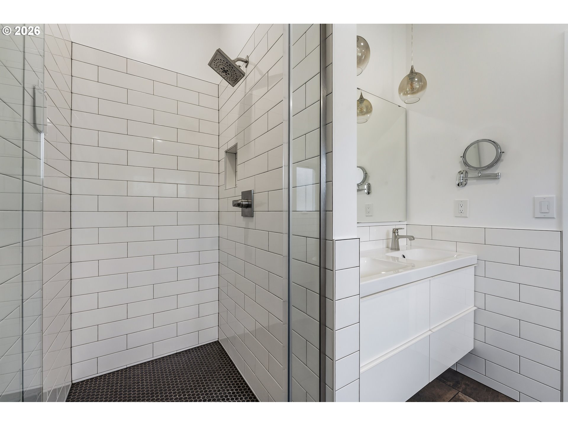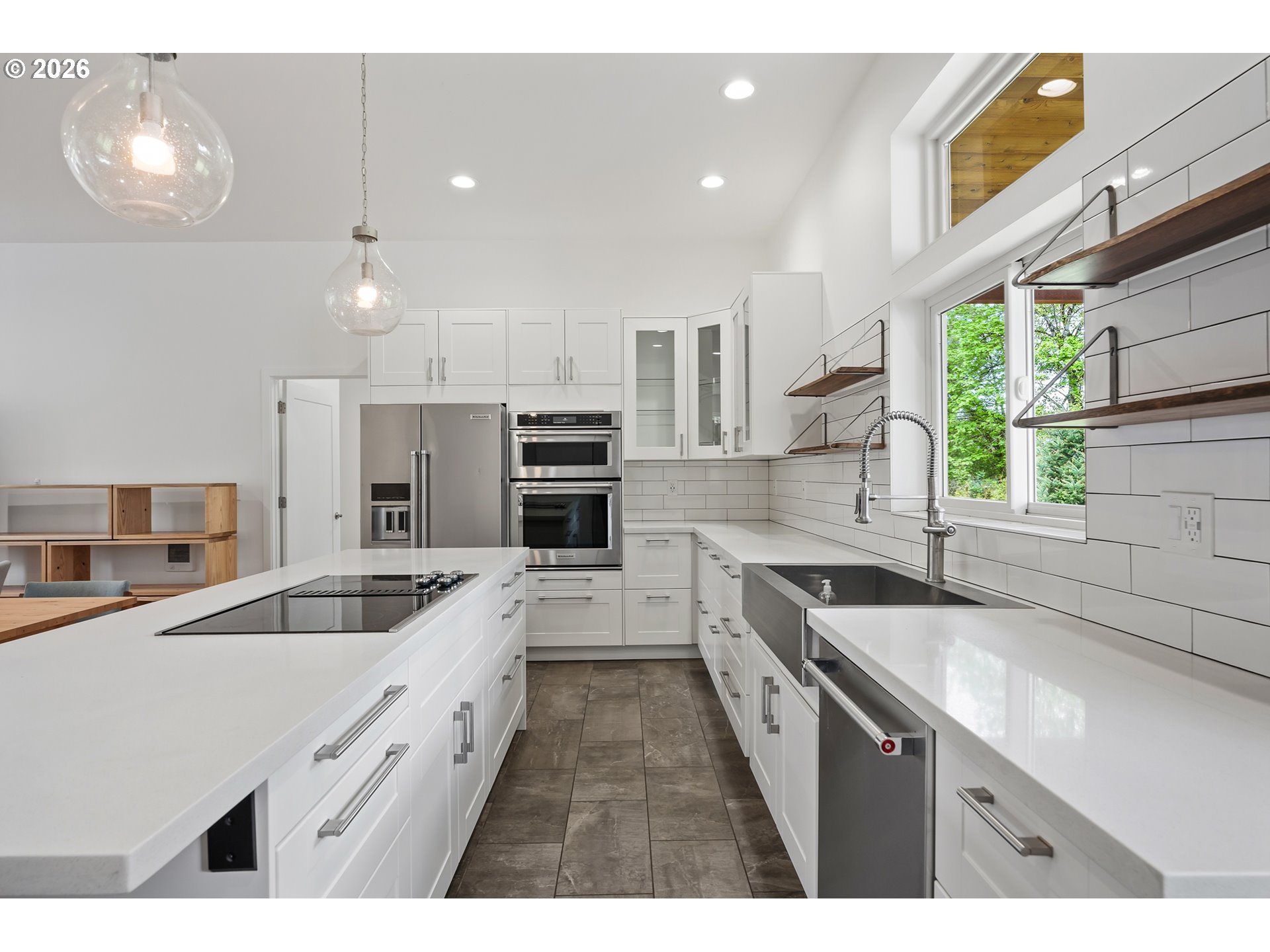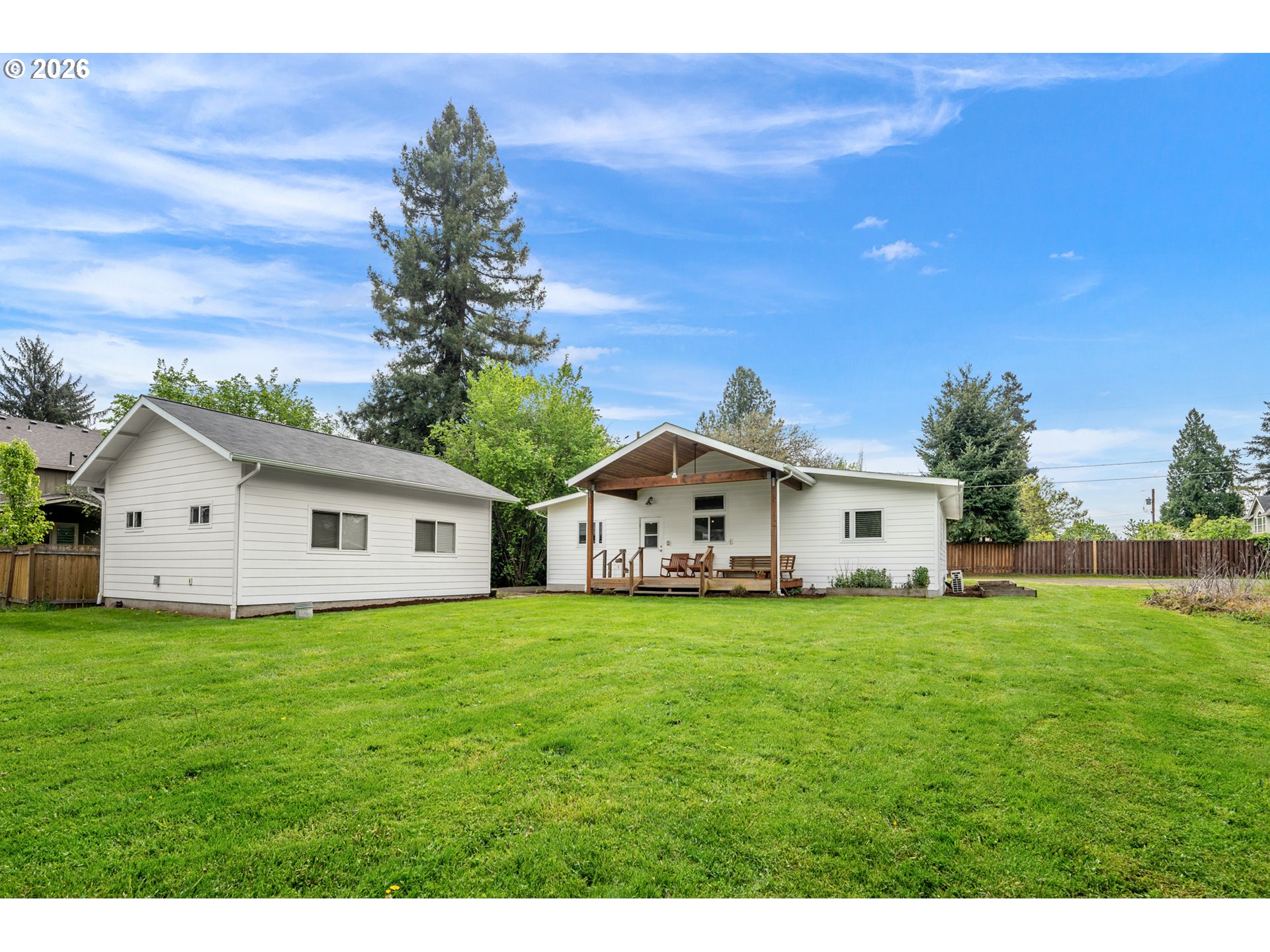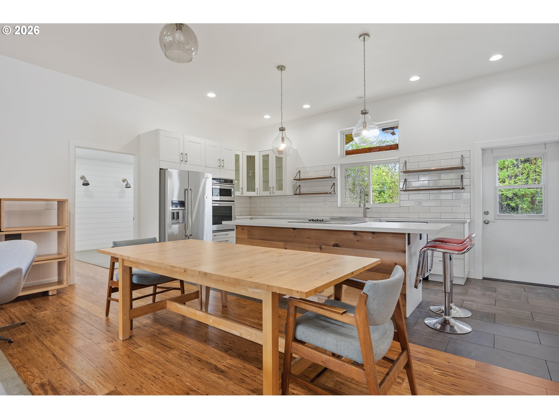 Light, bright, and beautifully open, this modern Scandinavian-inspired home offers coveted one-level living in a private, peaceful setting. Clean lines and warm wood tones balance with crisp white finishes to create an airy, soothing feel throughout—like a much-needed exhale at the end of a long day. Gorgeous eucalyptus hardwood floors run throughout, and high ceilings enhance the sense of space. Seamless flow connects the living, dining, and kitchen areas for easy entertaining. A large covered deck extends the living space outdoors for year-round al fresco dining or summer barbecues. Four bedrooms and three full bathrooms, including a spacious primary suite with spa-like bath, provide flexible spaces for work-from-home or multi-generational living. Abundant storage keeps everything tucked away, and a finished two-car garage—complete with recessed lighting, heat, and a ceiling fan—offers room for vehicles & recreation gear, or use as a workshop, art studio, or exercise space. An oversized 7,000+ square foot lot with plenty of sunshine will delight the urban gardener, and a large backyard with tranquil natural views offers plenty of room for relaxation or play. A secluded, country-like feel, yet just moments from great Woodstock and Sellwood restaurants, shops, and amenities. The best of both worlds! Open Sat. 4/25 from 2-4pm.