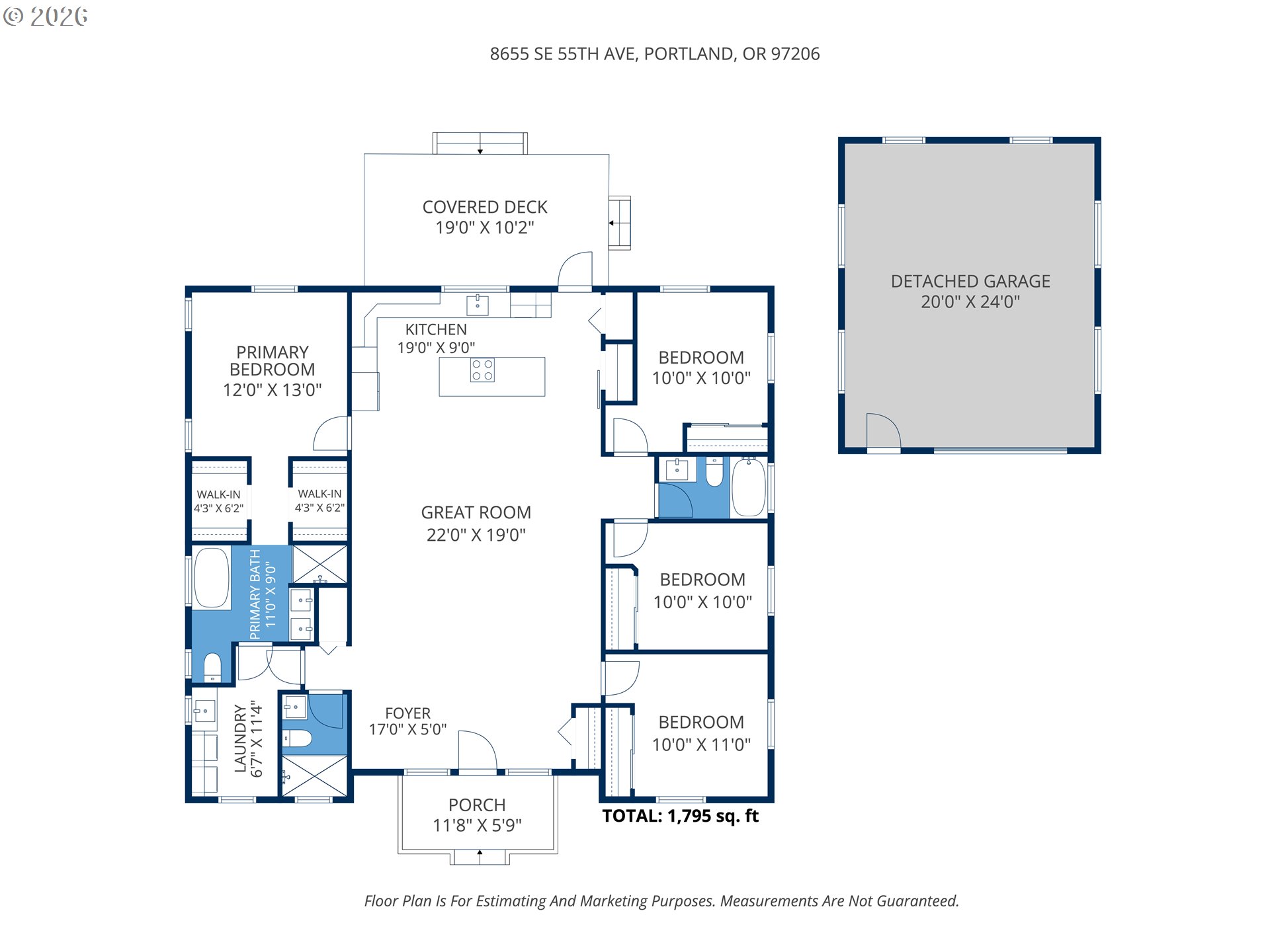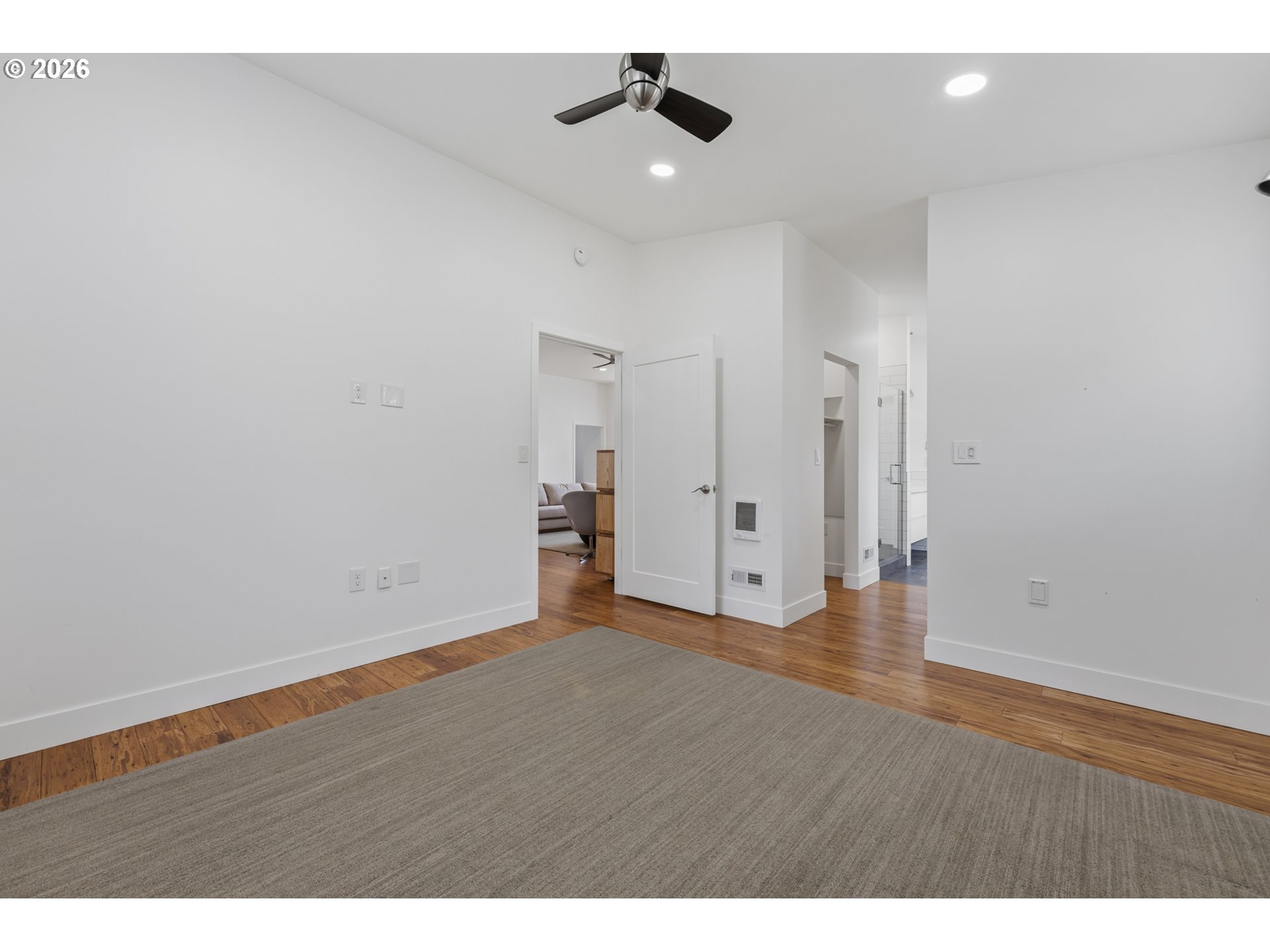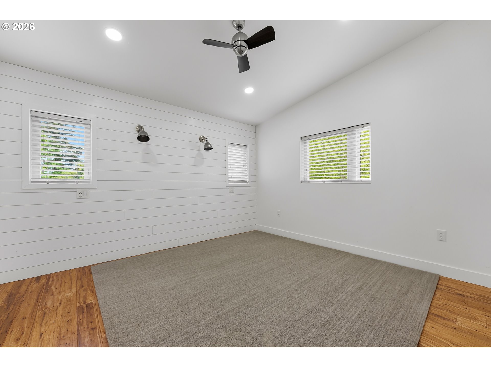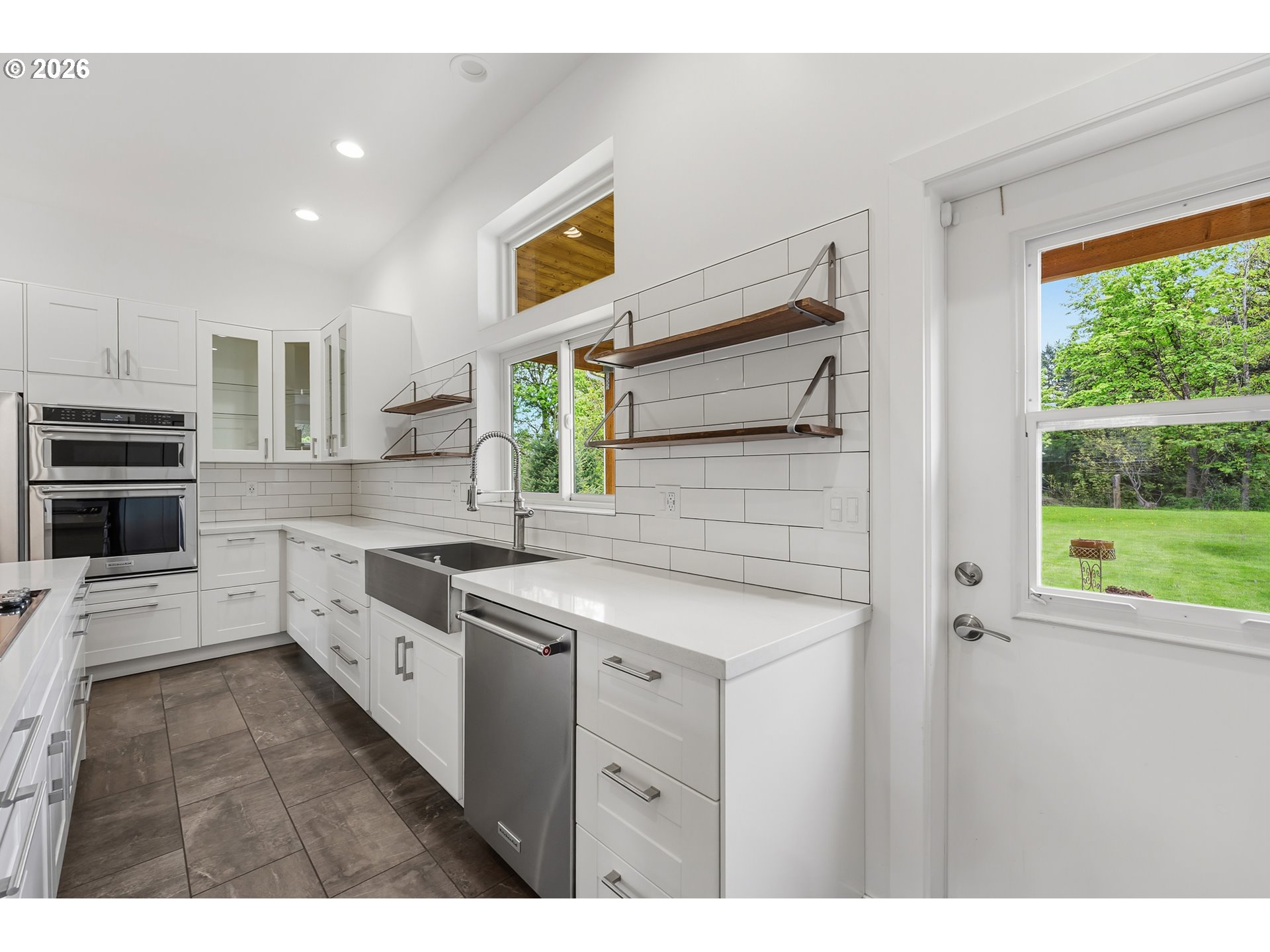 Light, bright, and beautifully open, this modern Scandinavian-inspired home offers coveted one-level living in a private, peaceful setting. Clean lines and warm wood tones balance with crisp white finishes to create an airy, soothing feel throughout—like a much-needed exhale at the end of a long day. Gorgeous eucalyptus hardwood floors run throughout, and high ceilings enhance the sense of space. Seamless flow connects the living, dining, and kitchen areas for easy entertaining. A large covered deck extends the living space outdoors for year-round al fresco dining or summer barbecues. Four bedrooms and three full bathrooms, including a spacious primary suite with spa-like bath, provide flexible spaces for work-from-home or multi-generational living. Abundant storage keeps everything tucked away, and a finished two-car garage—complete with recessed lighting, heat, and a ceiling fan—offers room for vehicles & recreation gear, or use as a workshop, art studio, or exercise space. An oversized 7,000+ square foot lot with plenty of sunshine will delight the urban gardener, and a large backyard with tranquil natural views offers plenty of room for relaxation or play. A secluded, country-like feel, yet just moments from great Woodstock and Sellwood restaurants, shops, and amenities. The best of both worlds! Open Sat. 4/25 from 2-4pm.