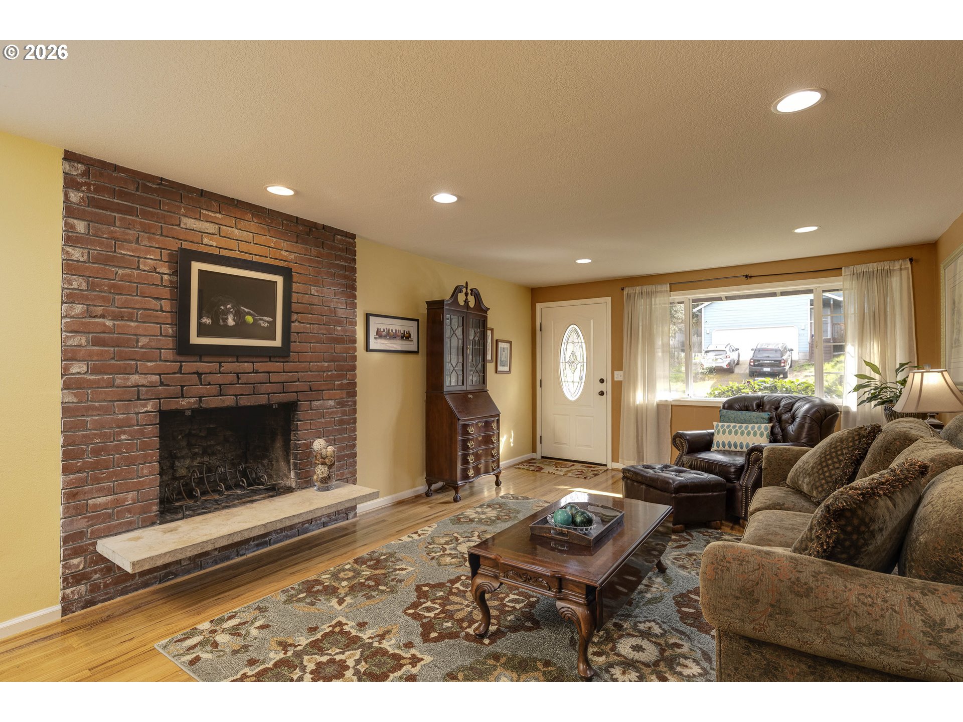Welcome home! This move in ready home in a sweet neighborhood is larger than it looks! With 2270 square feet on 2 levels there is plenty of room for everyone and everything. Original hardwood floors on main level, which also includes 3 bedrooms and a full bath. Kitchen/Dining combo has tile floor, stainless appliances including fridge, portable island, granite counters, large wall pantry. Daylight lower level offers potential separate living space with 2 bedrooms, full bathroom with handicap accessible shower (zero curb), family room and 2 bonus areas (office? dining area? exercise space?) and slider to fenced back yard and patio. Two wood burning fireplaces are ready for liner and easy to convert to gas. Washer and dryer are also included. Side yard has room for RV parking or extra parking for guests or lower level occupants. [Home Energy Score = 4. HES Report at https://rpt.greenbuildingregistry.com/hes/OR10246113]
