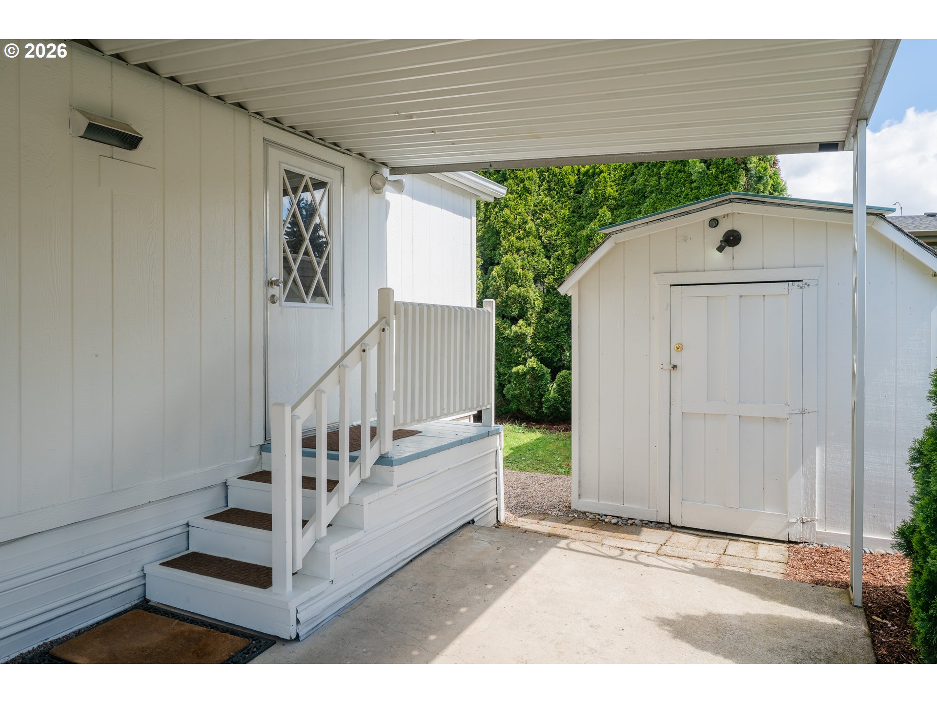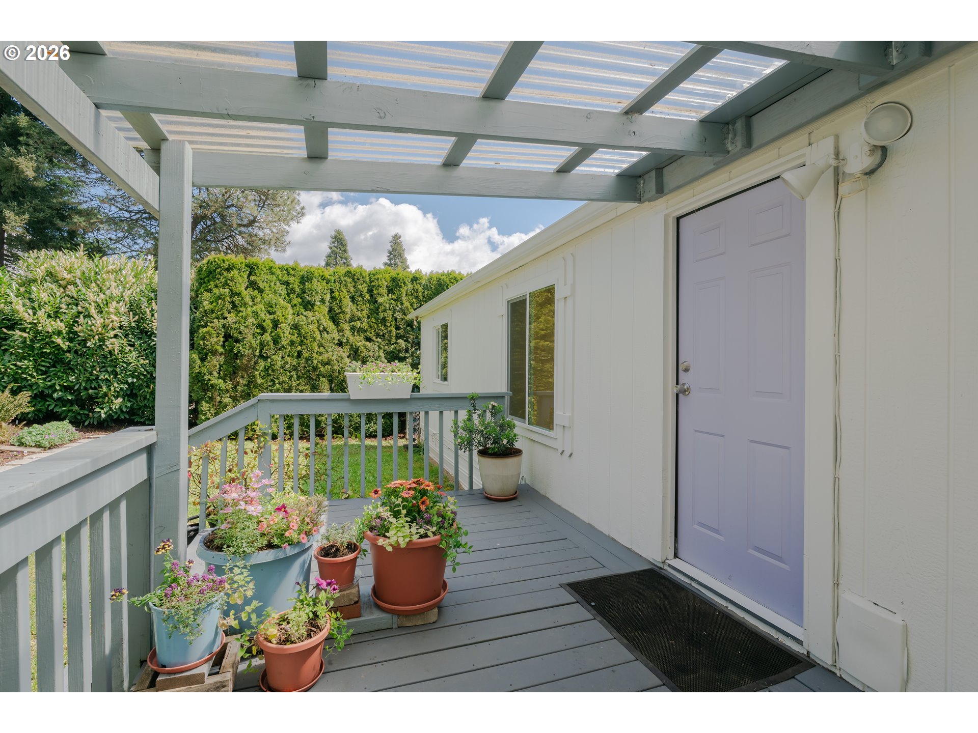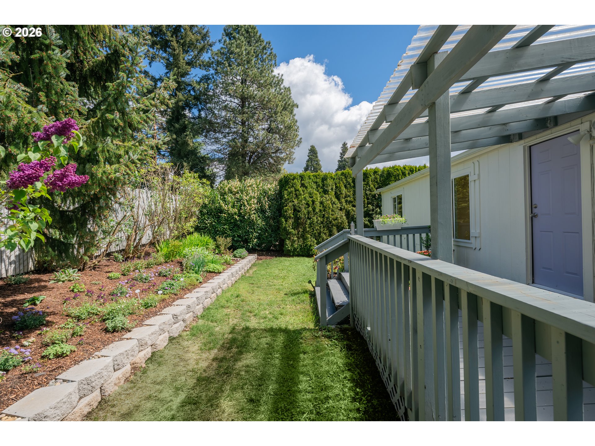 This 3bdrm/2bath manufactured home has one of the best spots in the entire park! This move-in ready home has been meticulously maintained and has new top-of-the-line pex plumbing and a newer Smart System HVAC that offers efficient heating & cooling. This home is light and bright and feels so spacious with it's vaulted ceilings and 2 skylights. The primary bedroom has a vaulted ceiling, a walk-in closet and ensuite bath with dual sinks. Two other bedrooms and a second full bath give you plenty of space. Outside there is a nice deck to relax or enjoy your morning coffee in your fenced private backyard while enjoying your own private little oasis. The beautiful yard is a gardener's paradise and features a brand new retaining wall with freshly planted flowers like sweet alyssum, star jasmine, peonies, beautiful ferns, pink lilac trees, butterfly bushes, skip laurels, and many other established perennials and shrubs for spring through summer enjoyment.