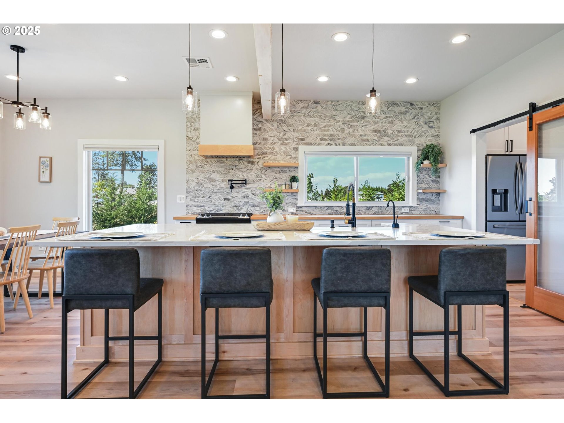 (503) 893-8874An inspired modern farmhouse, this Molalla residence masterfully blends the character of its 1910 origins with the sophistication of a full, down-to-the-studs renovation. Every detail has been reimagined with intention — from new electrical and plumbing systems to carefully curated finishes that balance contemporary design with timeless appeal.The heart of the home is an airy, open-concept living, dining, and kitchen space anchored by custom cabinetry, quartz surfaces, and a thoughtfully designed pantry offering additional prep space. Light flows effortlessly through the interiors, highlighting clean lines and natural textures. A generous mudroom and laundry room enhance everyday function with style.The primary suite is a private retreat, featuring a spa-inspired bath with a glass-framed shower and a luxurious soaking tub. Two additional bedrooms complete the main residence, offering comfort and versatility.Set on one acre, the grounds include raised garden beds, a chicken coop, and an oversized two-bay shop with guest quarters, office, and a lofted storage space — an ideal balance of utility and design. This is not simply a remodel; it is a reinvention of farmhouse living, where historic charm and modern craftsmanship converge.