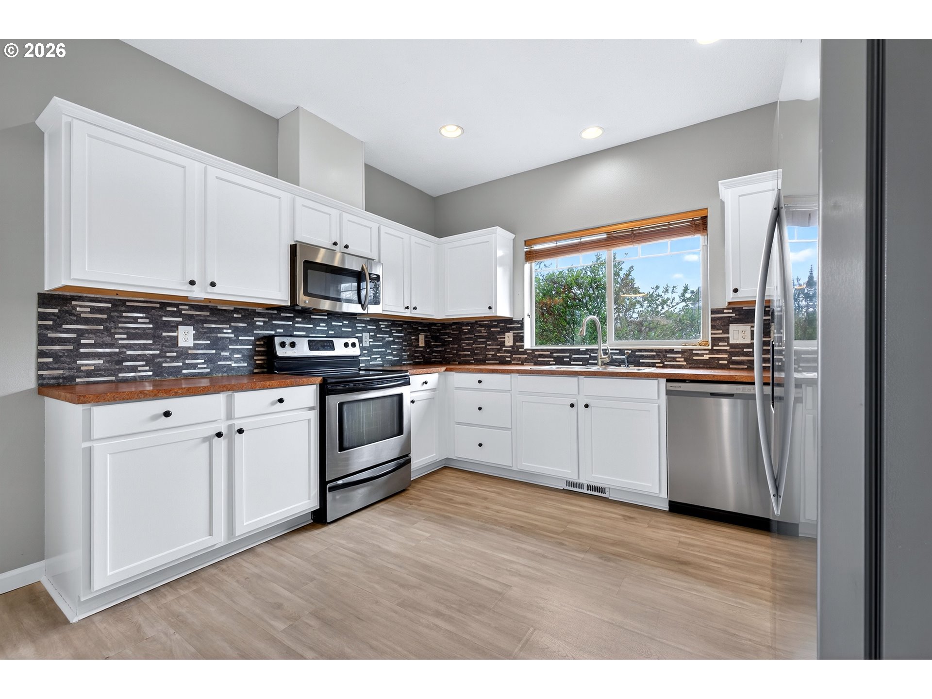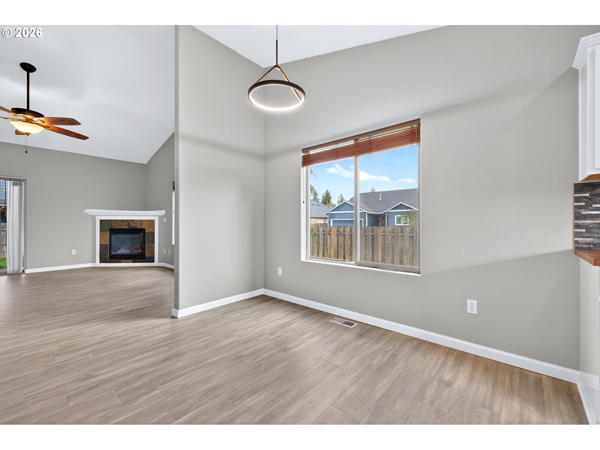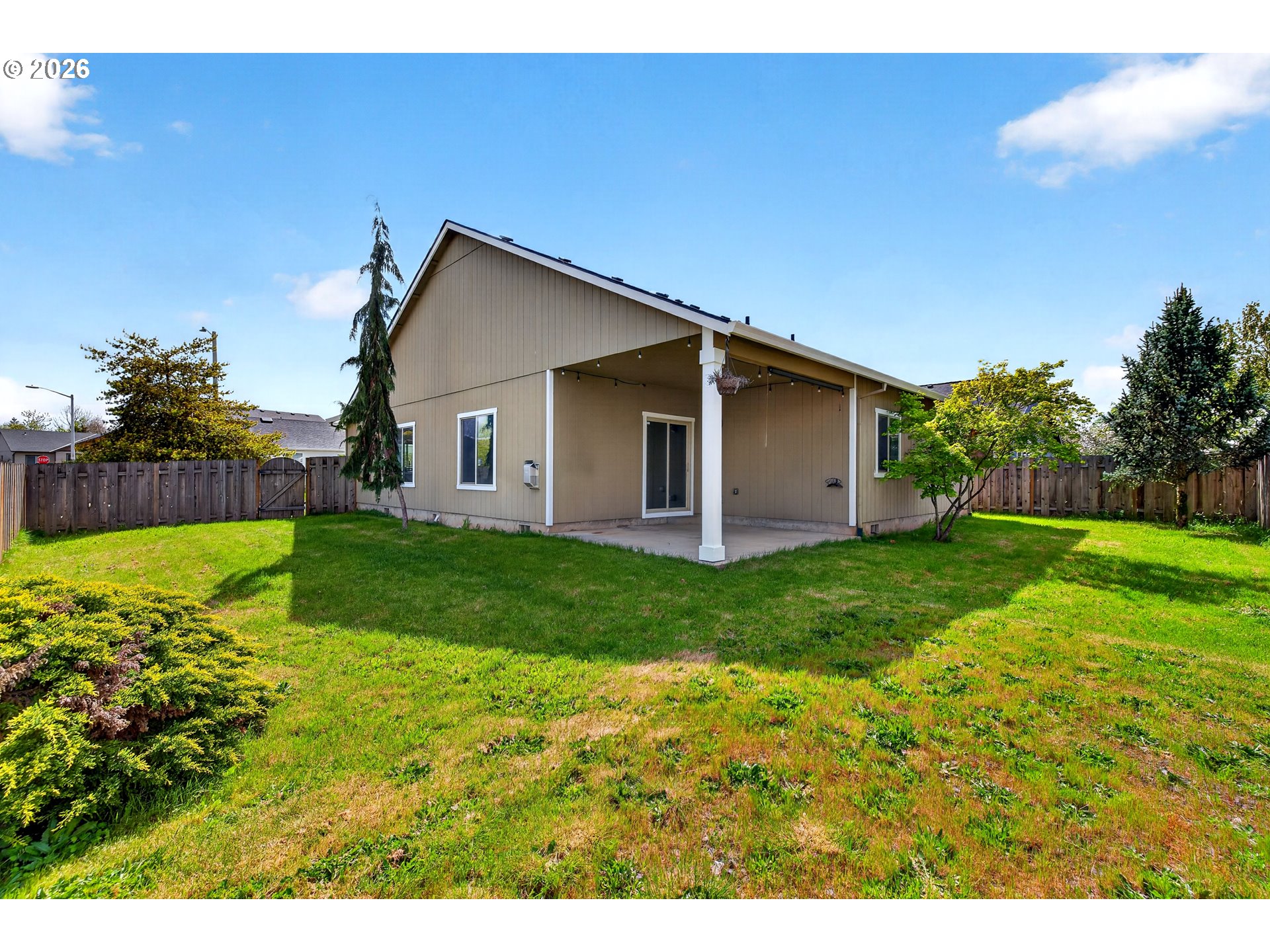 Welcome to this move-in ready 3-bedroom, 2-bath home in Molalla, where thoughtful updates and easy livability come together beautifully. The bright open-concept floor plan features vaulted ceilings and a cozy gas fireplace, creating an inviting setting for both everyday comfort and effortless entertaining. The kitchen offers fresh updates, ample storage, stainless steel appliances, and a seamless connection to the main living area. The spacious primary suite includes vaulted ceilings, a walk-in closet, and a private bath, while two additional bedrooms provide flexible space for guests, a home office, or hobbies. Outside, enjoy a fully fenced backyard with a large covered patio, ideal for year-round use. Additional highlights include new flooring, a new roof, a 2-car garage with extra storage, a 220V outlet, and a level lot tucked into a quiet neighborhood near parks, schools, and town amenities. Clean, functional, and turnkey—this home stands out.