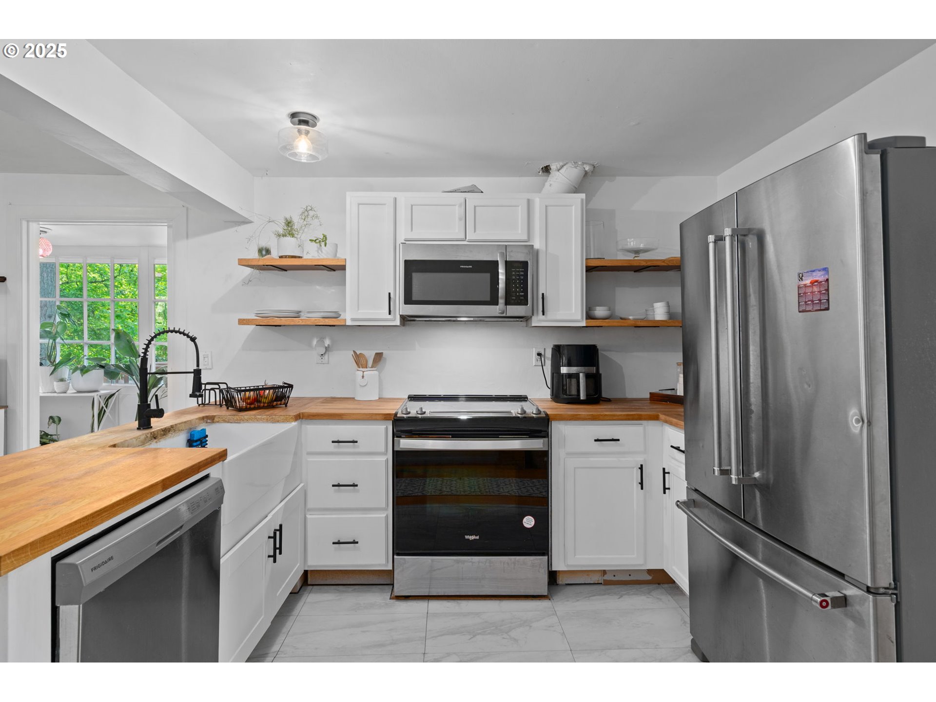Dishwasher, FreeStandingRange, FreeStandingRefrigerator, Microwave, PlumbedForIceMaker, RangeHood, Stainle