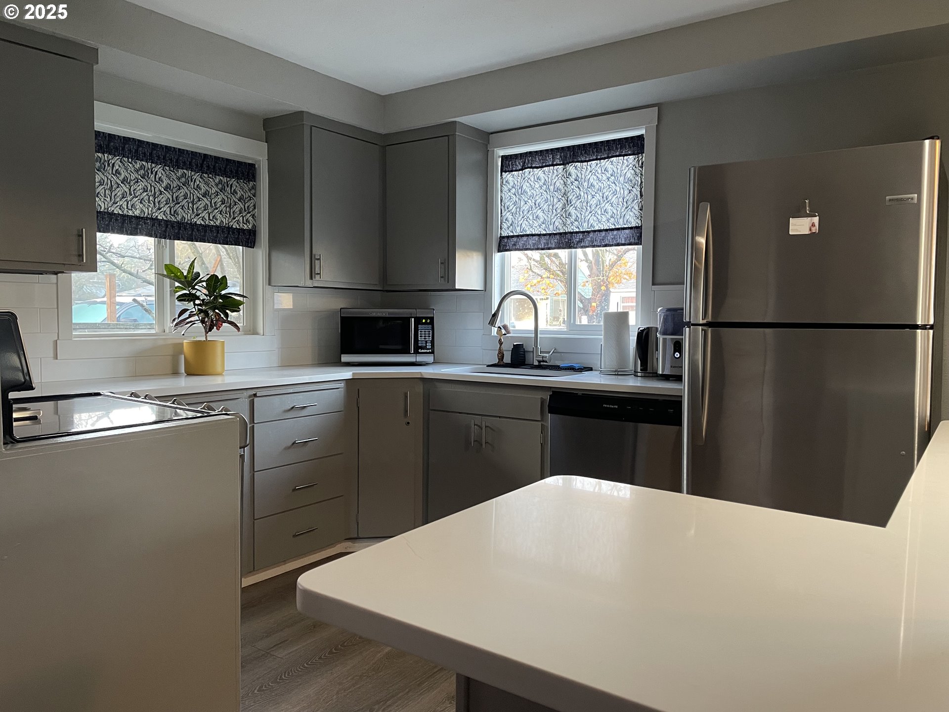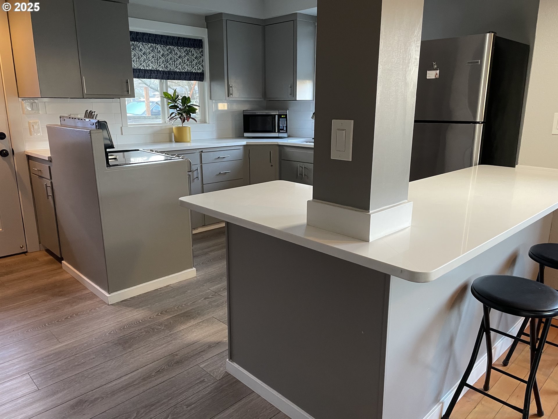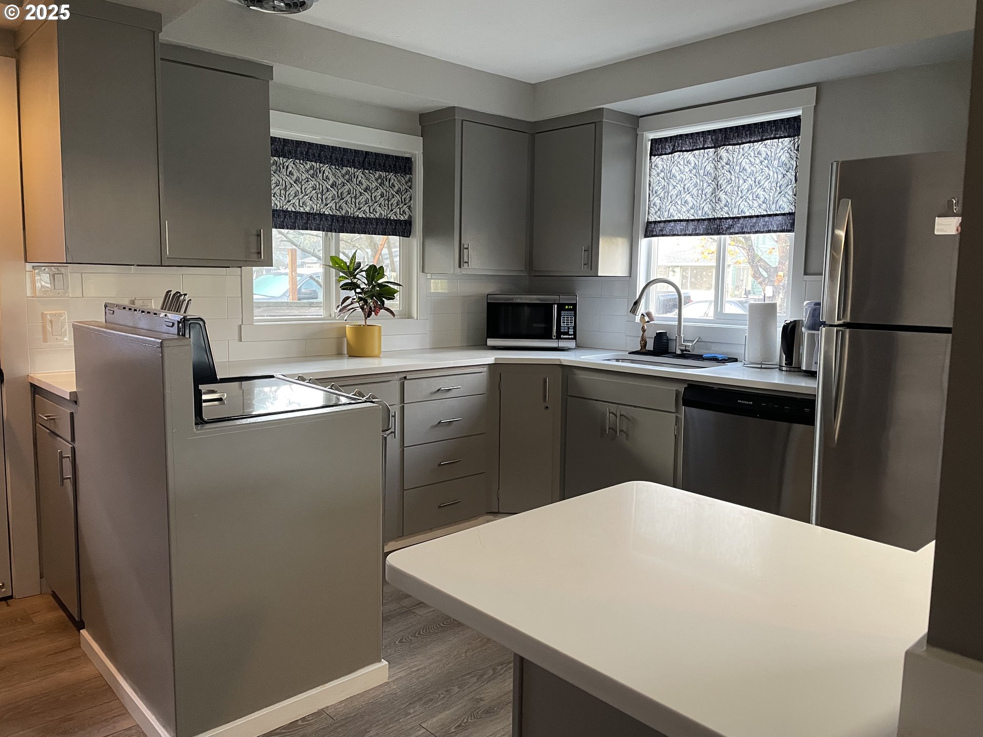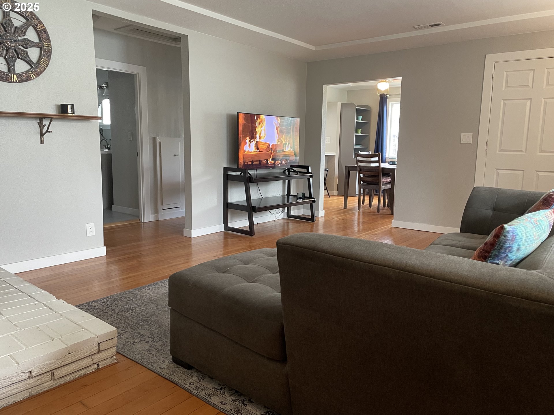 CHARMING, AFFORDABLE, AND NOW AT A BETTER PRICE! JUMP ON THIS MILWAUKIE GEM BEFORE ITS TOO LATE! Move in ready and climate controlled for year round comfort! Super cute and functional 3 bedroom, 1 bath bungalow features great room-to-room flow complemented by a one year old furnace, air conditioner, ductwork, attic insulation, and a digital programmable thermostat to keep you cool or cozy. This beautifully finished home has original hardwood floors throughout, with tiled bathroom floor and durable vinyl plank in the kitchen complementing the white granite countertops. All appliances stay including: refrigerator, convection oven, dishwasher, washer and dryer. As a bonus on cold winter nights gather around the central large brick hearth to light a fire from the fresh aged cedar firewood stacked out back. Step through the sliding patio door to your own oversized covered deck with cedar privacy wall leading to a Tuff Shed with workbench and a fully fenced yard. Out front there is a covered porch, easy to maintain yard and parking pad for two, leading you into one of the most convenient neighborhoods in the SE, with food and shopping around every corner including 8 minutes to Costco, walking distance to Trader Joe’s and around the corner from Green line and I-205!