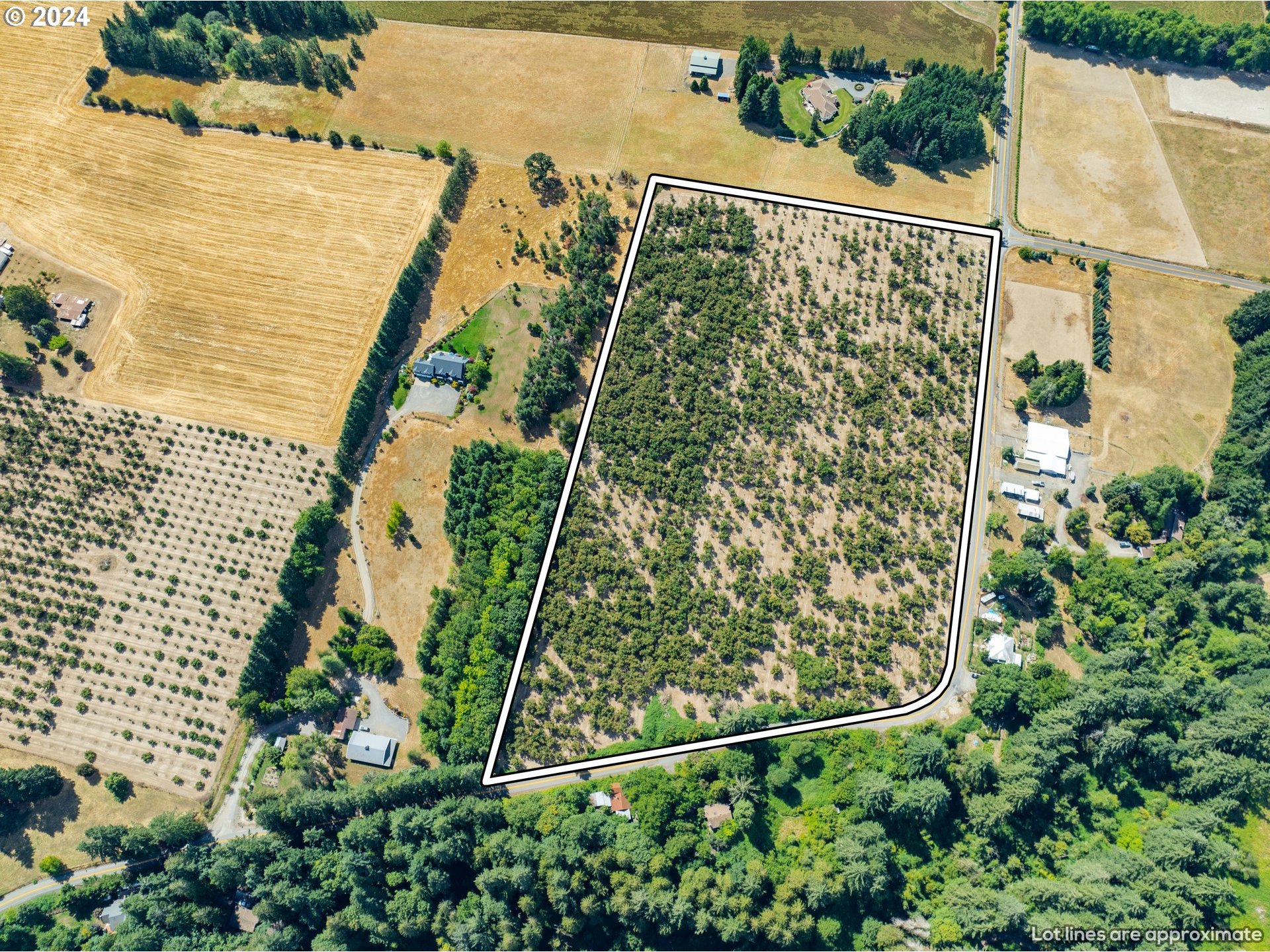 Prime Farmland with Established Hazelnut Orchard – 19.97 Acres Total. Opportunity awaits with this income-producing farm featuring two parcels. These properties are near the urban growth boundary making them an excellent choice for both immediate income and long-term growth possibilities. Property Highlights: Parcel 1 is 7 acres of fertile farmland with mature hazelnut trees. Parcel 2 is: 12.97 acres, also planted with established hazelnut trees. Current development opportunities could be Agricultural building, Equestrian Facilities, arena, stabling or training equines including but not limited to providing riding lessons, training clinics and schooling shows. Buyer to perform due diligence on zoning and the possibility of splitting lots or other development opportunities. These parcels offer a serene rural setting while offering easy access to urban amenities. Additional Information: Lot map available upon request. Contact listing agent for more details.