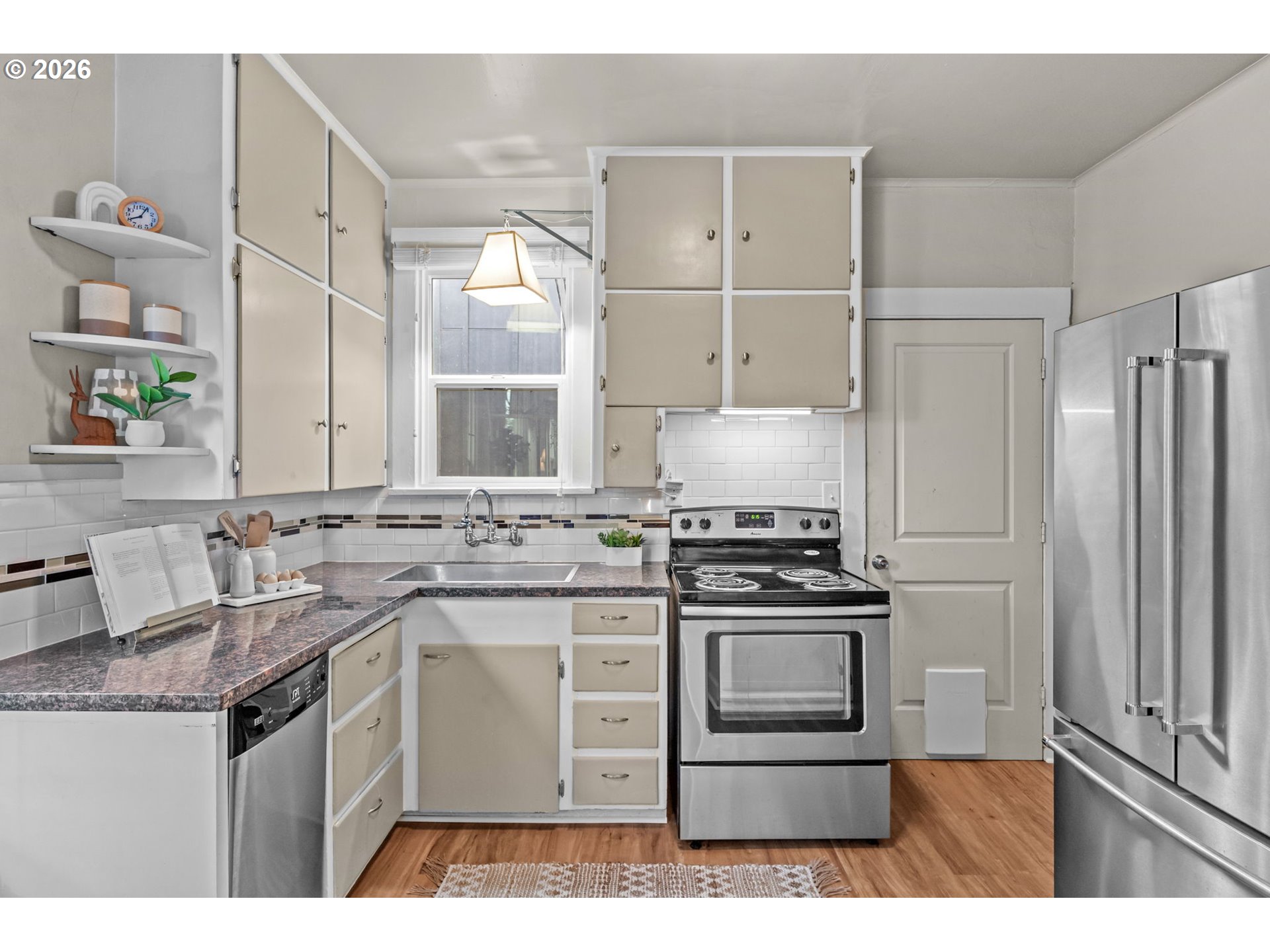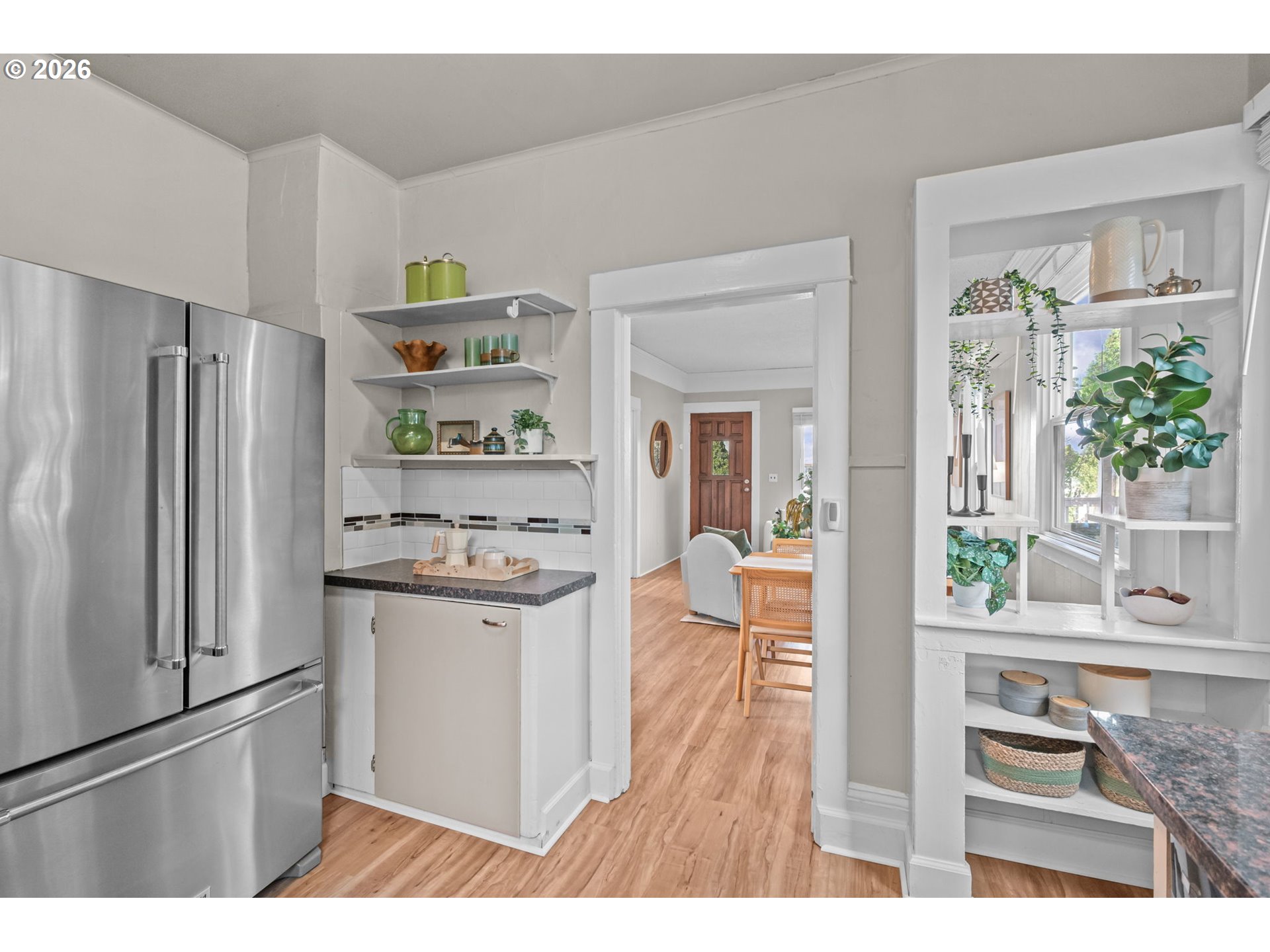 Situated just above the hill from booming downtown Oregon City, this charming home offers a rare opportunity to own a piece of history while saving significantly on your monthly payment thanks to incredibly low property taxes of just $817 annually (an average savings of $200–$300 per month).Step inside to soaring ceilings and a bright, open-concept layout where the living, dining, and kitchen spaces flow seamlessly together. Natural light pours through energy-efficient double-pane windows, creating an uplifting atmosphere throughout the home. From the inviting elevated front porch to the open-air shelving and charming cabinetry, character shines at every turn.Thoughtful updates include durable fiber cement siding, a new 200Amp electric panel, an efficient mini-split system with heating and cooling, and raised garden beds ready for your green thumb. A dedicated laundry room that doubles as a mudroom adds everyday convenience.Zoned MUC1, this property offers exceptional flexibility, perfect for a home-based business, creative studio, or a savvy investment in a rapidly growing area. Join us for an open house this Saturday from 11AM-3PM!