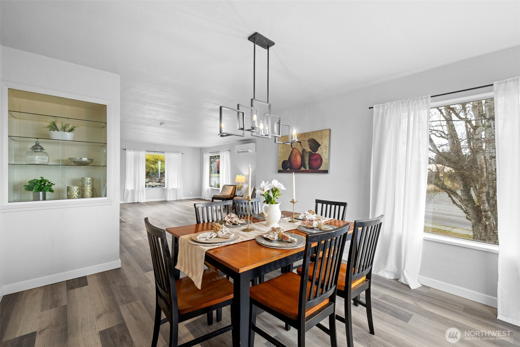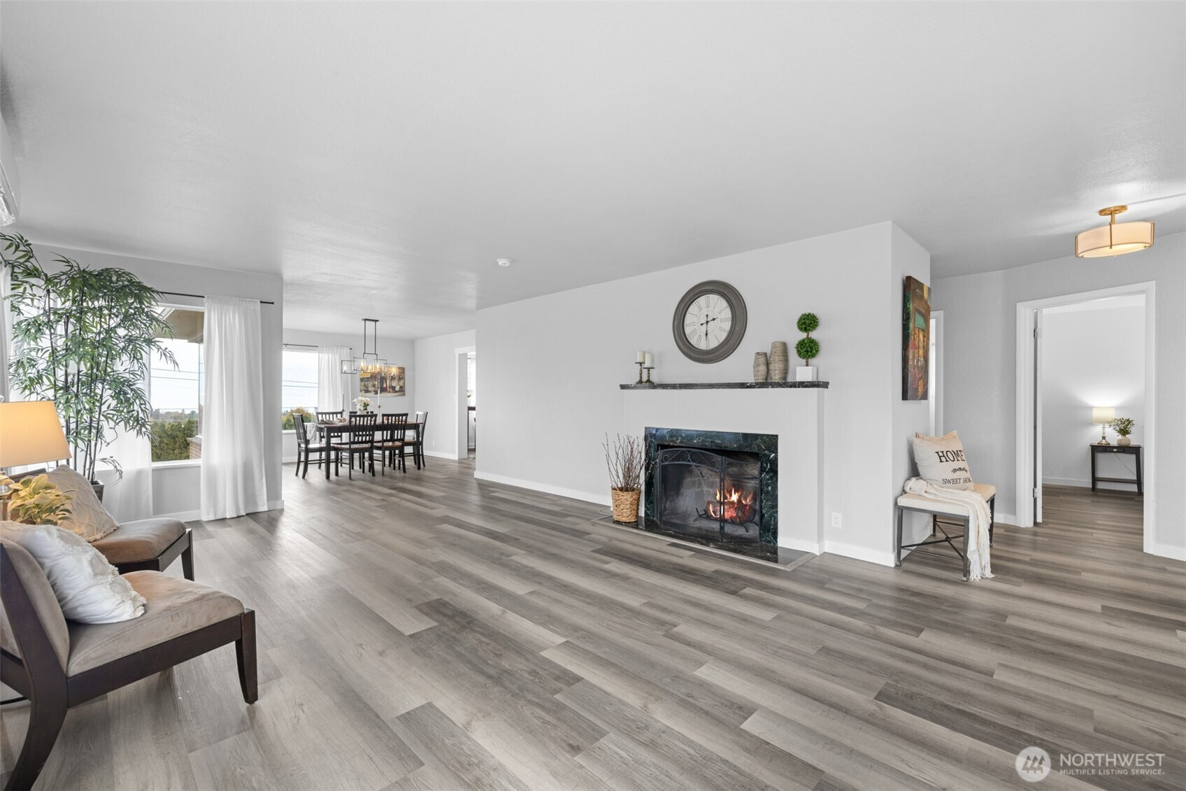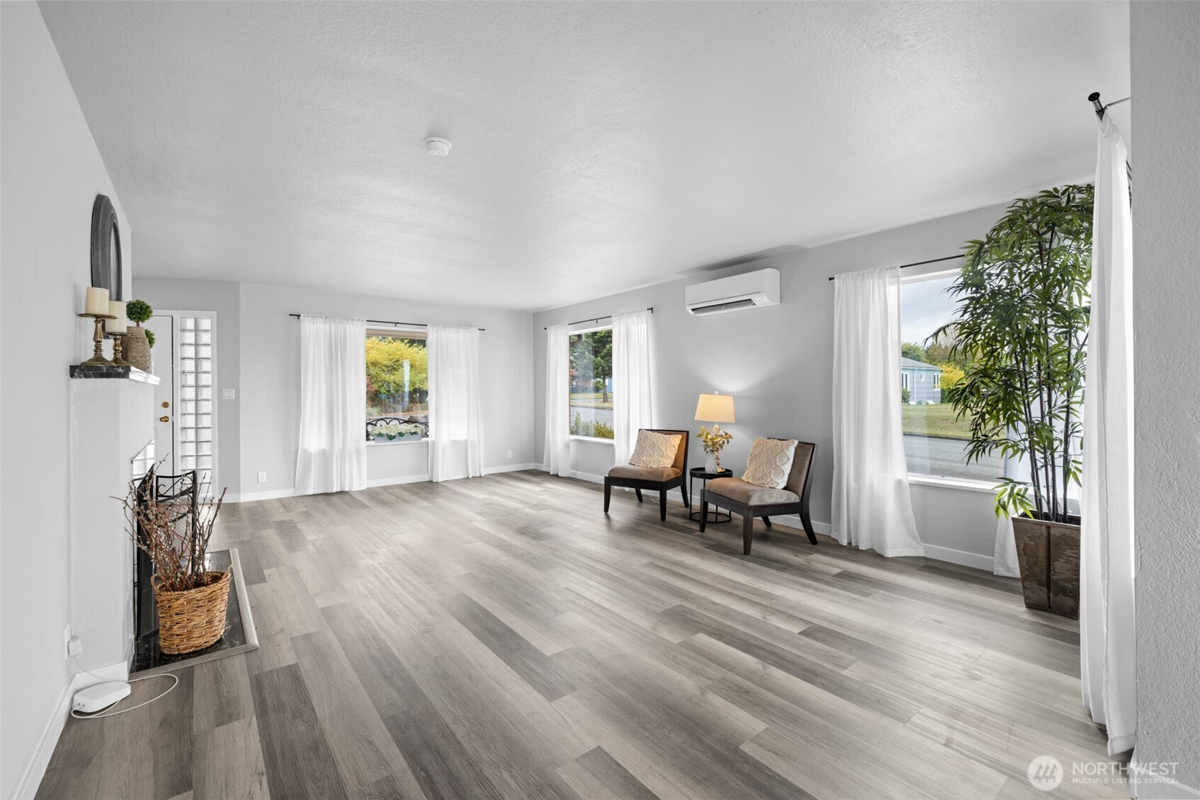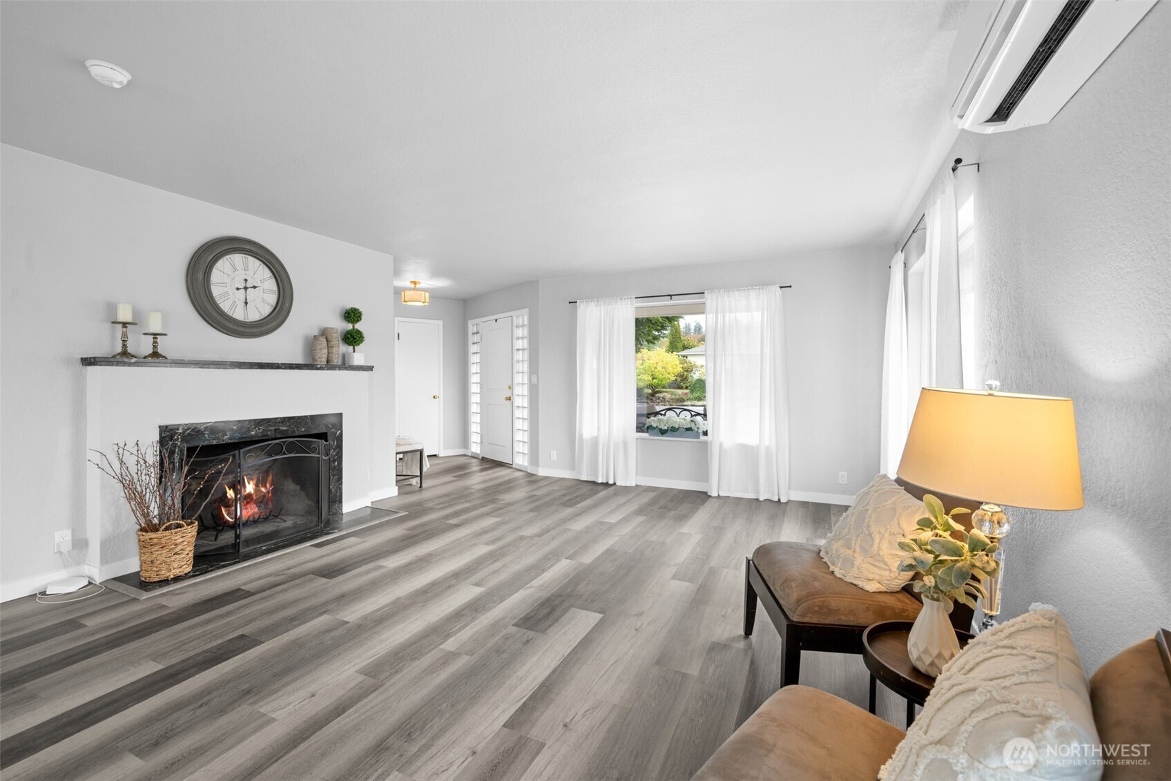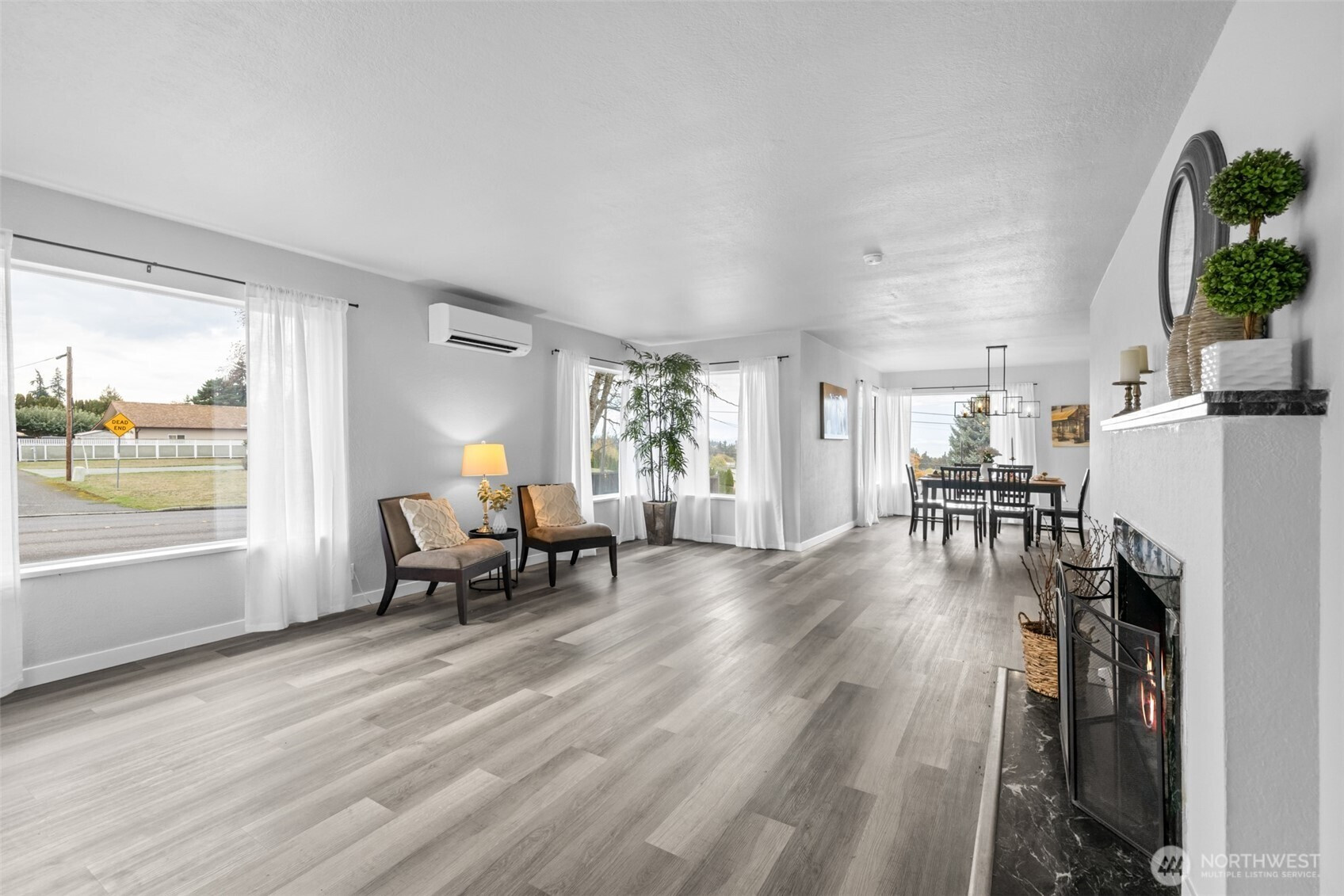 Charming Port Angeles home with ocean and mountain views! This lovely 2-bedroom, 2-bath home offers comfort and versatility on a desirable corner lot. The main level features a bright living room with a cozy fireplace, dining area, eat-in kitchen. 2 bedrooms and 1 bath. Enjoy new flooring throughout and a new heat pump on both levels for year-round comfort. The lower level adds bonus living space with a family room, laundry area, and additional bath. Relax on the covered front porch while taking in the views. Plenty of storage in the garage. Conveniently located near shopping, schools, and downtown — this home blends comfort, function, and an ideal Port Angeles location.