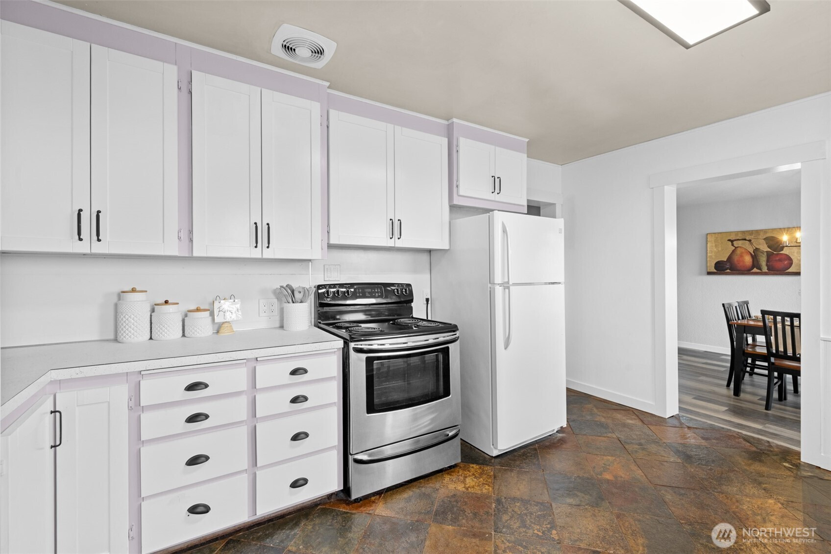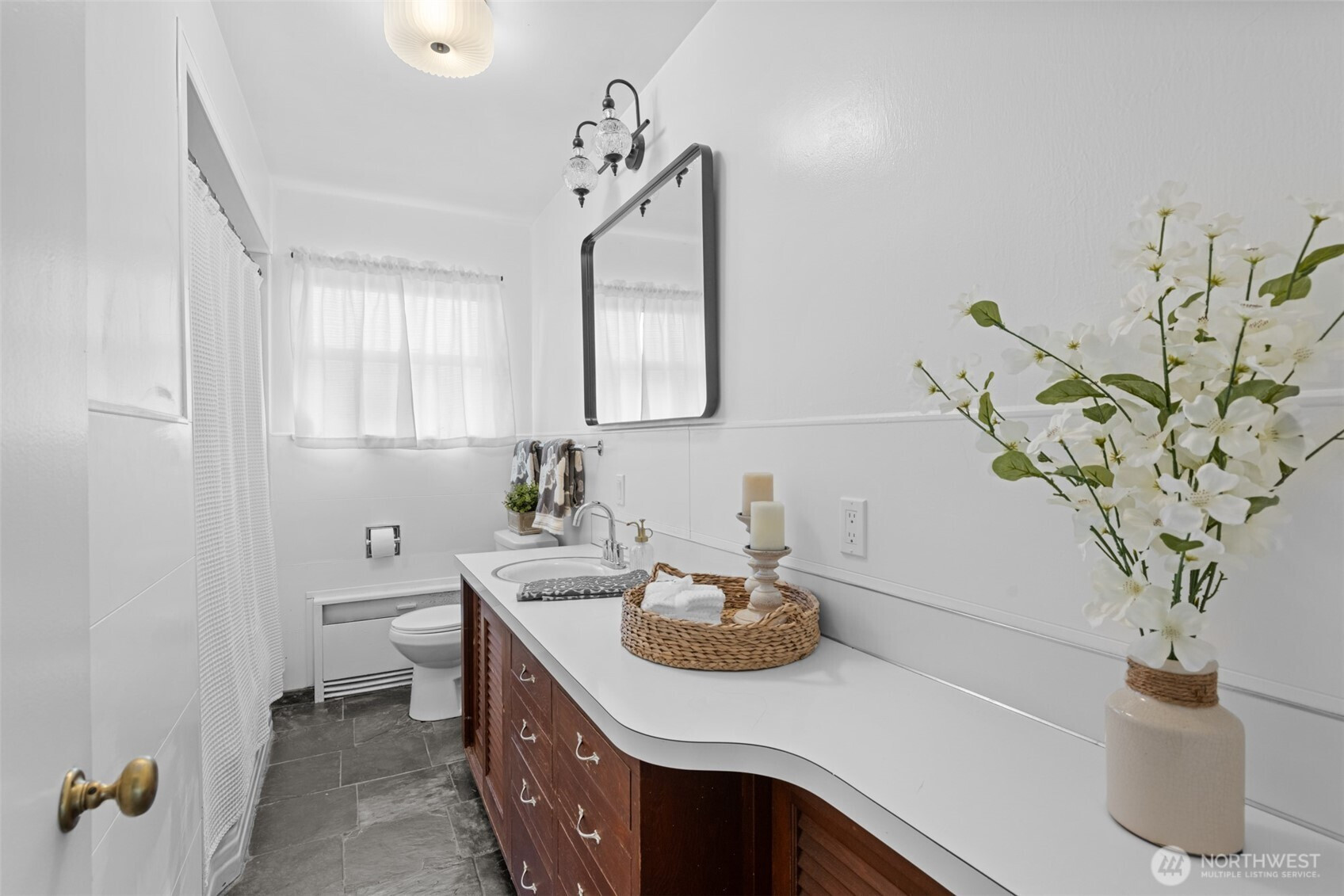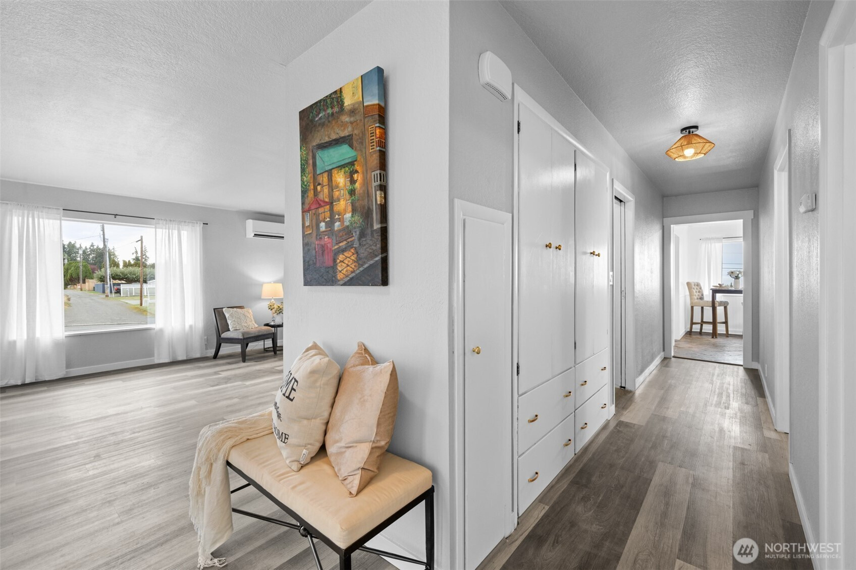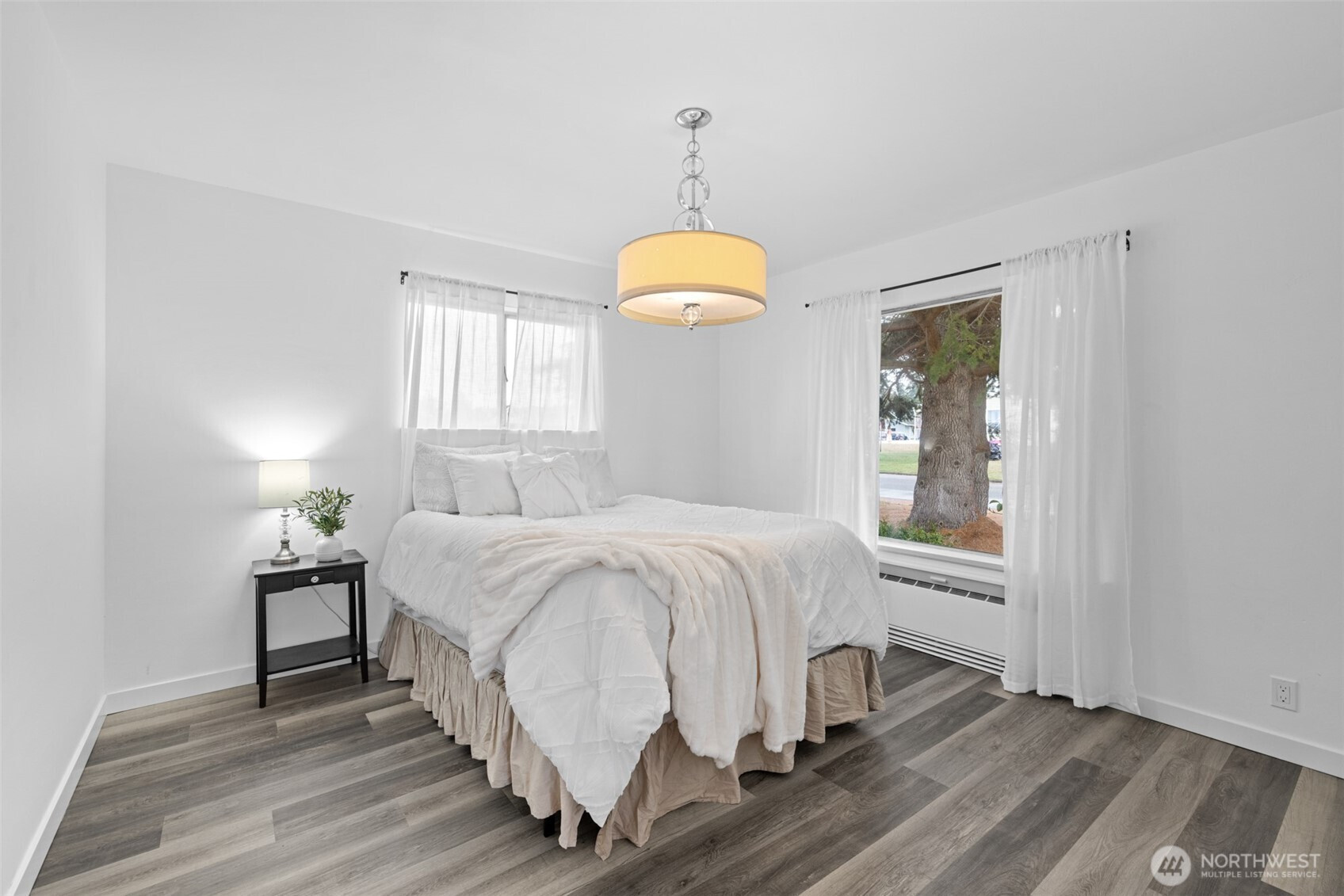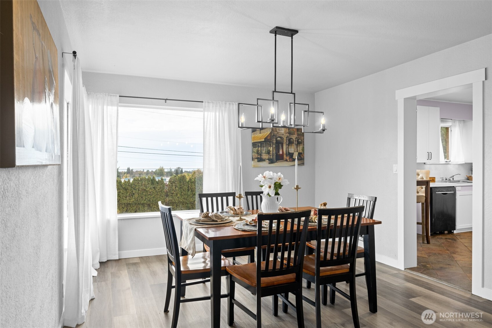 Charming Port Angeles home with ocean and mountain views! This lovely 2-bedroom, 2-bath home offers comfort and versatility on a desirable corner lot. The main level features a bright living room with a cozy fireplace, dining area, eat-in kitchen. 2 bedrooms and 1 bath. Enjoy new flooring throughout and a new heat pump on both levels for year-round comfort. The lower level adds bonus living space with a family room, laundry area, and additional bath. Relax on the covered front porch while taking in the views. Plenty of storage in the garage. Conveniently located near shopping, schools, and downtown — this home blends comfort, function, and an ideal Port Angeles location.