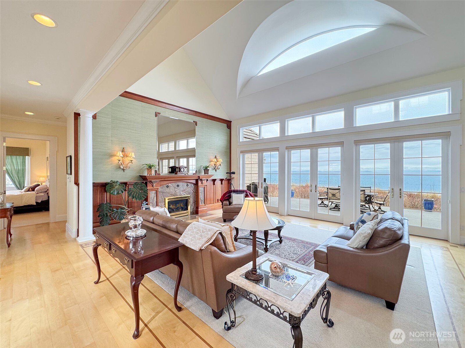 Set directly on the beach along Dungeness Bay, this front-row waterfront home is widely described as one of the most exceptional properties and locations in Sequim. The setting is profoundly tranquil, with unobstructed water and mountain views that span the Bay, Strait of Juan De Fuca, the Olympics, the Cascades, Mount Baker, The San Juan's, British Columbia, and the Dungeness Lighthouse, creating a backdrop that feels both expansive and serene. Located within a private residential enclave of just 14 homes and more than a mile from the nearest county road, the property offers rare seclusion and quiet, broken only by waves, wildlife, and the rhythm of the tide. An irreplaceable coastal retreat defined by privacy, natural beauty, and timeless appeal. Immediate access to crabbing, fishing, & kayaking right from your doorstep. This Robert A.M. Stern inspired home has soaring 20 foot ceilings, Huge open floor plan, impressive floor to ceiling windows with French doors that open to a spacious deck, Luxurious Chefs Kitchen, Interior Greenhouse, 3 Car Garage, Primary and Junior Guest Suites, with office/den on the main floor. Only 2 hours from Edmonds and Seattle.