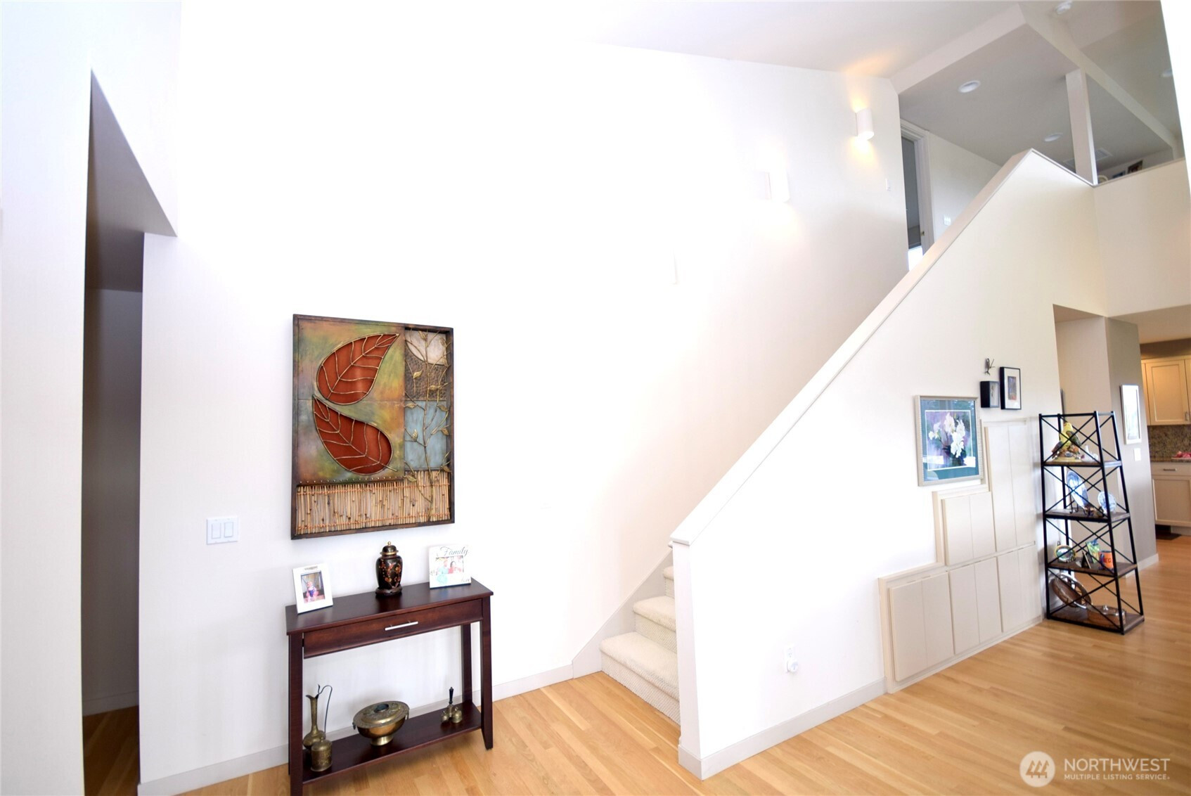 Stunning architecturally designed home with partial views of Sequim Bay, The Strait of Juan de Fuca and mountains. Partially fenced peaceful acre is surrounded by lots of open space. Home has incredible wall windows that bring the outside in with lovely views out each window. Large vaulted ceiling living room has French doors to deck and is open to kitchen & dining area. Upstairs loft overlooks the living room, has lovely views and provides additional space for office, living or just looking at the Strait. Main level has primary bedroom with door to sunny patio area. En suite guest room is also on the main level, with laundry room & large bonus room that could be office, hobby, exercise or media room. Lots of options. Upstairs has loft, bedroom, & additional office/flex space. New solar panels. 3 car garage has one tall door for RV. Easy care landscaped yard.Don't miss this opportunity to live in all this light and space.