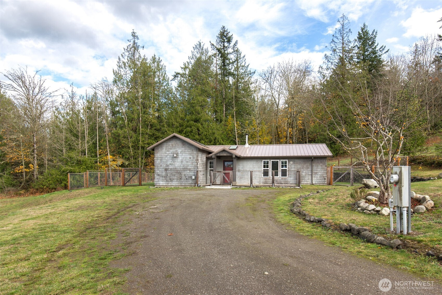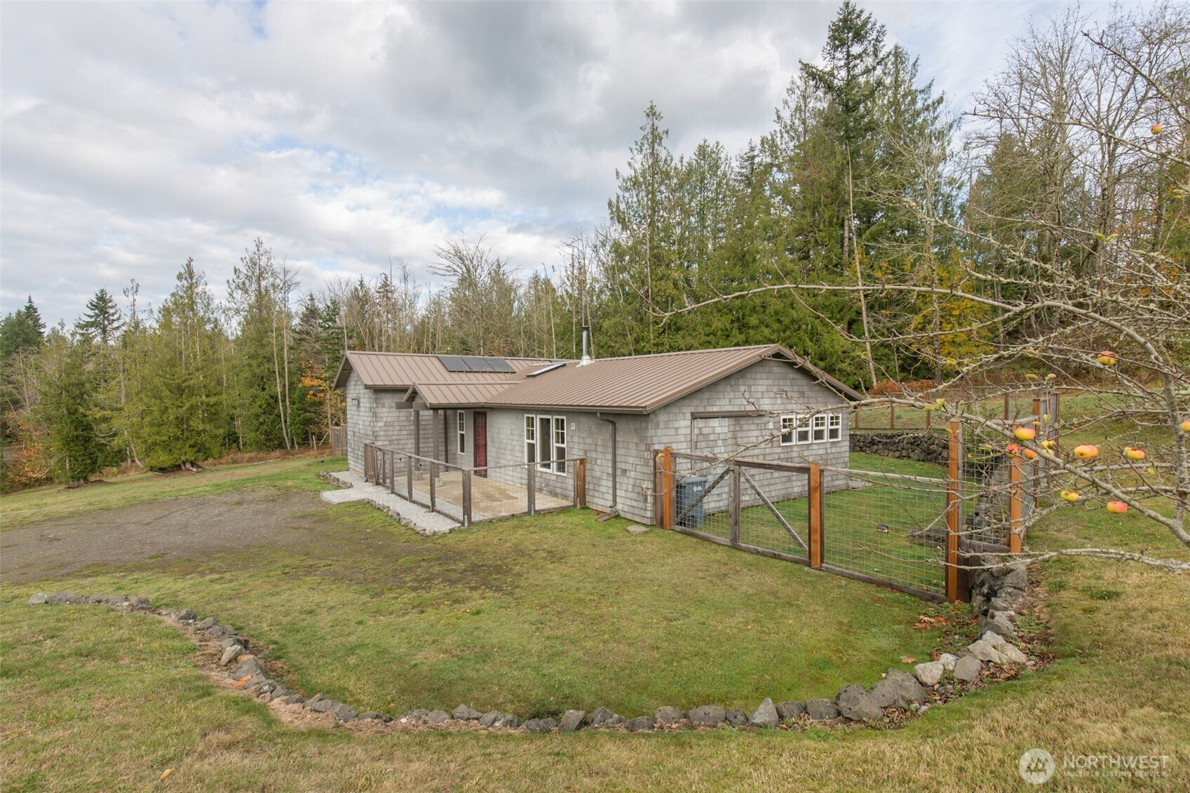 (503) 893-8874Nestled on an open 5-acre lot, this charming cedar shingled home offers the perfect blend of privacy, comfort, and sustainable living. Tucked away in a serene woodland setting, the home features a durable metal roof, solar panel system, and a fully fenced backyard—ideal for pets to roam safely. Inside, you'll find engineered wood floors, vaulted ceilings, and an open-concept living space. The kitchen is equipped with stainless steel appliances, a countertop composter, and a spacious walk-in pantry. The primary bedroom is complemented by a guest bedroom at the end of the hallway. The full bathroom conveniently doubles as a laundry area. Quiet and peaceful 5 acres. A unique opportunity to own a home in desirable in Blyn Springs Estates.