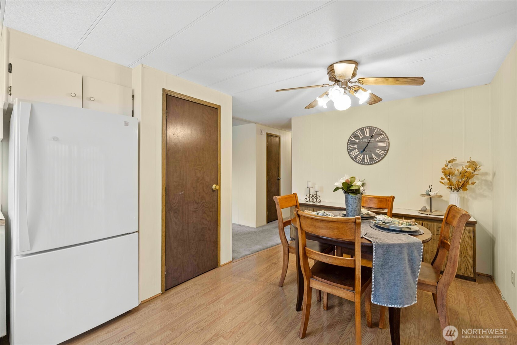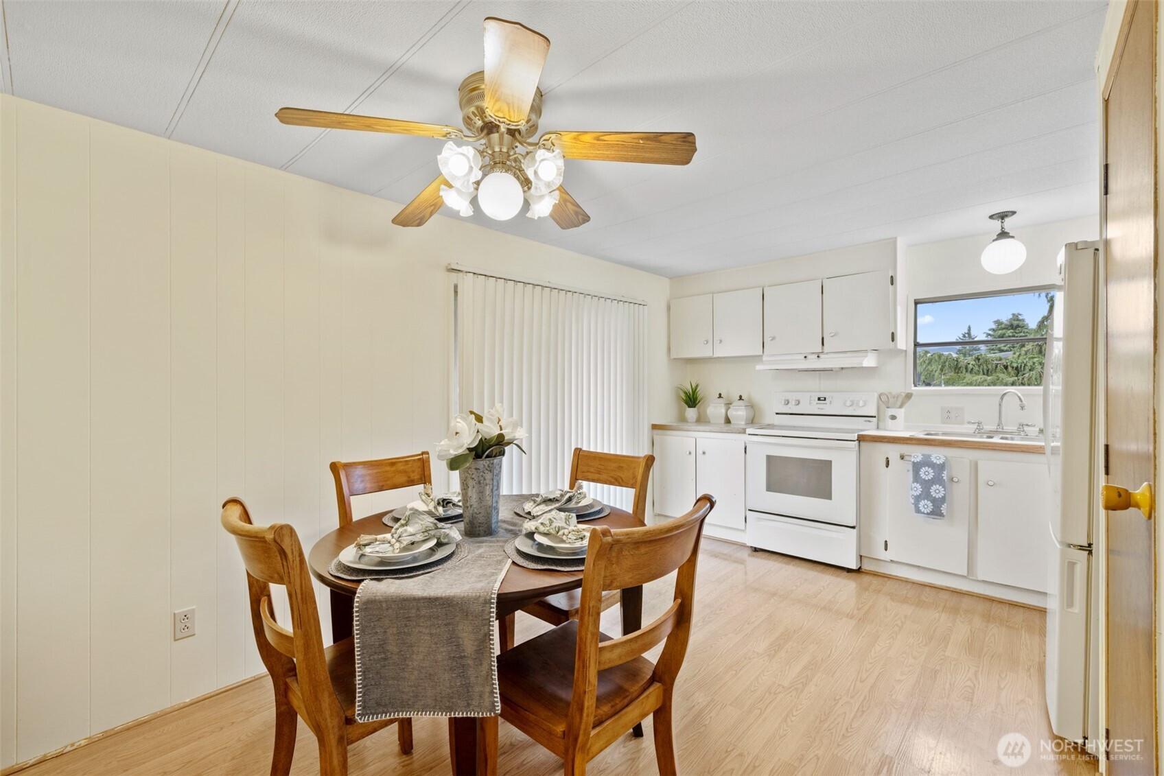 Welcome to this charming home in a desirable 62+ community in Sequim, conveniently located near shopping, dining, and all the town’s amenities. Enjoy stunning mountain views from the large deck—perfect for relaxing or entertaining. Inside, the living room features a cozy wood-burning stove, and the kitchen offers newer appliances, a pantry, and a small deck just off the back. The dining area includes a built-in sideboard for added storage and style. Two comfortable bedrooms include a spacious primary with a walk-in closet. A new roof adds peace of mind, and the storage shed with a workbench provides plenty of space for projects or hobbies. Affordable and ideally situated! Come see it today!