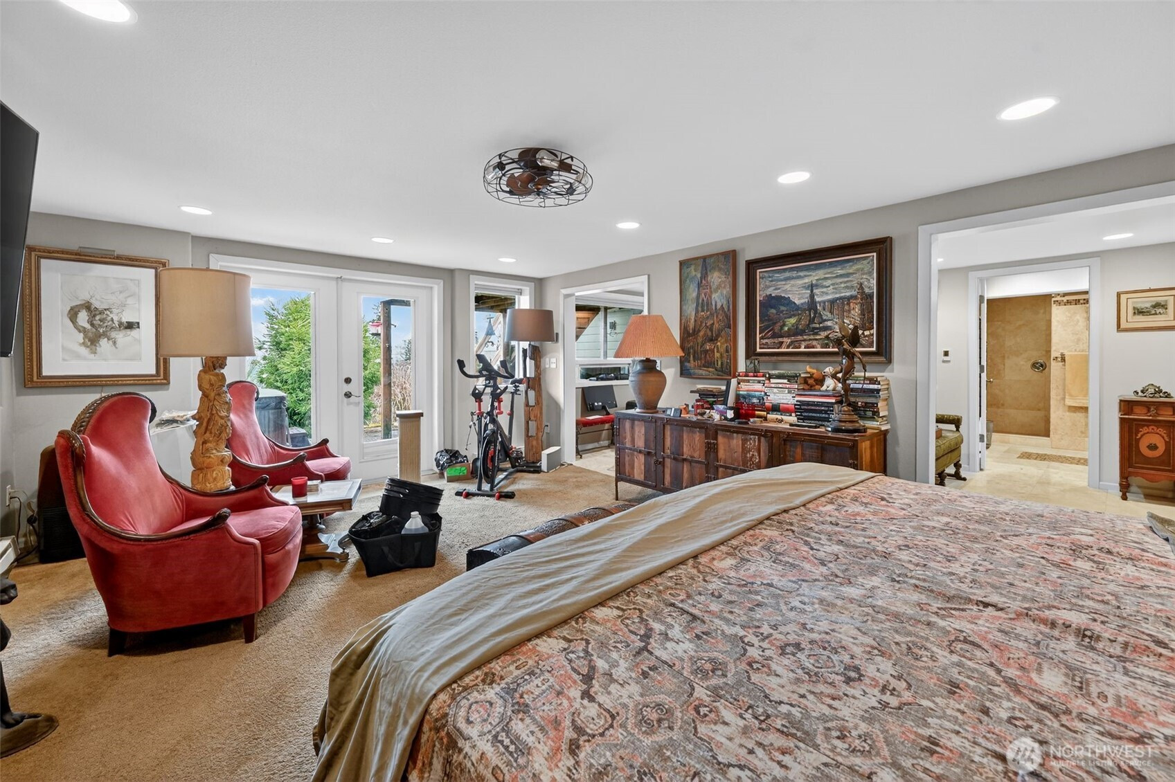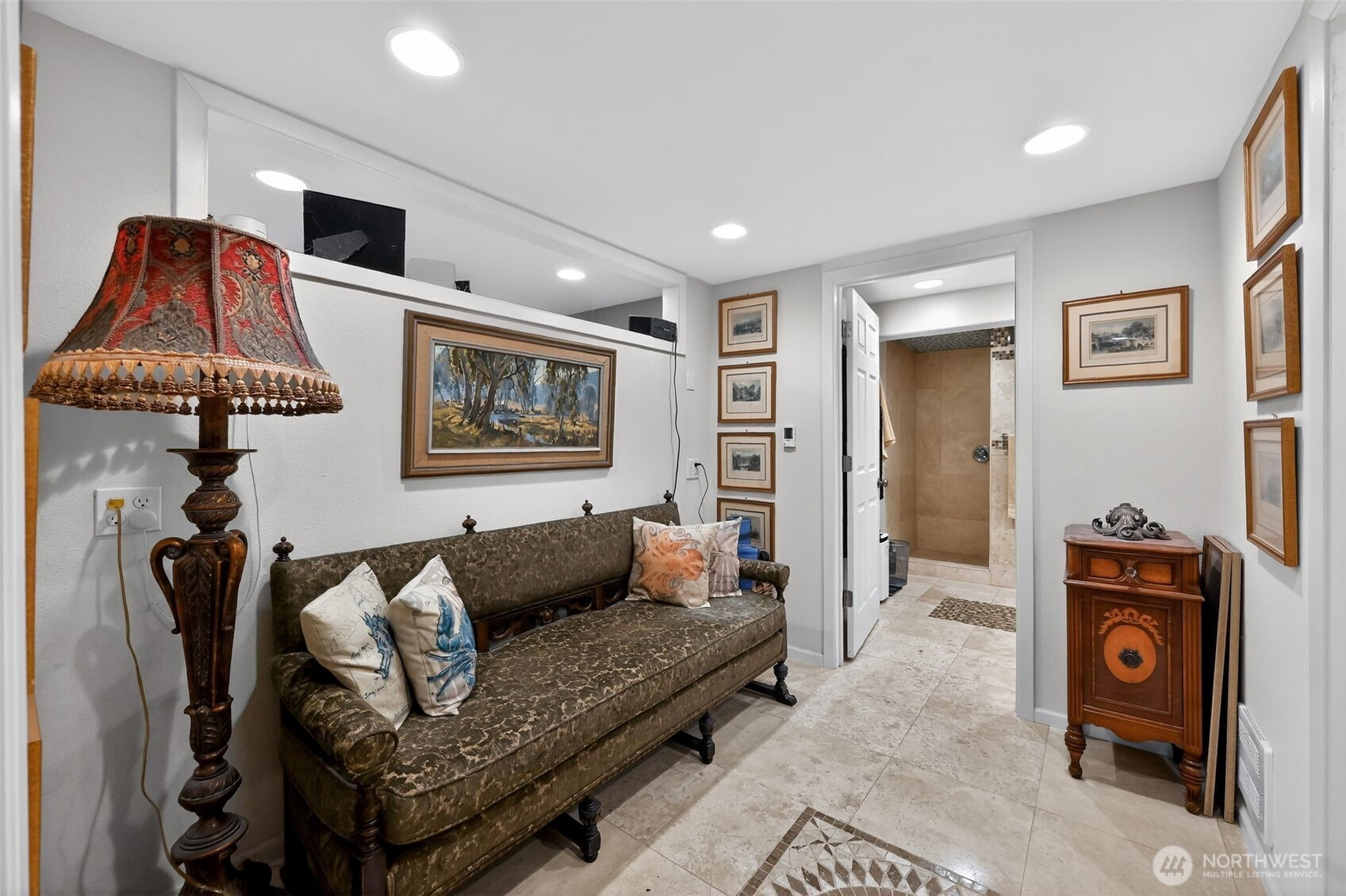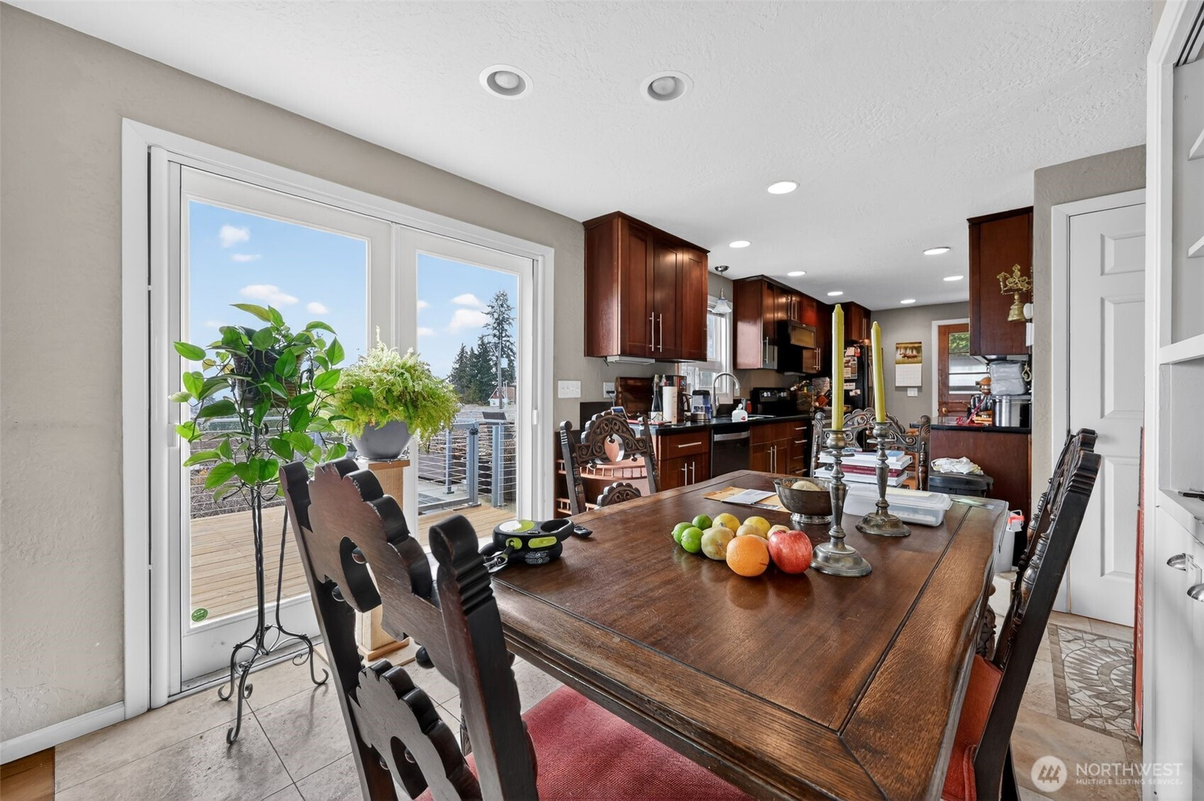 Wake up to sweeping saltwater views in this inviting home where comfort, character, and everyday luxury come together. The kitchen features granite countertops, soft-close cabinetry, and tile flooring with a decorative inlay, creating a space that is both functional and stylish. Rich cherry hardwood flooring upstairs adds warmth and elegance throughout the upper level. Two fireplaces, one in the welcoming living room and another in the spacious downstairs primary suite, offer cozy gathering spots year-round. The primary retreat includes a private sitting area, French doors, a walk-in closet, and a beautifully appointed bath, creating a peaceful place to unwind at the end of the day. Step outside and discover the true highlight of this home. The north-facing deck captures breathtaking water views and was designed for entertaining, featuring a covered BBQ shelter, heaters, and a firepit, perfect for enjoying cool Pacific Northwest evenings with friends. The backyard continues the experience with a flagstone patio, relaxing hot tub, and convenient RV parking. Whether you're enjoying quiet mornings with coffee overlooking the water or hosting memorable evenings under the stars, this home offers the perfect blend of comfort, scenery, and space to enjoy it all.