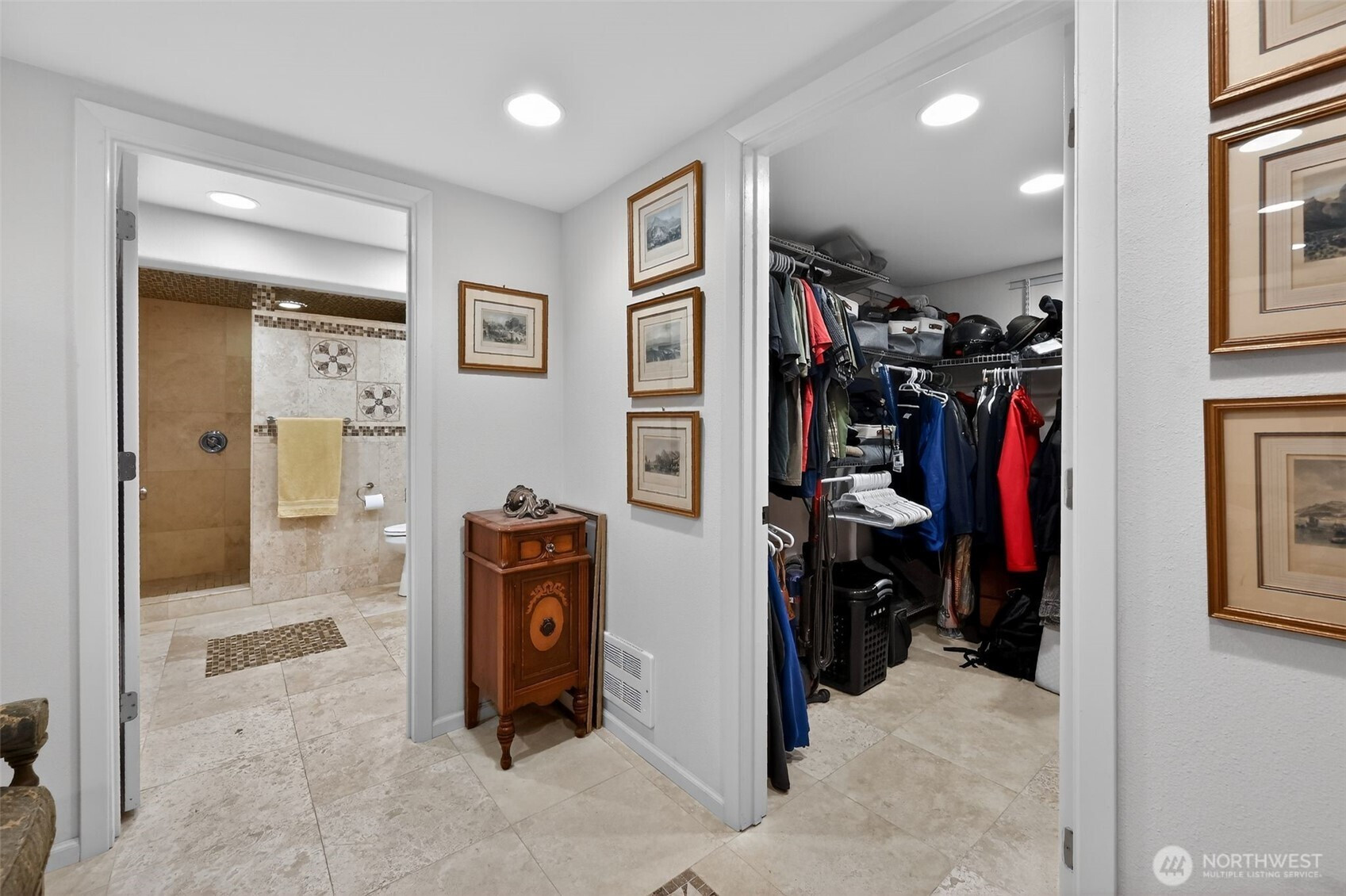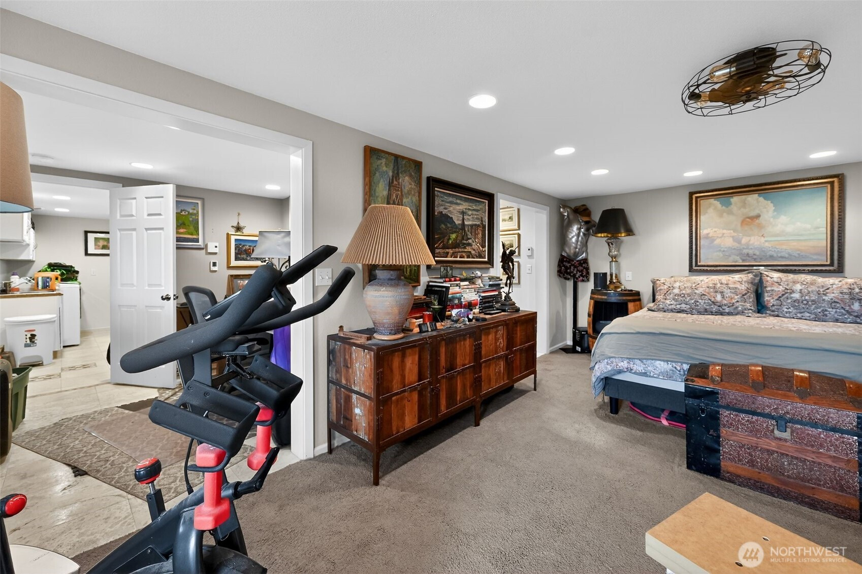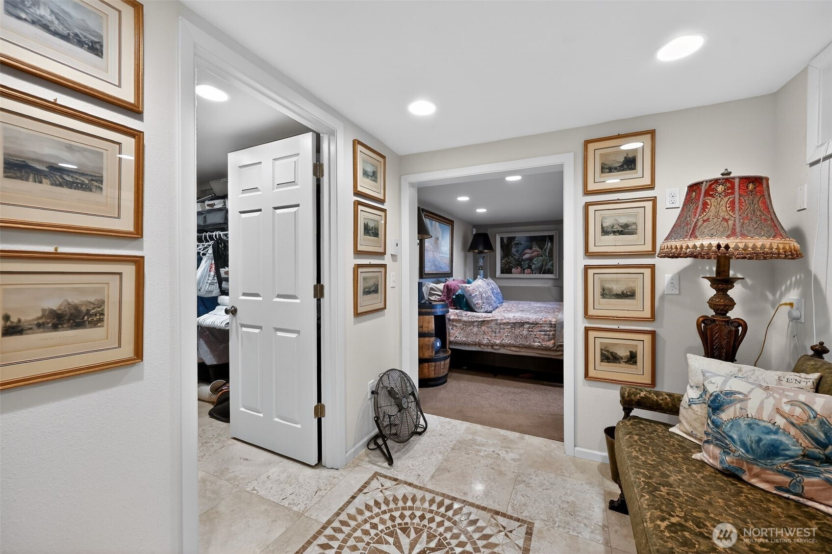 Wake up to sweeping saltwater views in this inviting home where comfort, character, and everyday luxury come together. The kitchen features granite countertops, soft-close cabinetry, and tile flooring with a decorative inlay, creating a space that is both functional and stylish. Rich cherry hardwood flooring upstairs adds warmth and elegance throughout the upper level. Two fireplaces, one in the welcoming living room and another in the spacious downstairs primary suite, offer cozy gathering spots year-round. The primary retreat includes a private sitting area, French doors, a walk-in closet, and a beautifully appointed bath, creating a peaceful place to unwind at the end of the day. Step outside and discover the true highlight of this home. The north-facing deck captures breathtaking water views and was designed for entertaining, featuring a covered BBQ shelter, heaters, and a firepit, perfect for enjoying cool Pacific Northwest evenings with friends. The backyard continues the experience with a flagstone patio, relaxing hot tub, and convenient RV parking. Whether you're enjoying quiet mornings with coffee overlooking the water or hosting memorable evenings under the stars, this home offers the perfect blend of comfort, scenery, and space to enjoy it all.