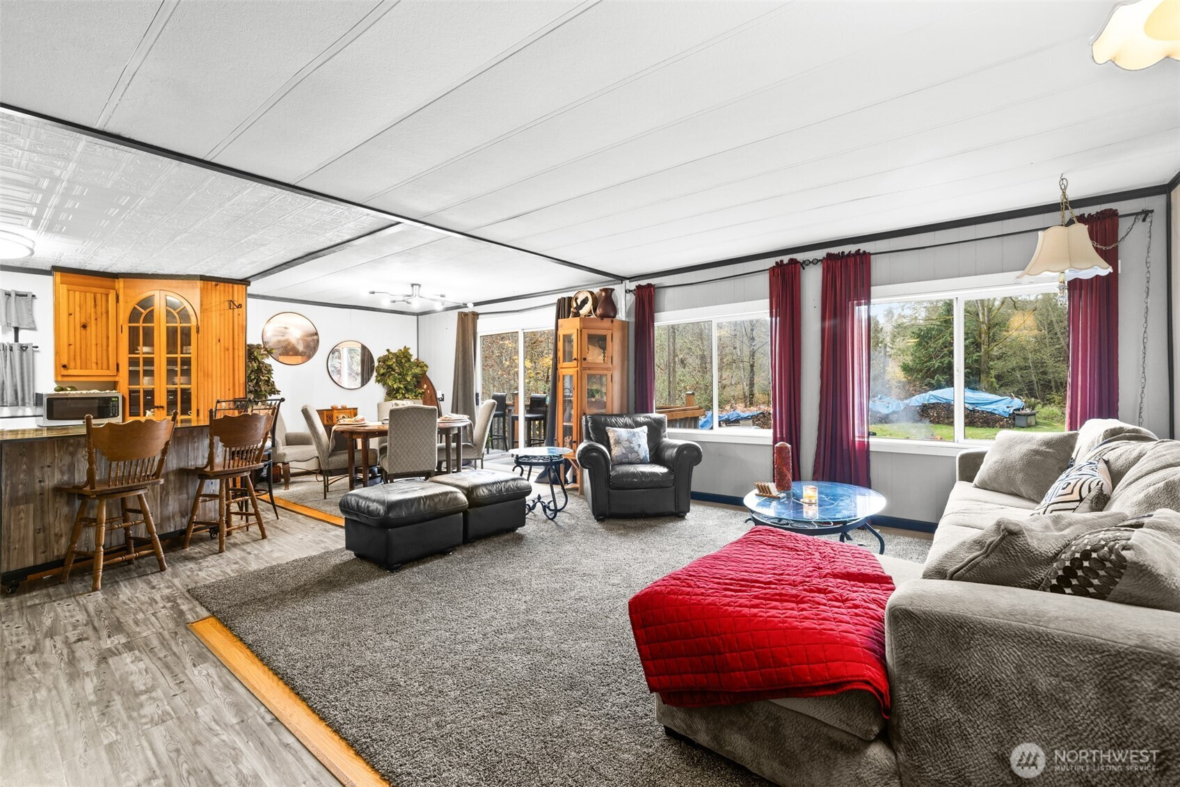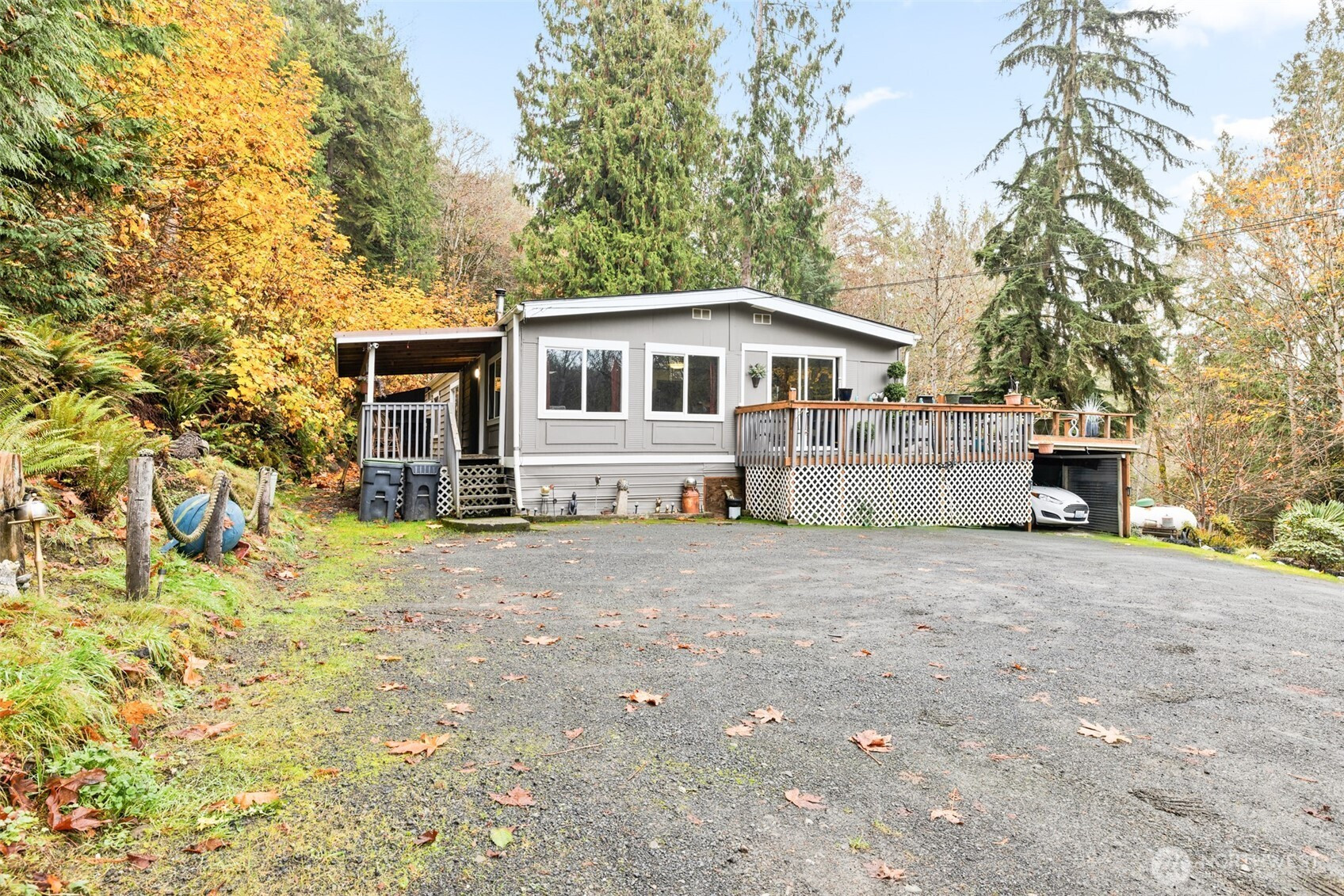 Discover privacy and space in this 4-bedroom, 2-bath very affordable home on over 2 acres in the Four Seasons Park. Surrounded by trees yet minutes from town, this 1,904 sq ft home offers an open floor plan, spacious kitchen with island, and both living and family rooms—the latter featuring a cozy wood stove. Enjoy outdoor living on the covered porch or expansive deck off the dining area. The primary suite includes a sunken tub and separate shower. With a new roof, ample driveway parking, and carport under the deck, this property offers comfort, convenience, and serene Northwest living.