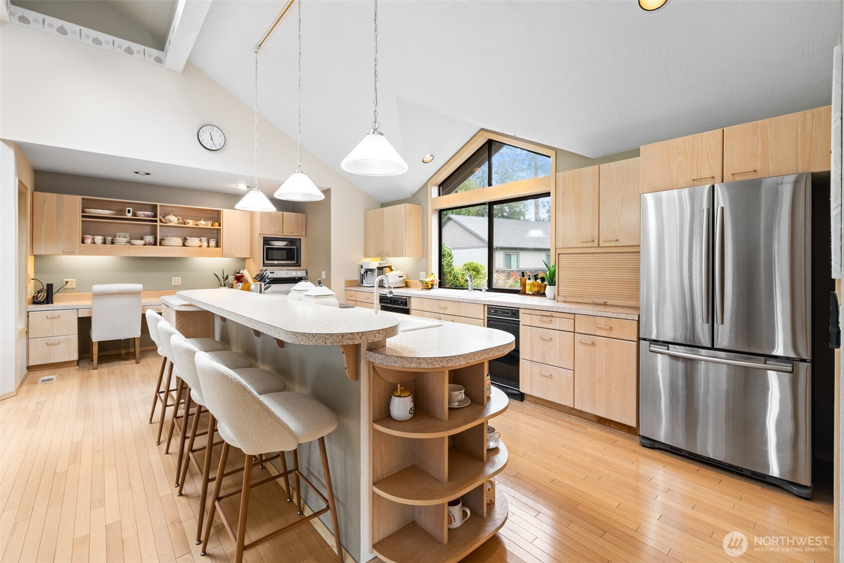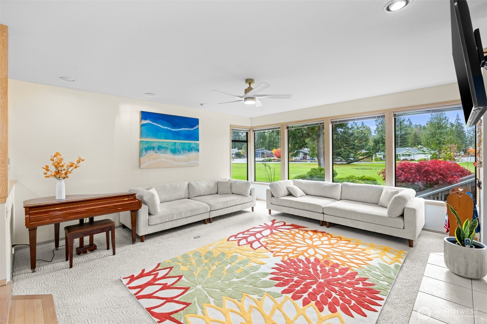 Elegant 3-bedroom, 2-bath home in Sequim’s desirable Sunland community. Set along the golf course, this 2,105 sq ft residence showcases refined living with a double-sided fireplace, gleaming hardwood floors, and a gourmet kitchen featuring a large island, walk-in pantry, and abundant workspace. The main floor offers a guest bedroom, full bath, and laundry, while the upper level hosts a serene primary suite and guest room. Enjoy a spacious deck with sweeping golf course views, pristine landscaping, and a 2-car garage with golf cart bay. Sunland amenities include a pool, clubhouse, tennis courts, and private beach access.