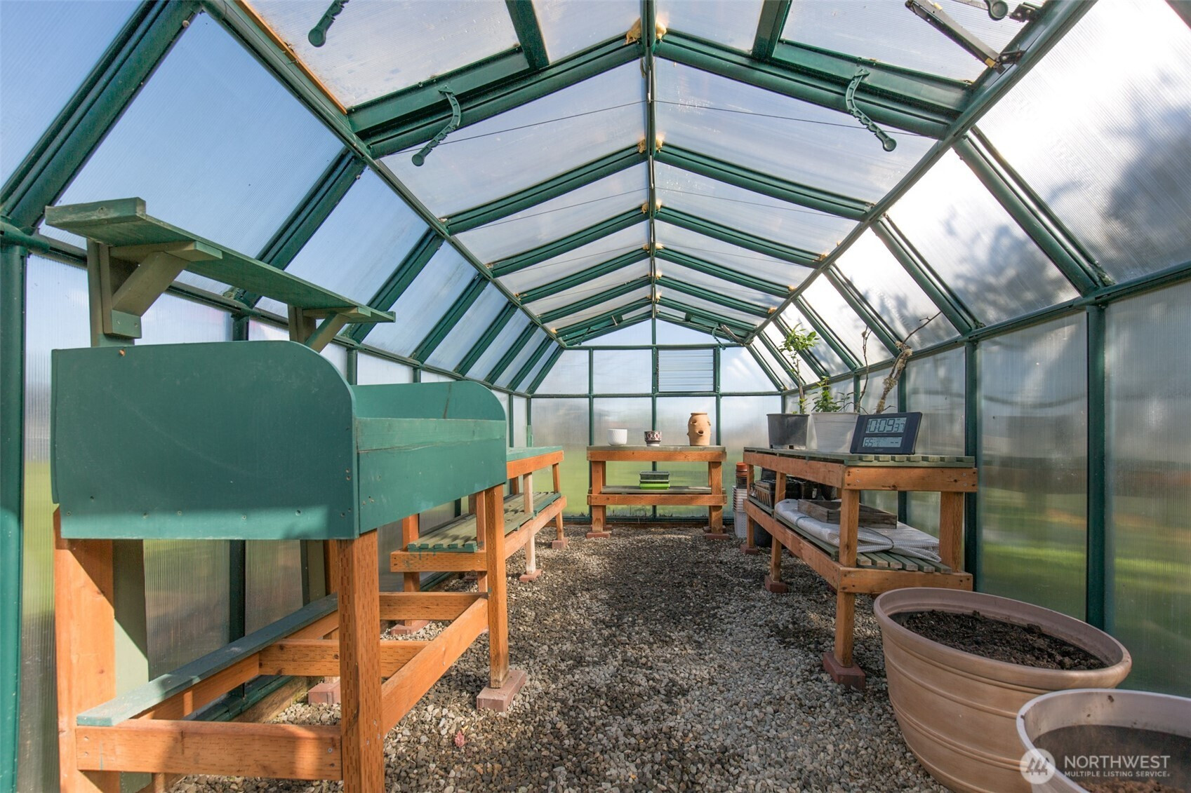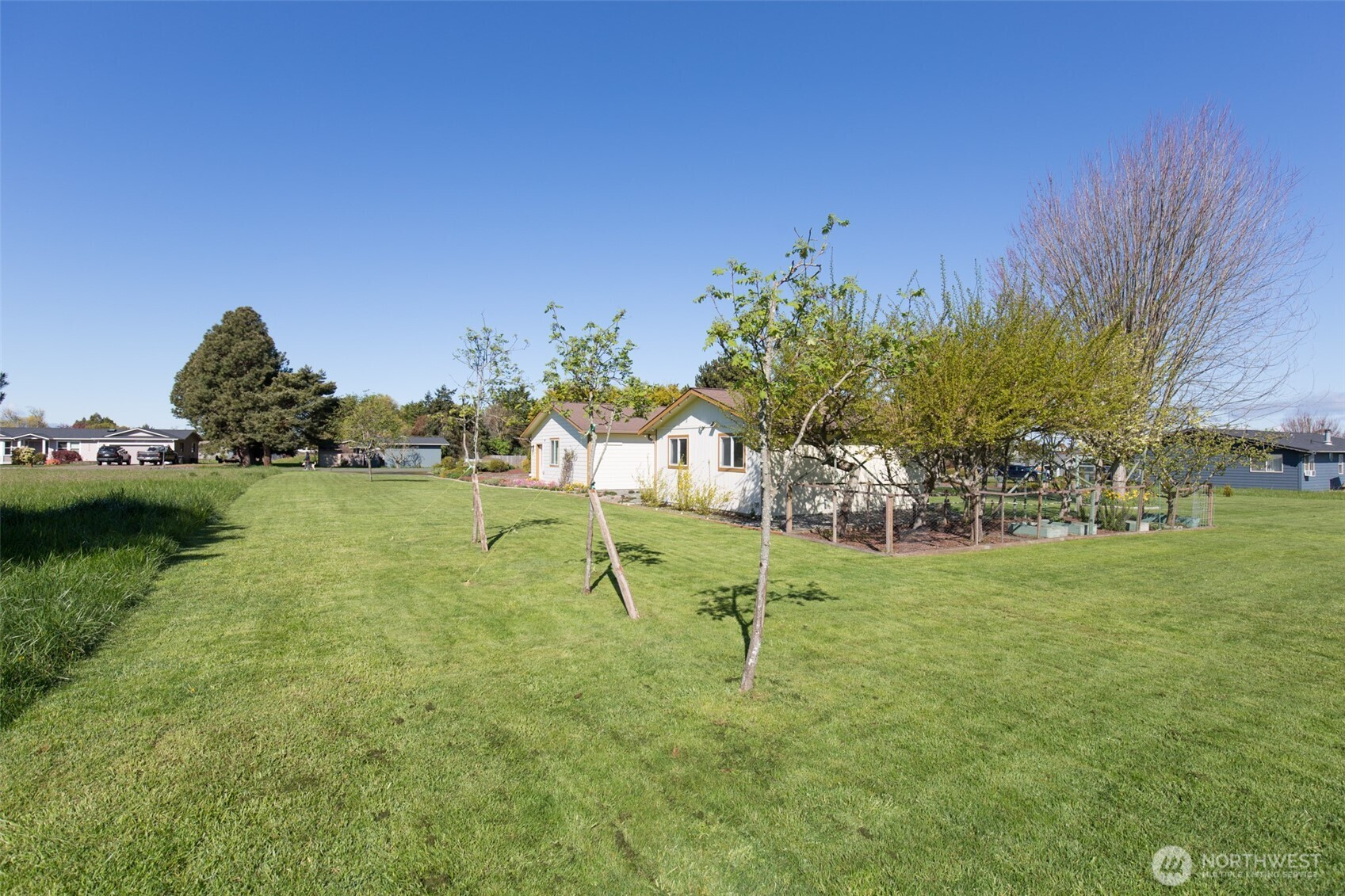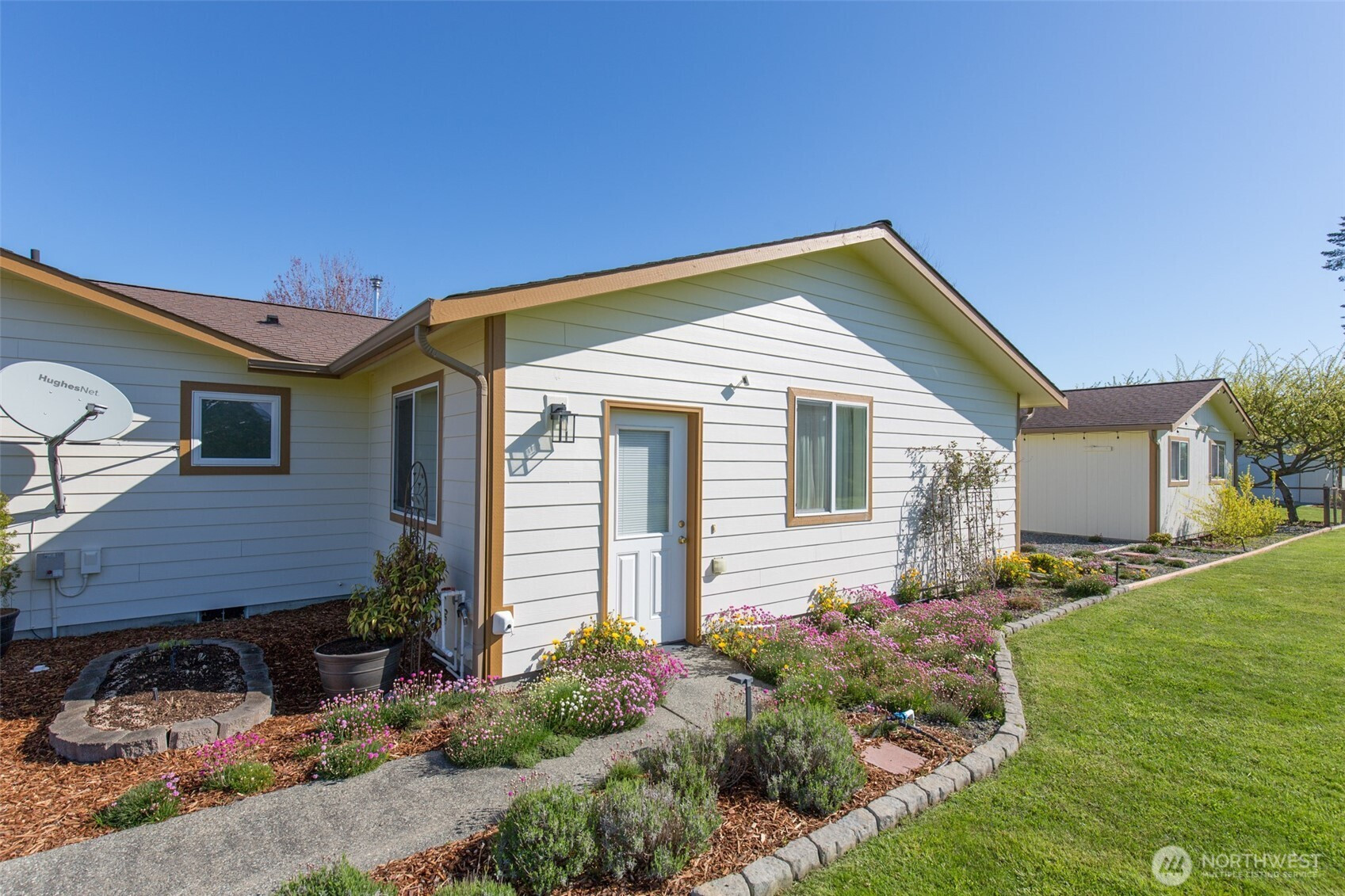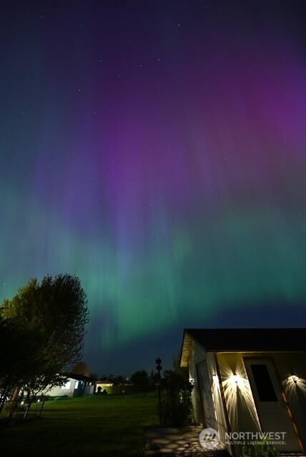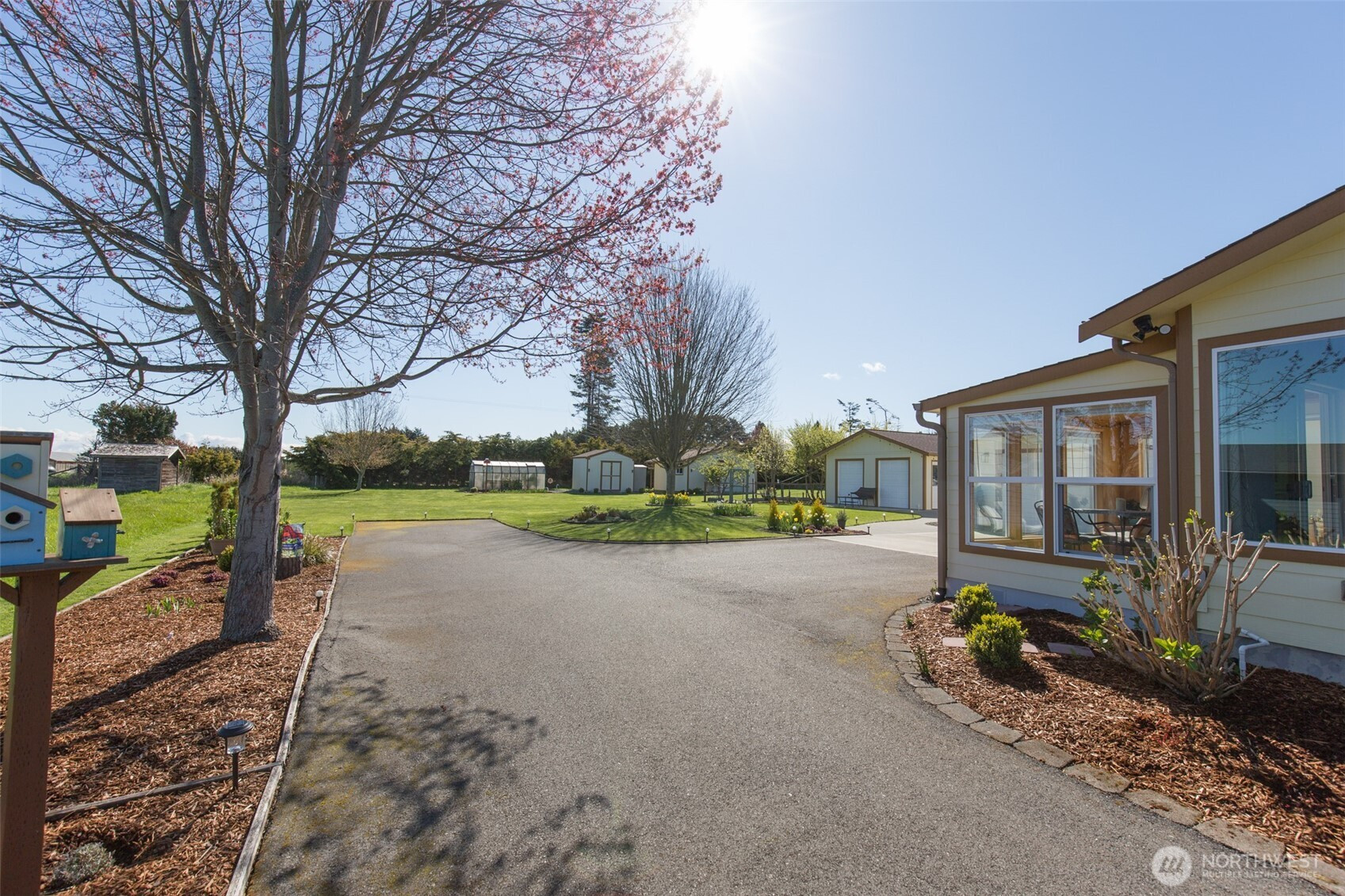 Mountain View retreat on .67 acres of beautifully manicured grounds, gardens, and orchard! This spacious 2,175 sq ft home offers 3 bedrooms and 2.5 baths with vaulted ceilings and striking cedar beams, creating a warm yet open feel. Enjoy year-round natural light in the attached sunroom just off the dining area. The kitchen features granite countertops, propane cooktop, double ovens, stainless steel appliances, and updated lighting—ideal for both everyday living and entertaining. Additional highlights include a woodstove, heat pump, central vacuum, wide hallways, and three solar tubes. Over 250 outlets and upgraded LED lighting add convenience and functionality. A standout feature is the extensive shop and garage space totaling 1,788 sq ft—including an attached oversized 2-car garage with office/studio, a second garage with its own electrical panel, a third outbuilding perfect for hobbies, plus an additional equipment shed and greenhouse. The property is supported by Cline Irrigation and includes fruit trees, berries, a variety of flowers, shrubs, and outdoor lighting throughout. Community beach access. A rare combination of space, utility, and scenic beauty—perfect for hobbyists, gardeners, or those seeking a peaceful lifestyle with room to grow.