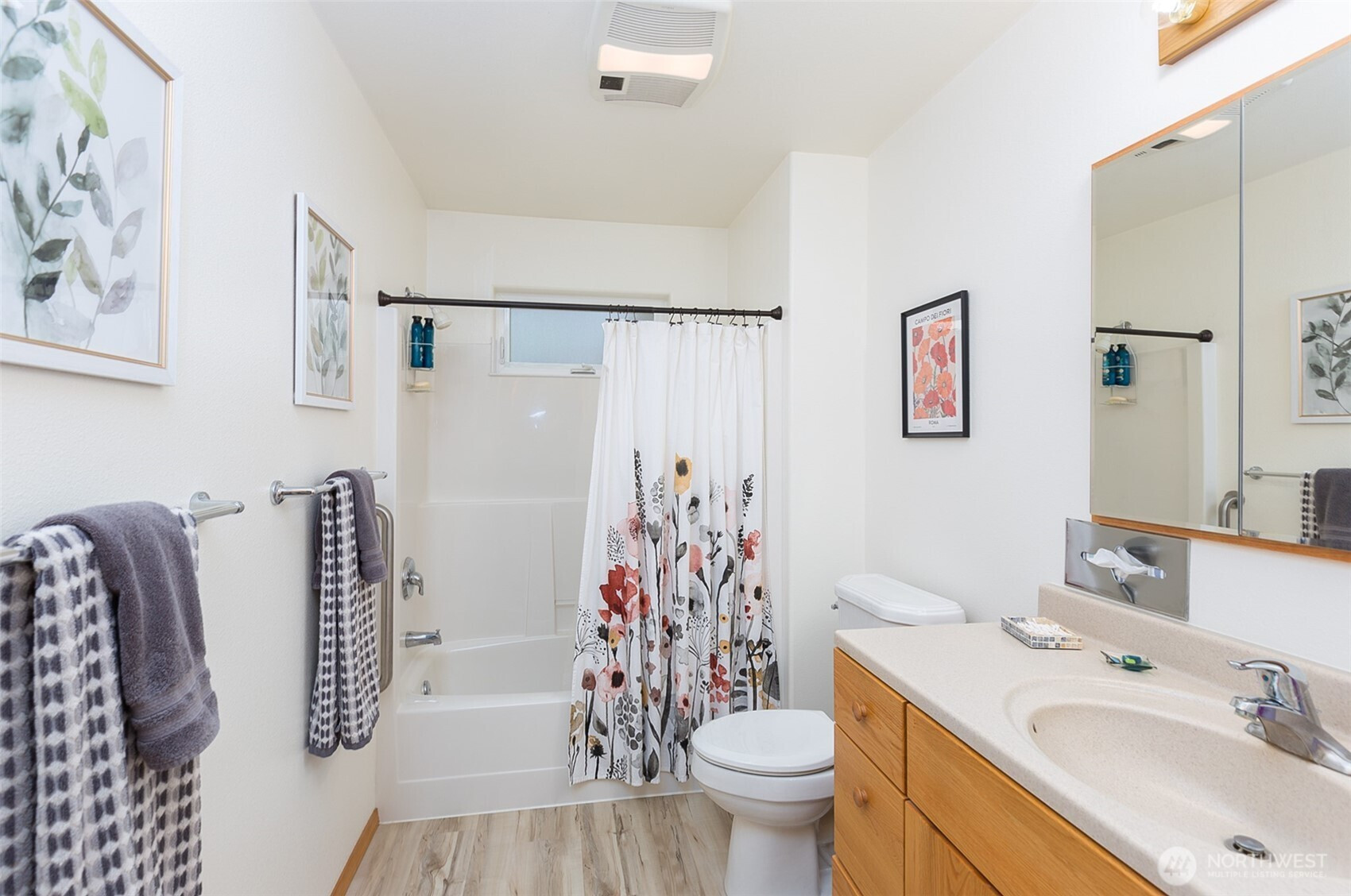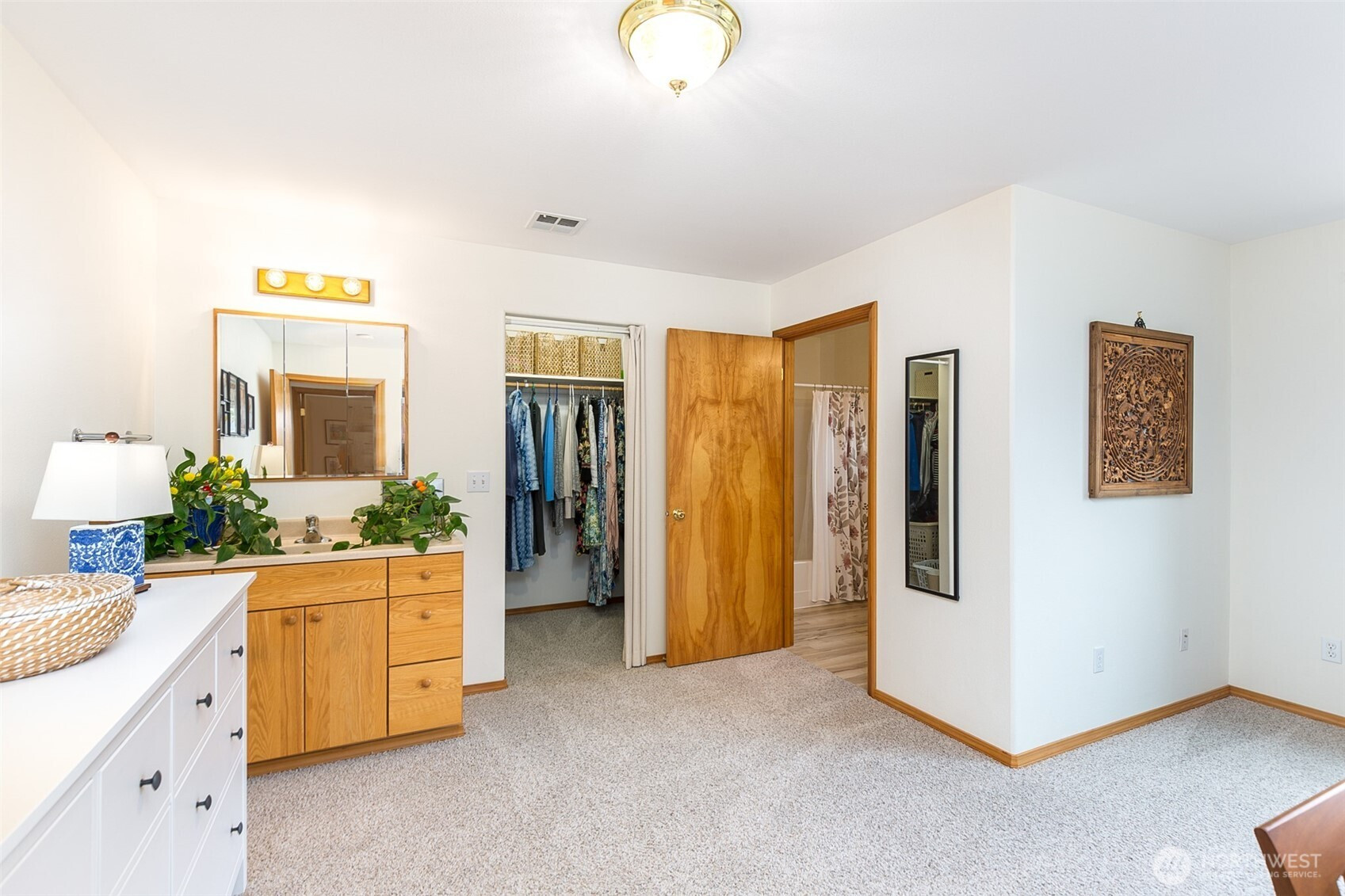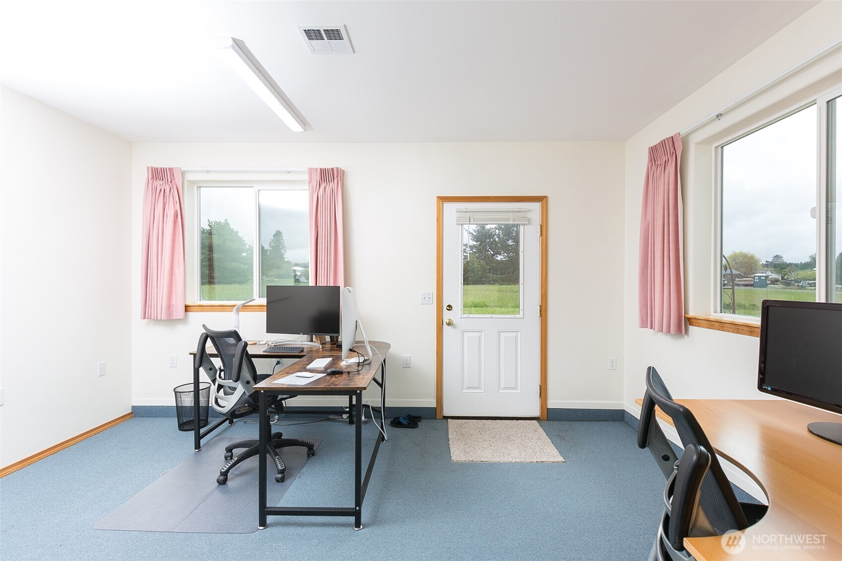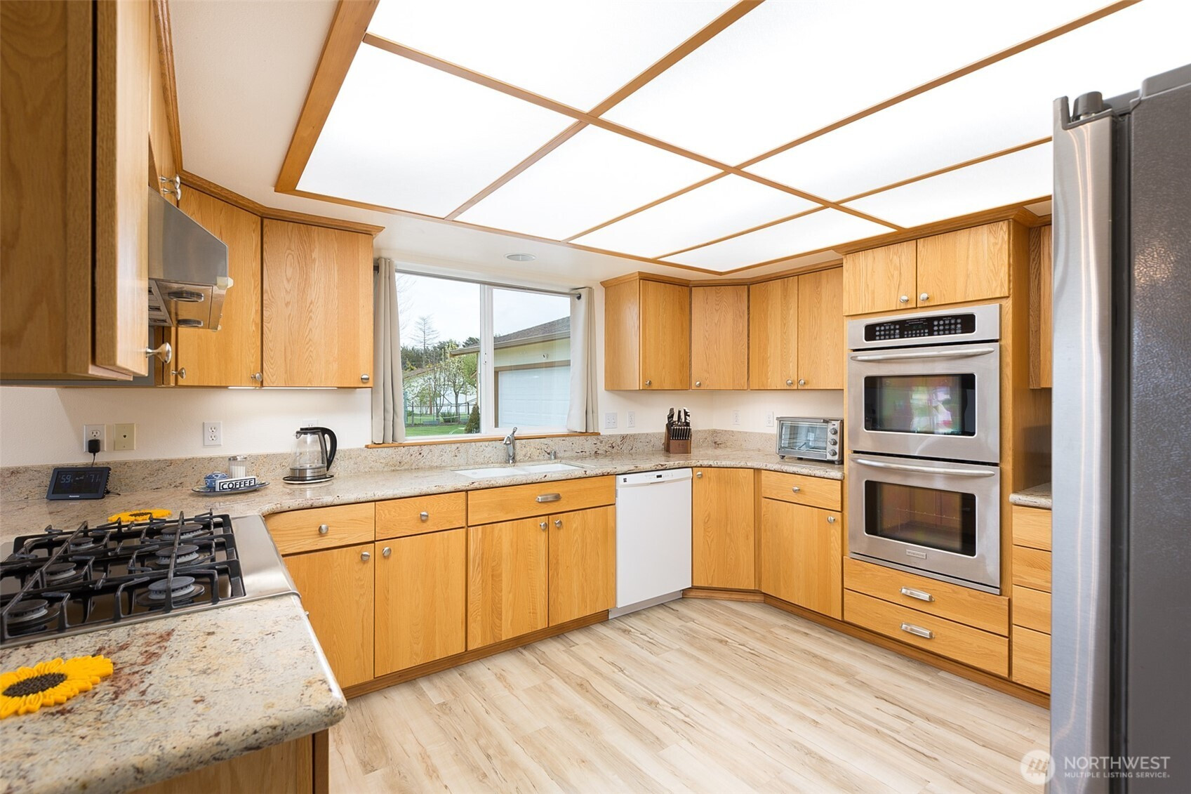 Mountain View retreat on .67 acres of beautifully manicured grounds, gardens, and orchard! This spacious 2,175 sq ft home offers 3 bedrooms and 2.5 baths with vaulted ceilings and striking cedar beams, creating a warm yet open feel. Enjoy year-round natural light in the attached sunroom just off the dining area. The kitchen features granite countertops, propane cooktop, double ovens, stainless steel appliances, and updated lighting—ideal for both everyday living and entertaining. Additional highlights include a woodstove, heat pump, central vacuum, wide hallways, and three solar tubes. Over 250 outlets and upgraded LED lighting add convenience and functionality. A standout feature is the extensive shop and garage space totaling 1,788 sq ft—including an attached oversized 2-car garage with office/studio, a second garage with its own electrical panel, a third outbuilding perfect for hobbies, plus an additional equipment shed and greenhouse. The property is supported by Cline Irrigation and includes fruit trees, berries, a variety of flowers, shrubs, and outdoor lighting throughout. Community beach access. A rare combination of space, utility, and scenic beauty—perfect for hobbyists, gardeners, or those seeking a peaceful lifestyle with room to grow.