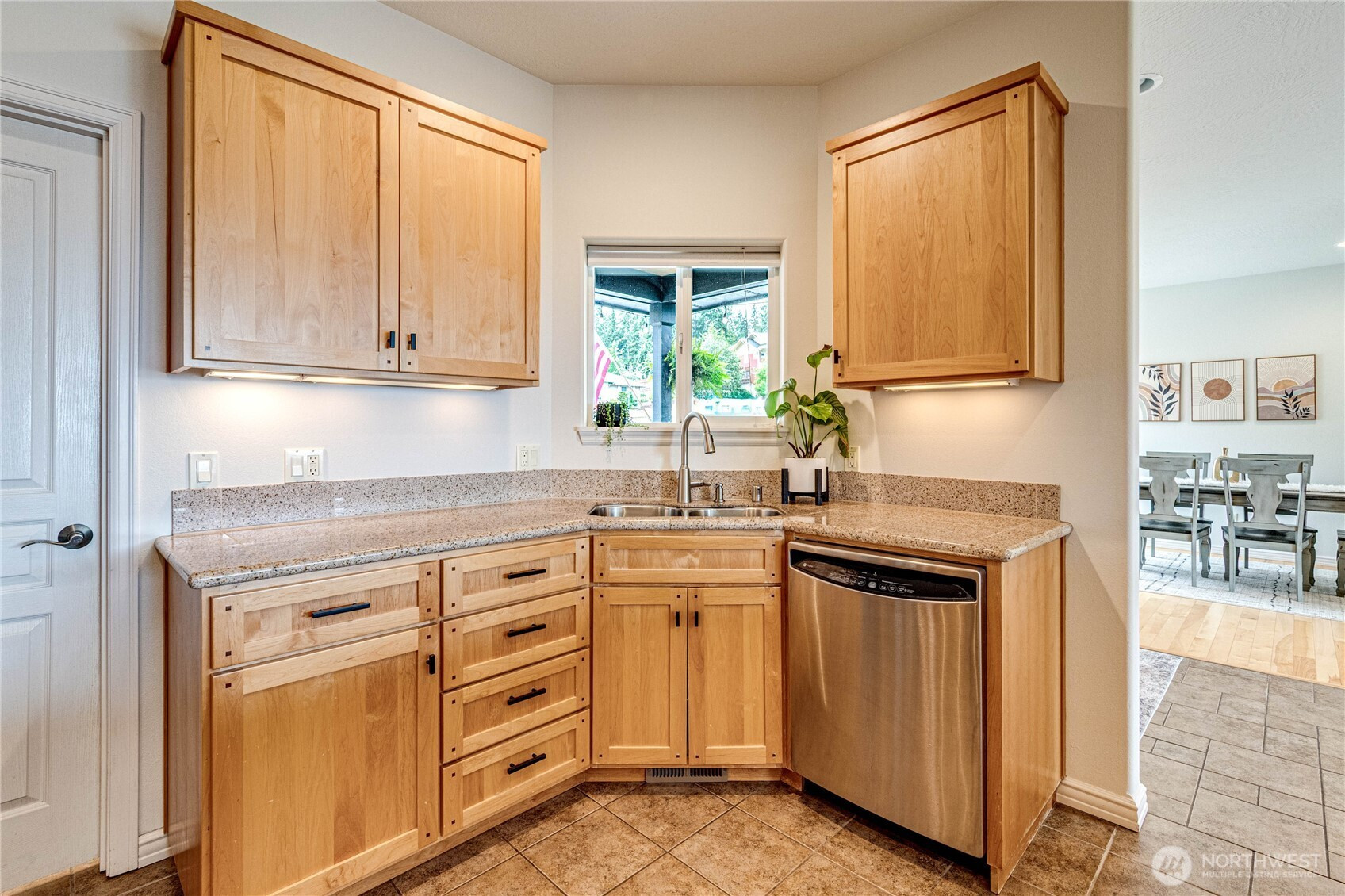 Stunning 3-BR, 2-Bath, 1738 SQ FT single level Rook Drive water view home! Built Green and Energy Star Certified, you will love the modern updates & efficiency of the open concept home perfectly situated on .43 acres w/fenced backyard. Large kitchen boasts ample storage, granite counter tops, & stainless steel appliances which leads to laundry room & large 2 car garage. Enjoy water views from living room featuring gorgeous rock wall w/cozy propane fireplace. Large deck & patio await all your outdoor entertainment needs. Unwind in your primary suite featuring 2 closets, separate shower & soak tub w/direct access to the deck to enjoy your morning coffee! Close to ONP & town, blending comfort, style & convenience in a truly beautiful setting.