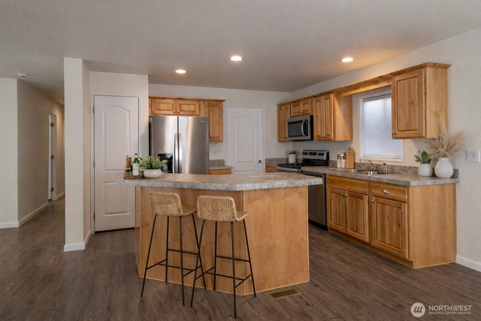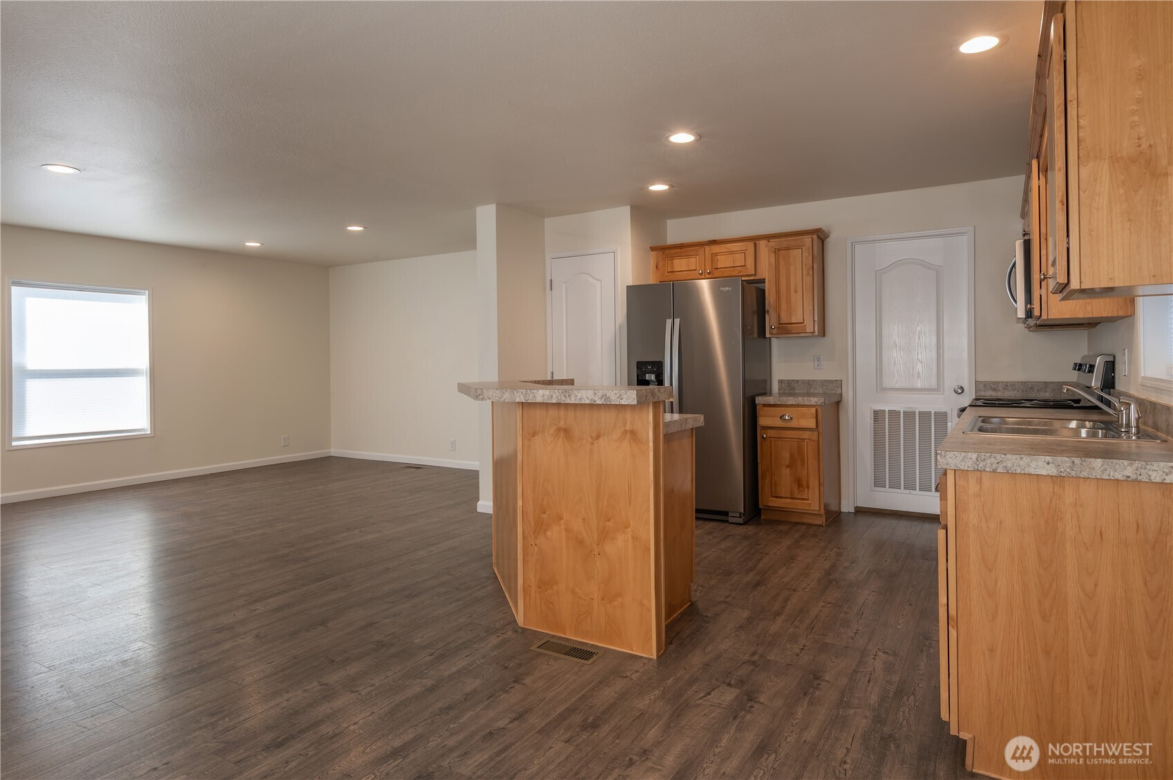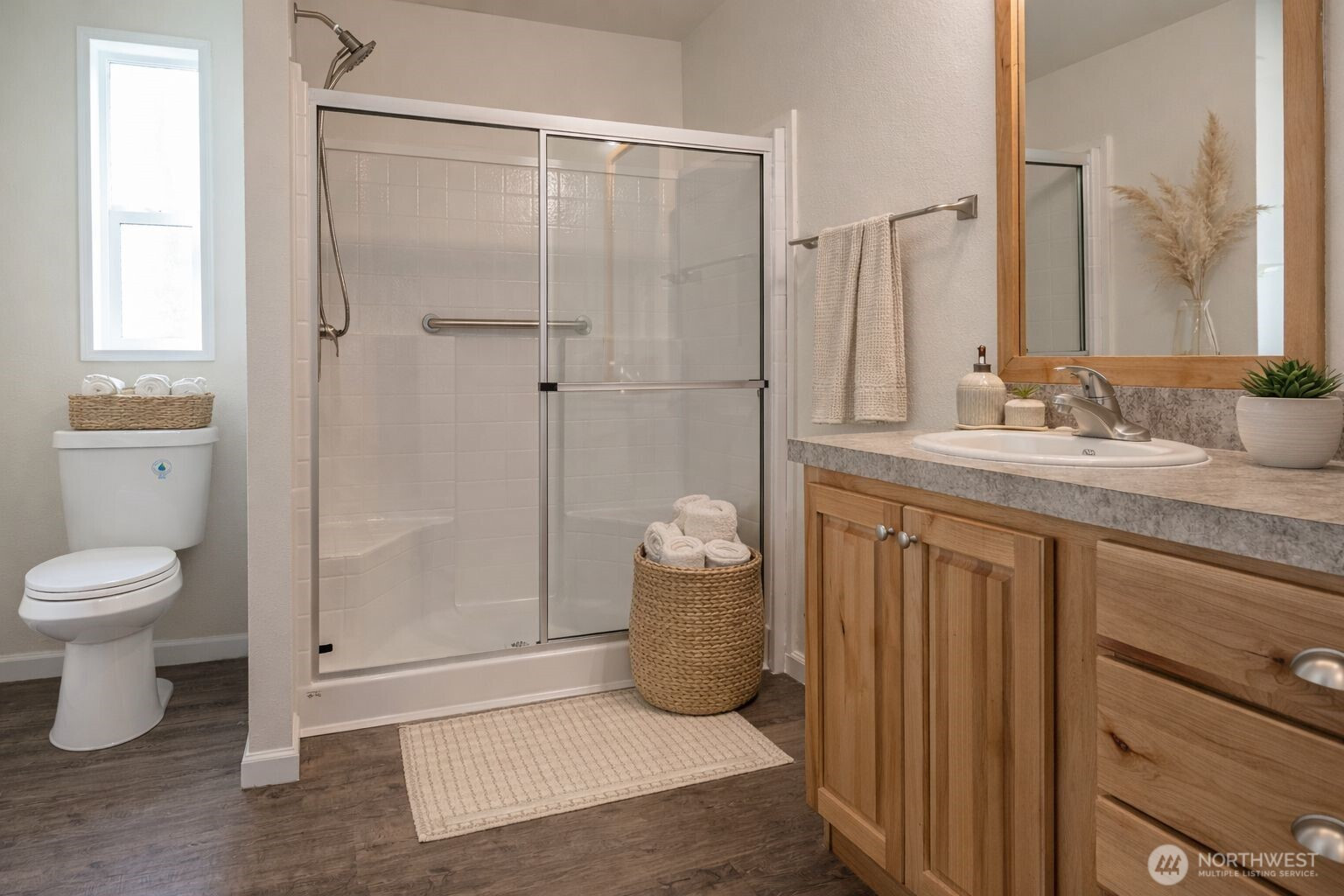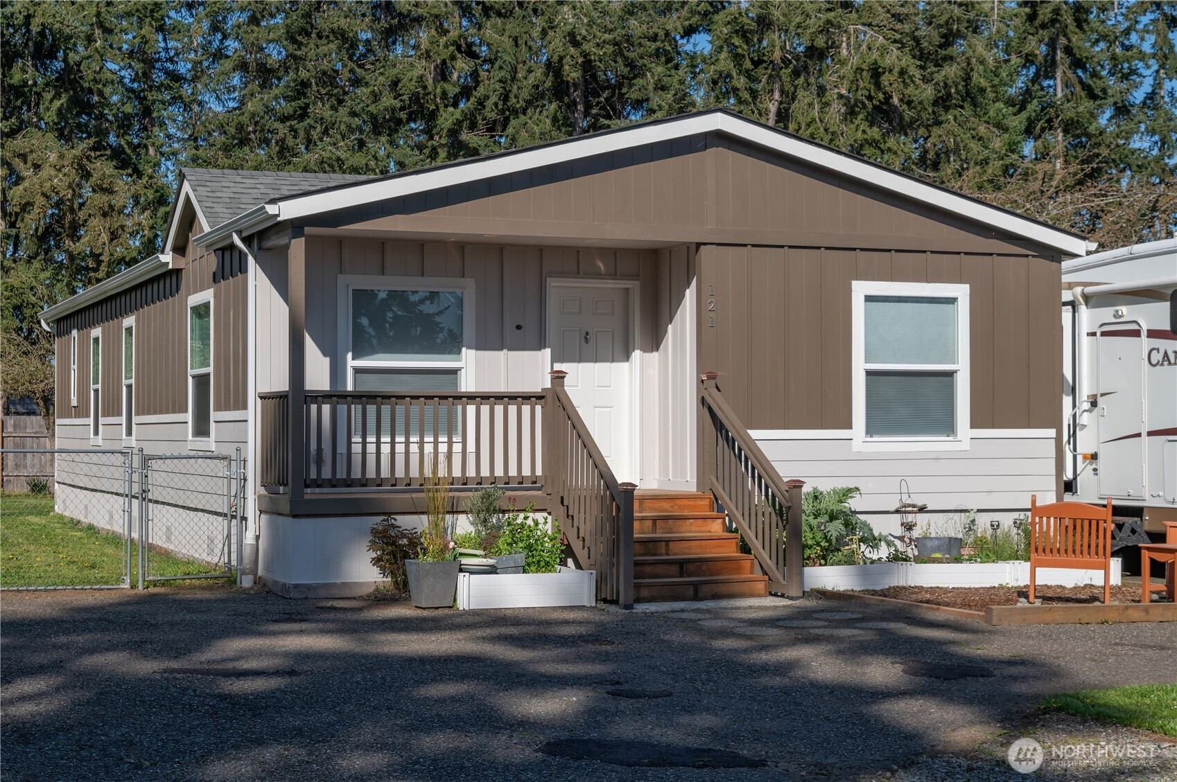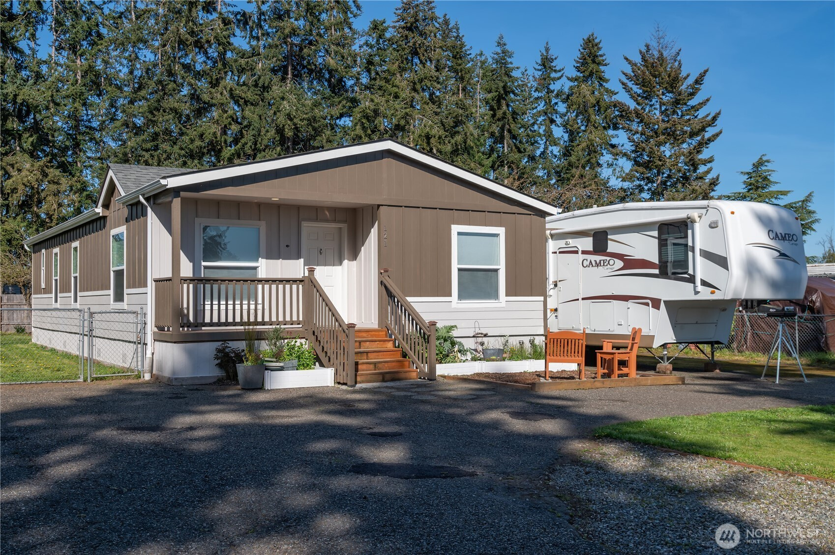Beautifully maintained 2022 manufactured home offering modern comfort and easy living in a quiet neighborhood just minutes from downtown Sequim. This Energy Star–rated home combines efficiency with a bright, welcoming feel in a highly convenient location. Situated on a 0.2-acre lot, the property features a thoughtfully landscaped backyard with mature plantings and established thornless blackberry bushes—perfect for gardening and outdoor enjoyment. Interior highlights include an open-concept living room and kitchen with abundant natural light, plus a dedicated dining area just off the kitchen for everyday living and entertaining. The home offers 2 bedrooms and 2 bathrooms, plus a bonus office ideal for remote work or flexible use. The spacious primary suite features an ensuite bath and walk-in closet. A separate utility/laundry room adds everyday functionality. Exterior amenities include a fully fenced yard, paved blacktop driveway, ample off-street parking, and RV parking with hookups. A large barn-style storage shed provides excellent storage or workspace, while a private fire pit area creates an inviting outdoor retreat. High-speed internet available, with convenient access to shopping, dining, medical services, and recreational amenities nearby.