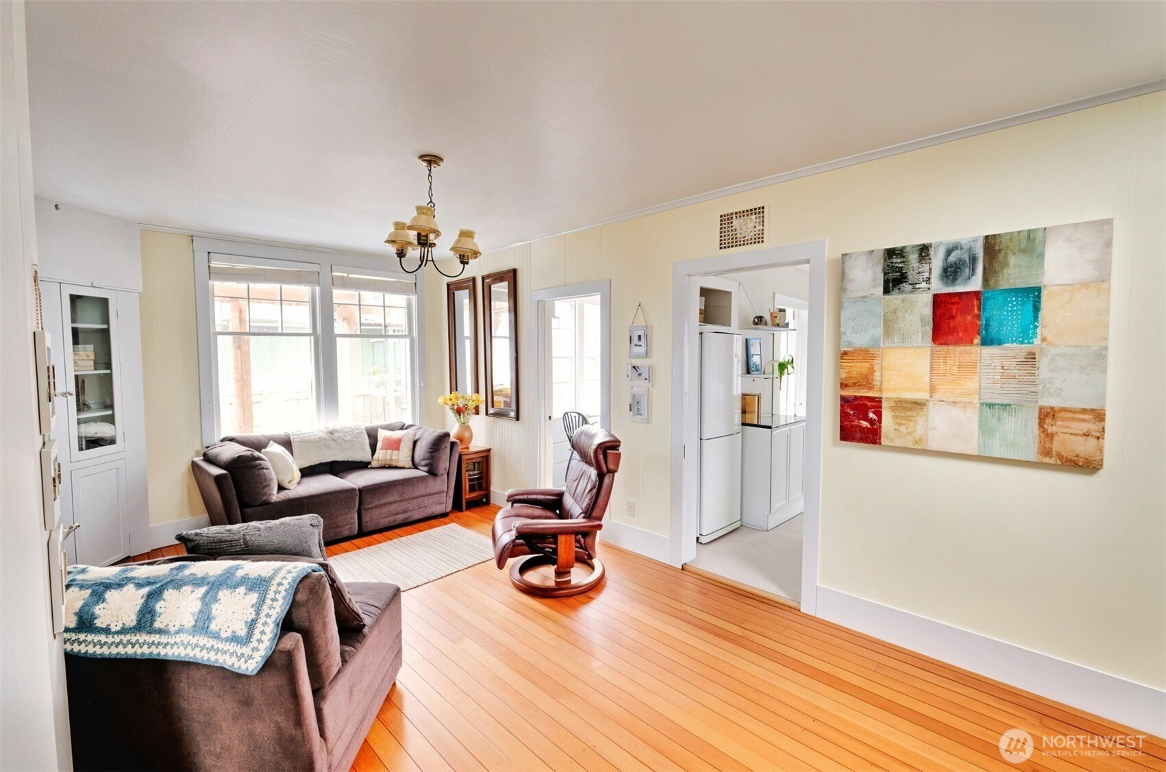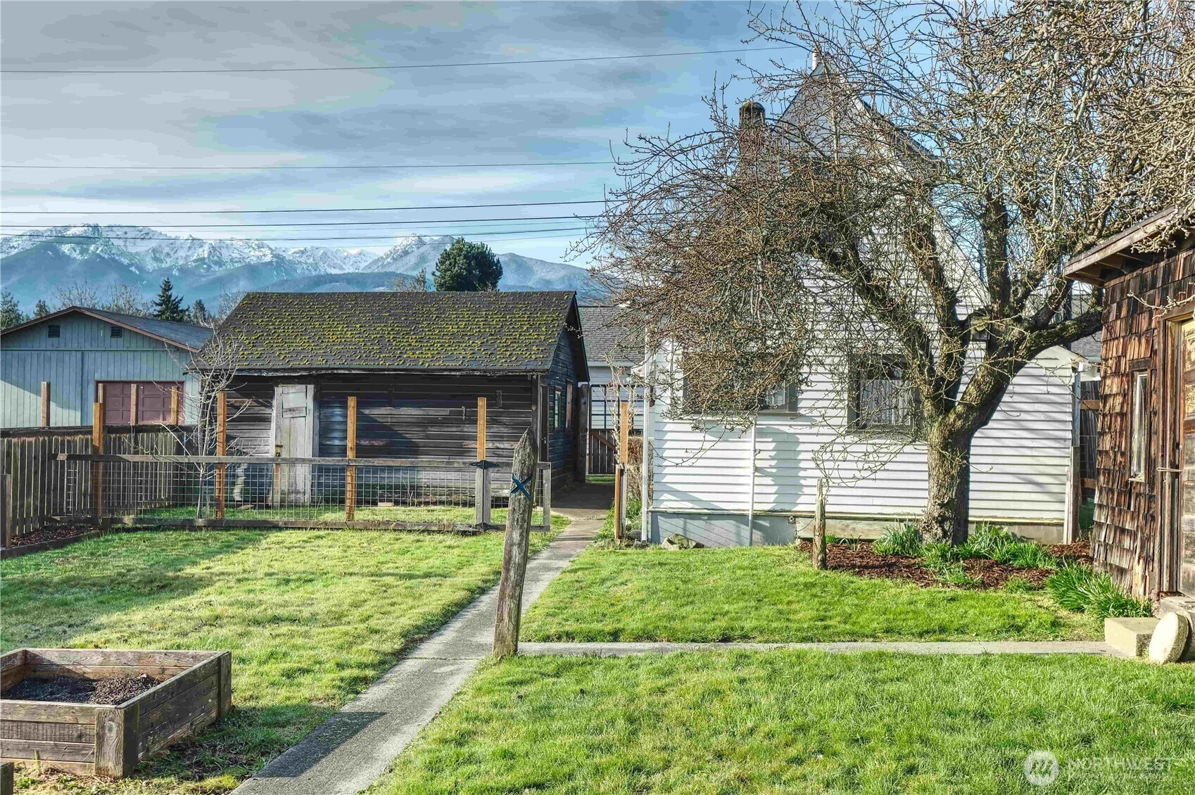 (503) 893-8874Historic 1889 farmhouse, one of Port Angeles' original homes built by the Puget Sound Cooperative Colony. 3-bedroom, 1-bath main house with original hardwood floors and built-ins. Recent updates include renovated kitchen and bathroom. Property includes 1929 1-bedroom, 1-bath accessory dwelling unit (ADU) with separate entrance, suitable for rental or guest use. Located on high bluff lot with water and mountain views. South-facing yard features raised garden beds, deck with two covered pergolas, and gardening area. Proximity to Olympic Discovery Trail, downtown shops, restaurants, and medical center.